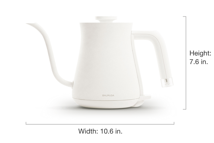 Easy to use and light to handle. BALMUDA?The Kettle is the perfect size for common kitchen needs. It holds just enough water for three standard cups of coffee ?? or two large mugs. Available in classic white and black colors for a minimal and sleek addition to your space.