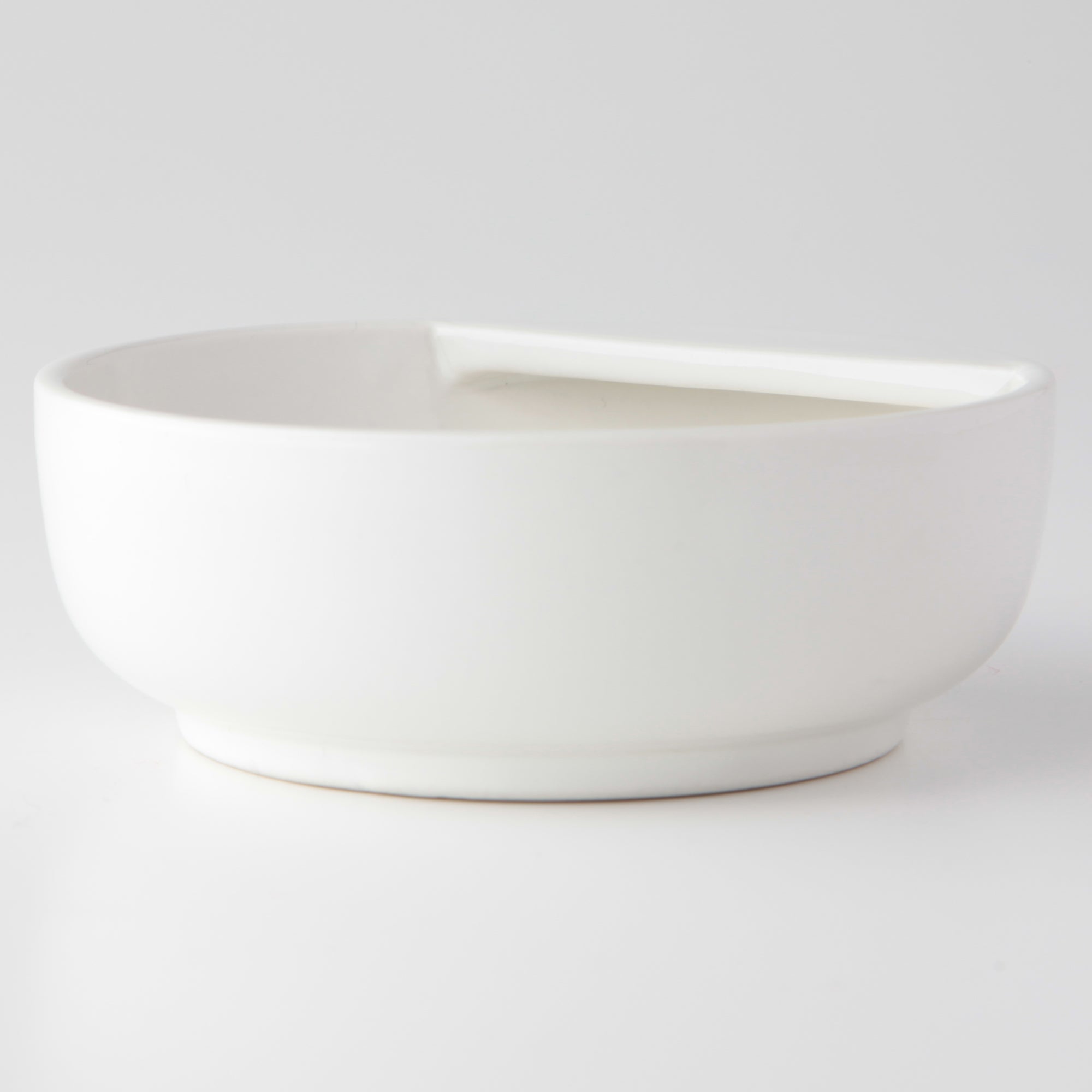 A simple porcelain dish with a lip to hold the ladle up right when not needed. The dishware features the original stone beige color of the porcelain.