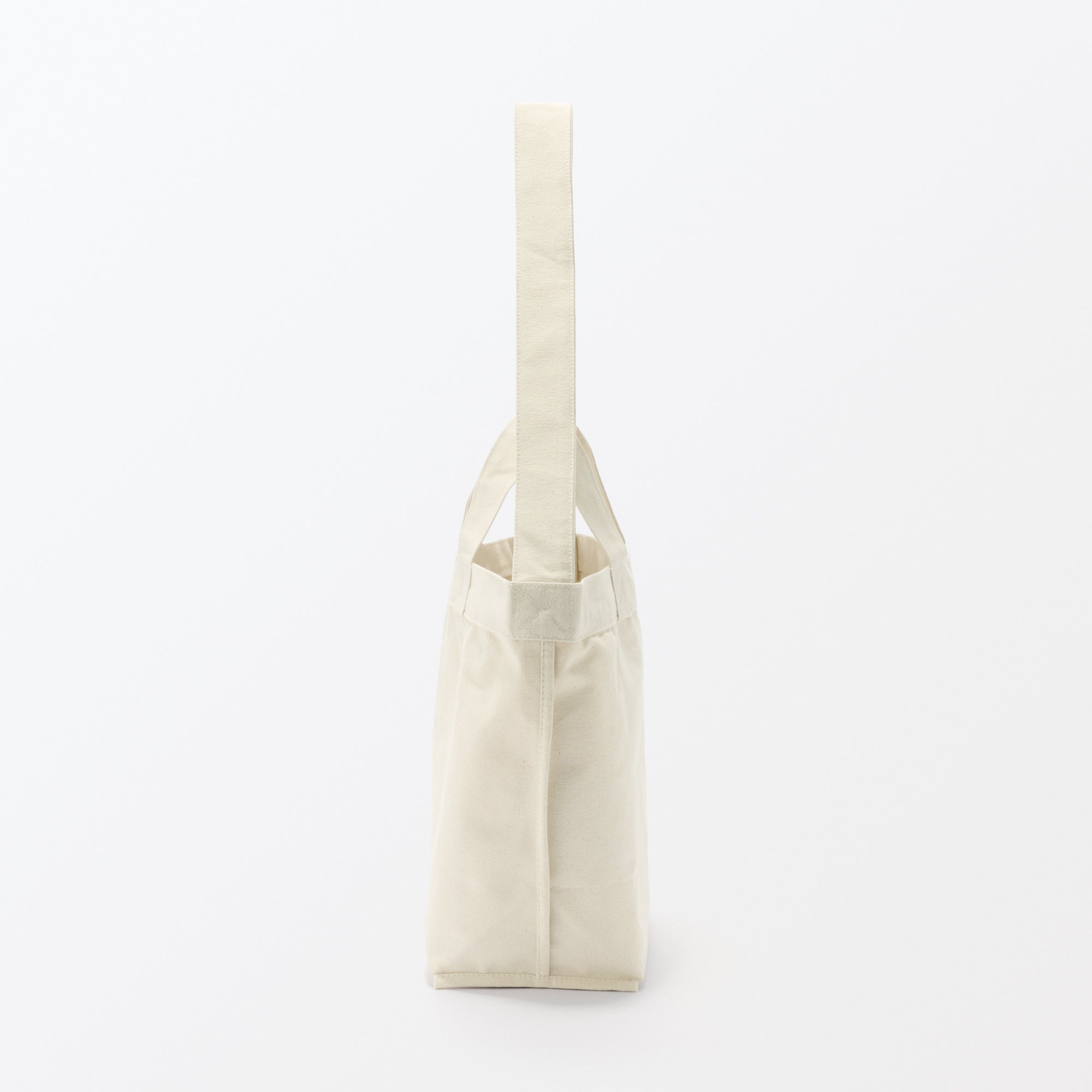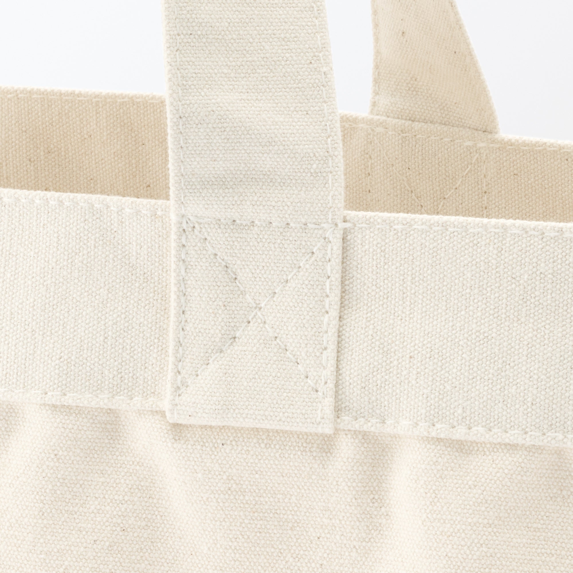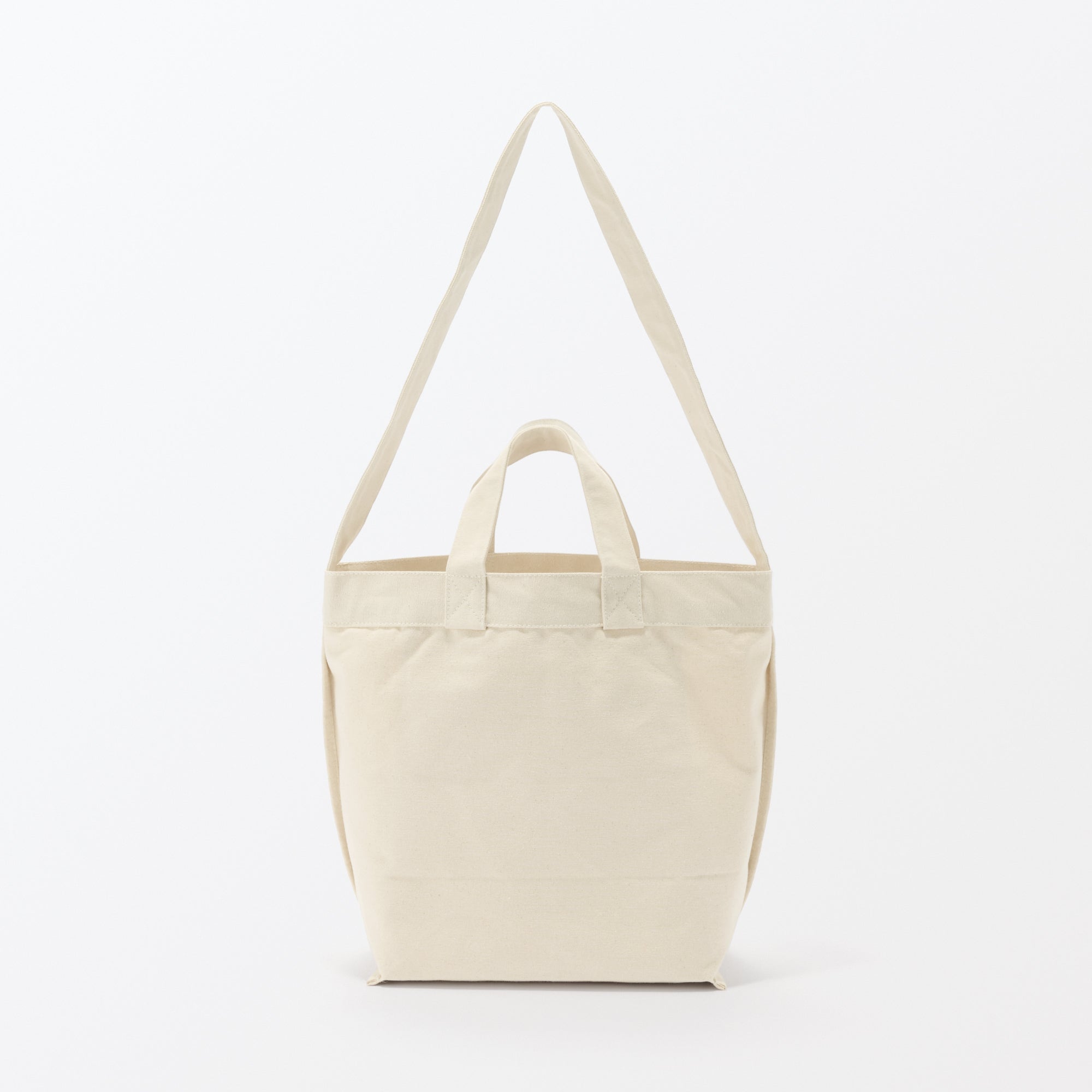 An everyday tote bag made of organic cotton canvas with just the right thickness. Featuring multiple compartments to sort your belongings. Designed with two straps; a handle for holding. and a longer strap to wear on your shoulder.
