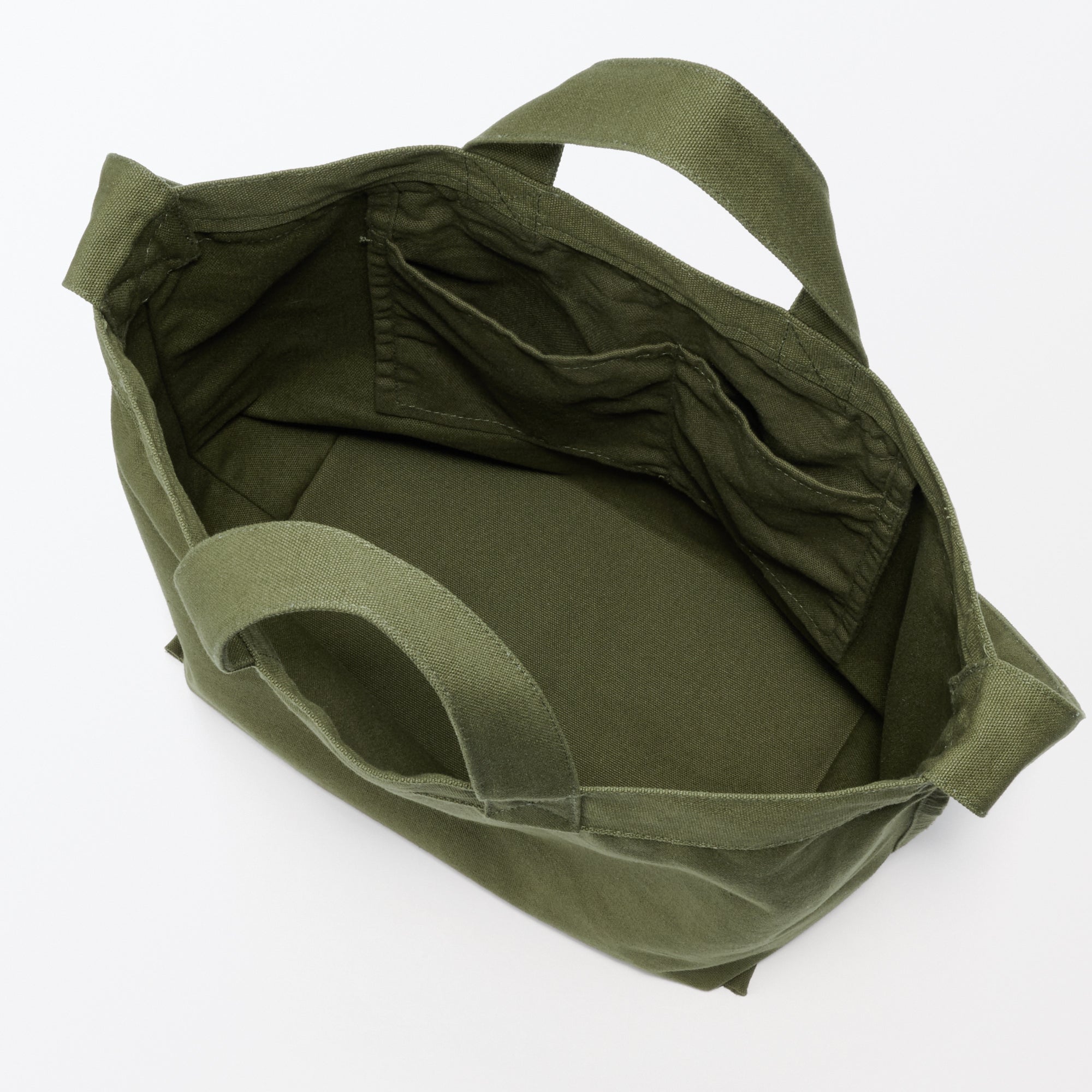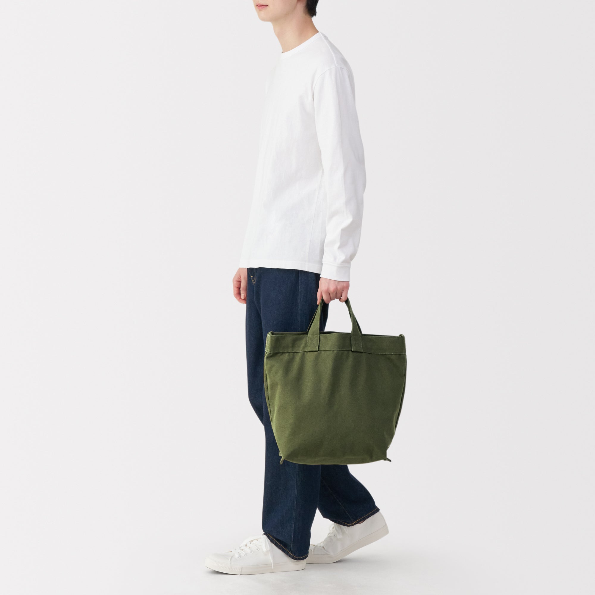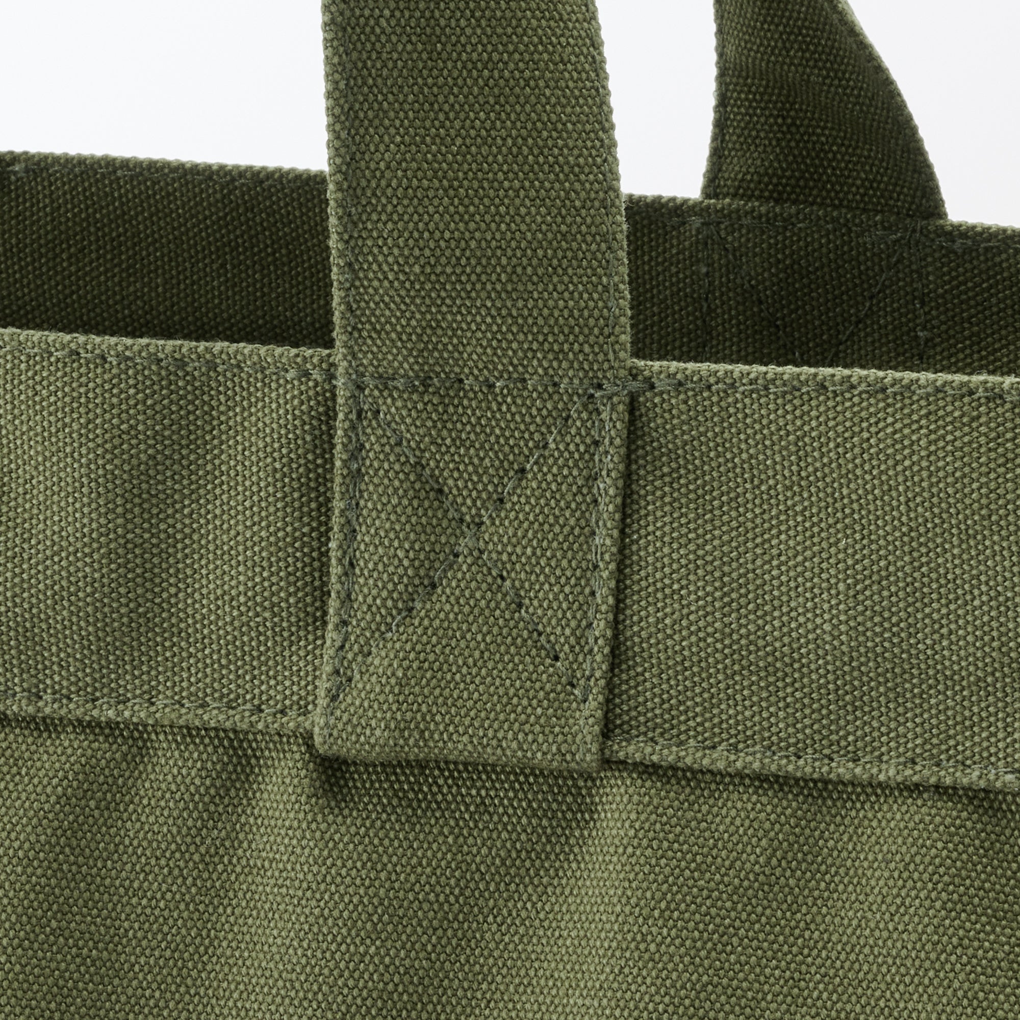 An everyday tote bag made of organic cotton canvas with just the right thickness. Featuring multiple compartments to sort your belongings. Designed with two straps; a handle for holding. and a longer strap to wear on your shoulder.