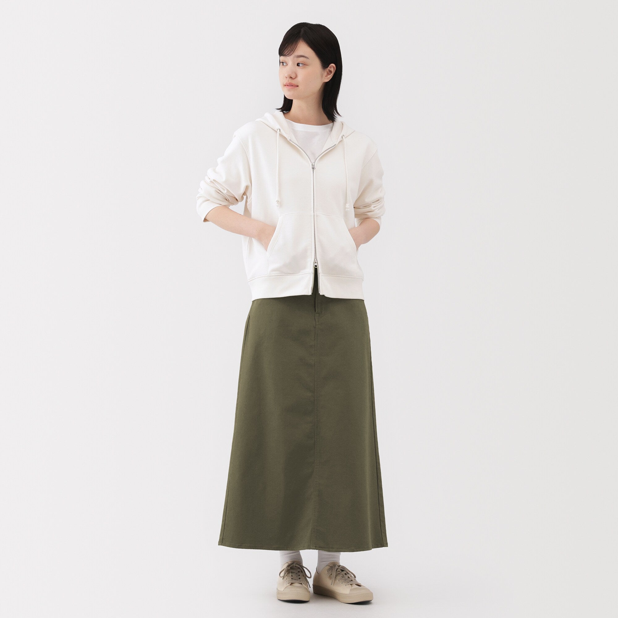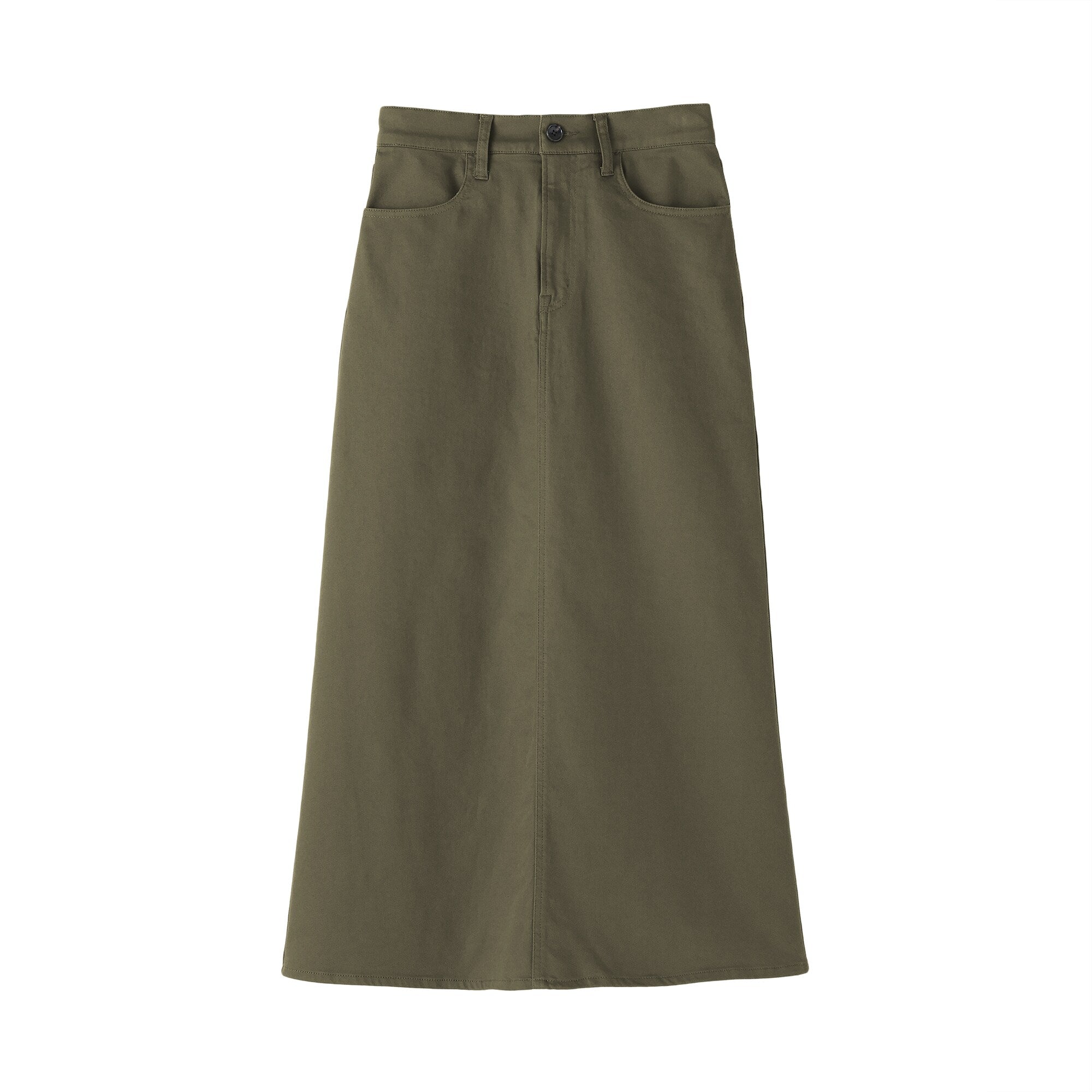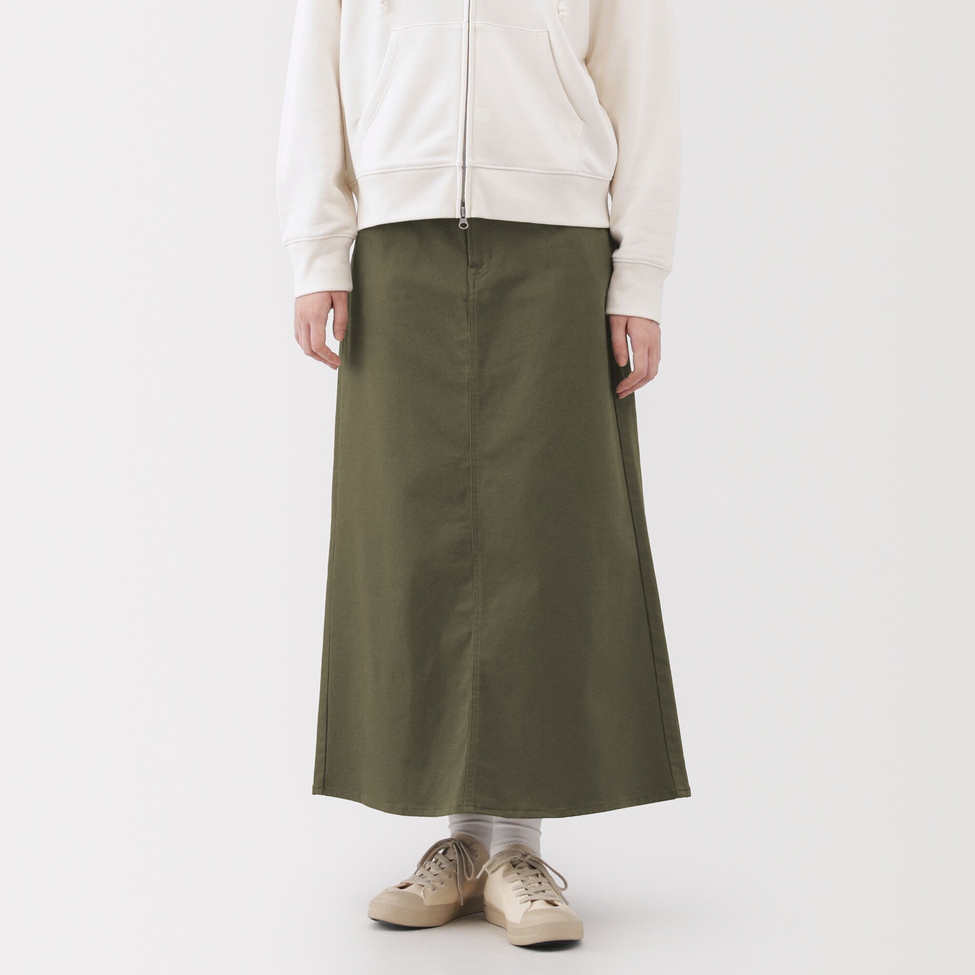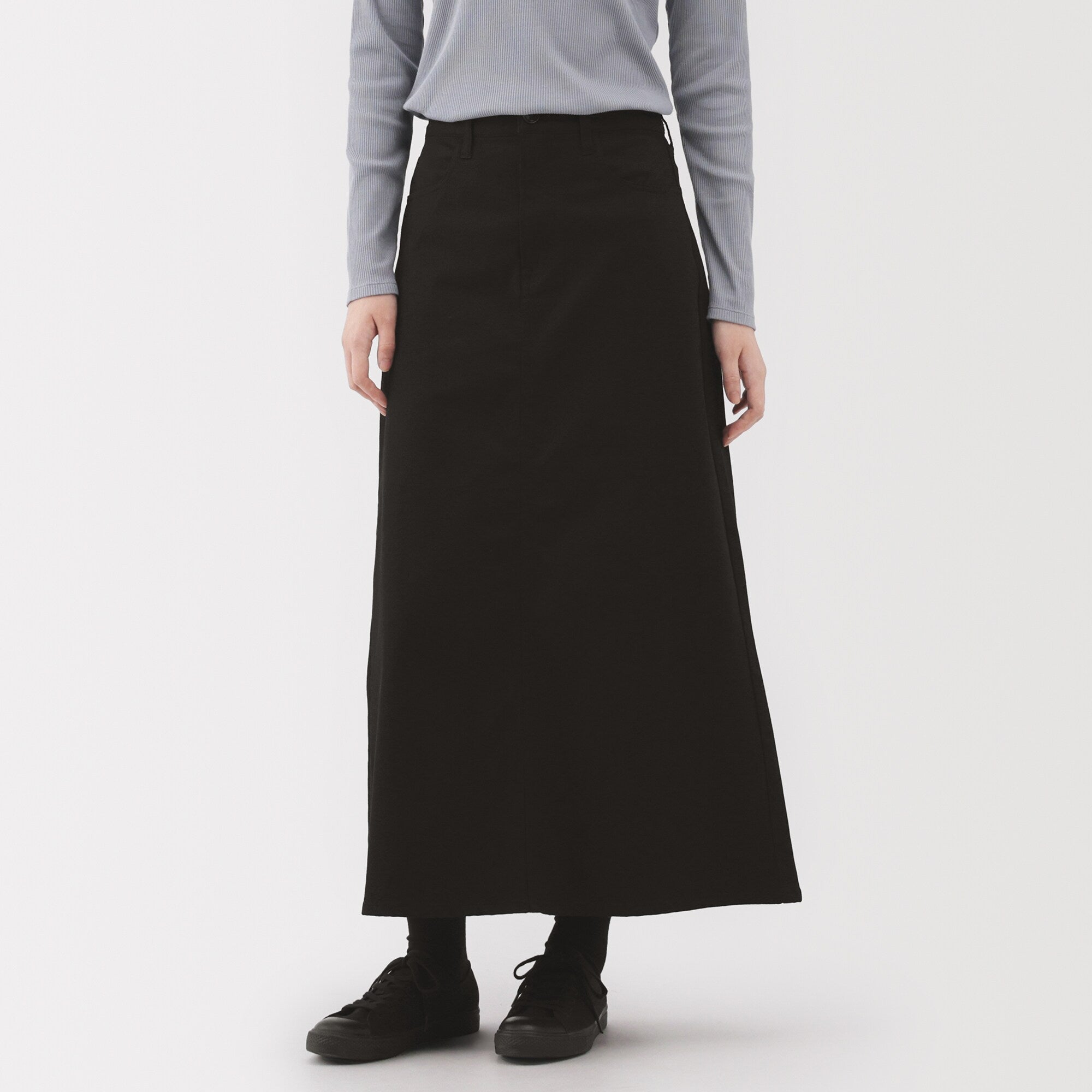 A long A-line skirt that is soft and stretchy. making it comfortable to move around in. The back of the waistband is elastic for easy wearing. Made with organic cotton.