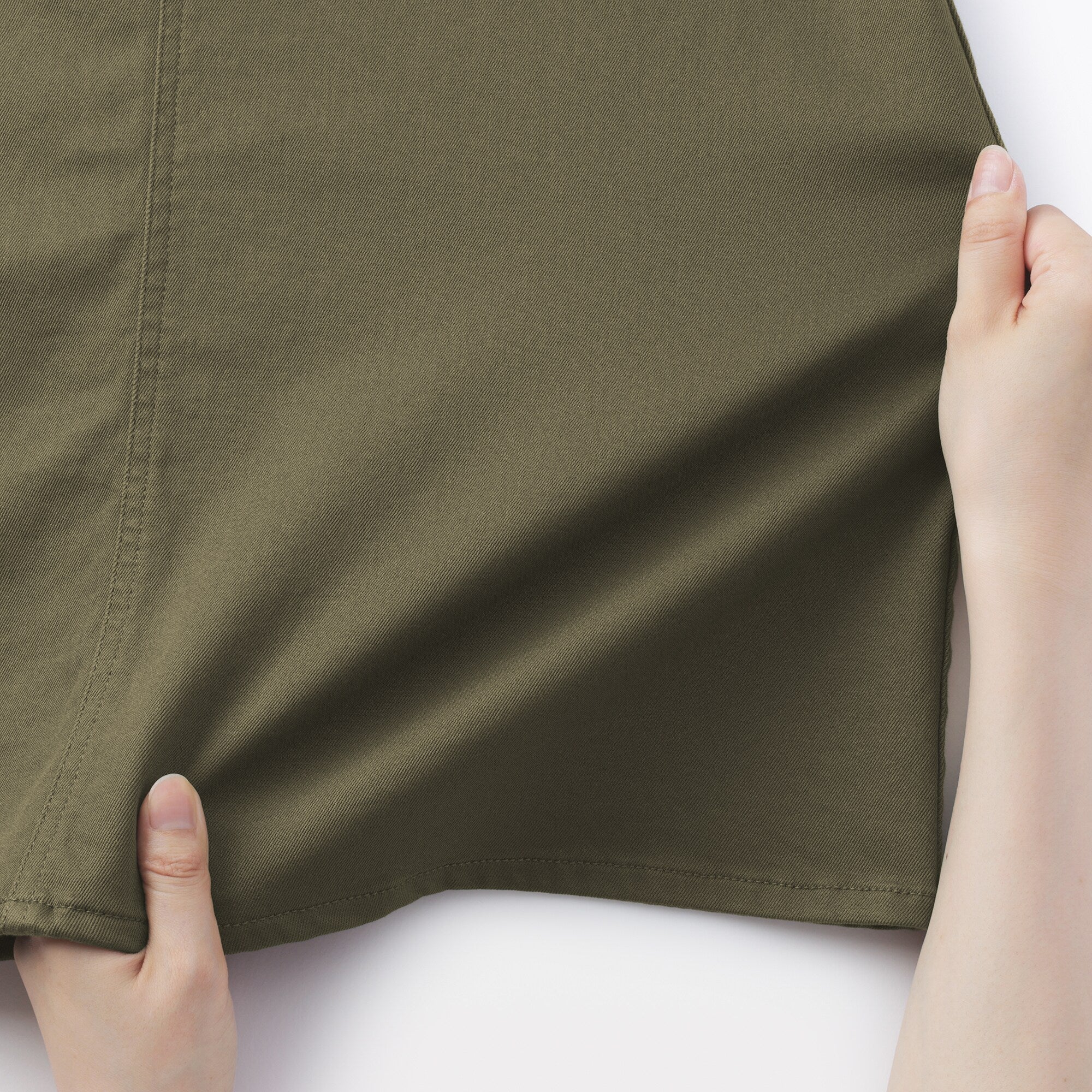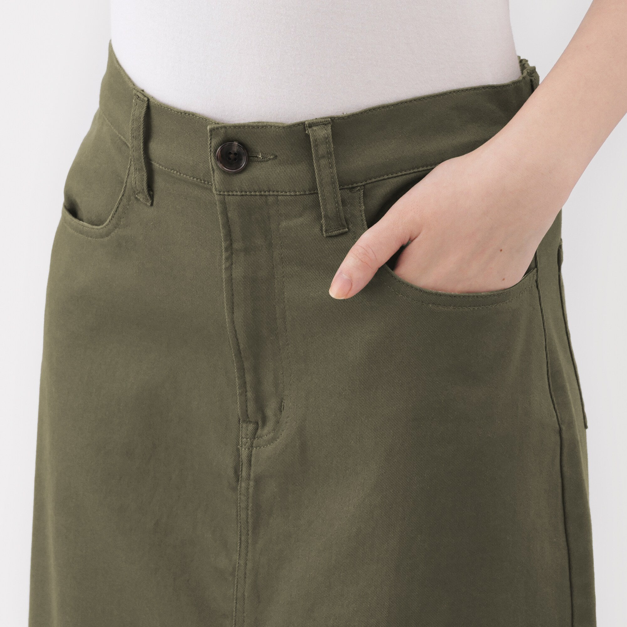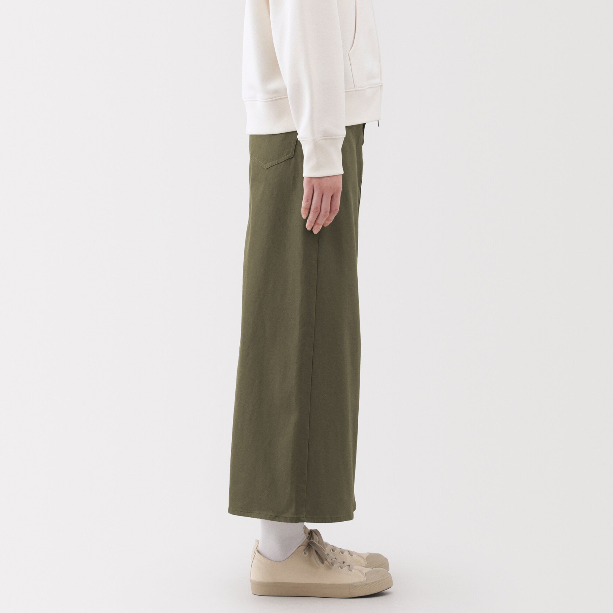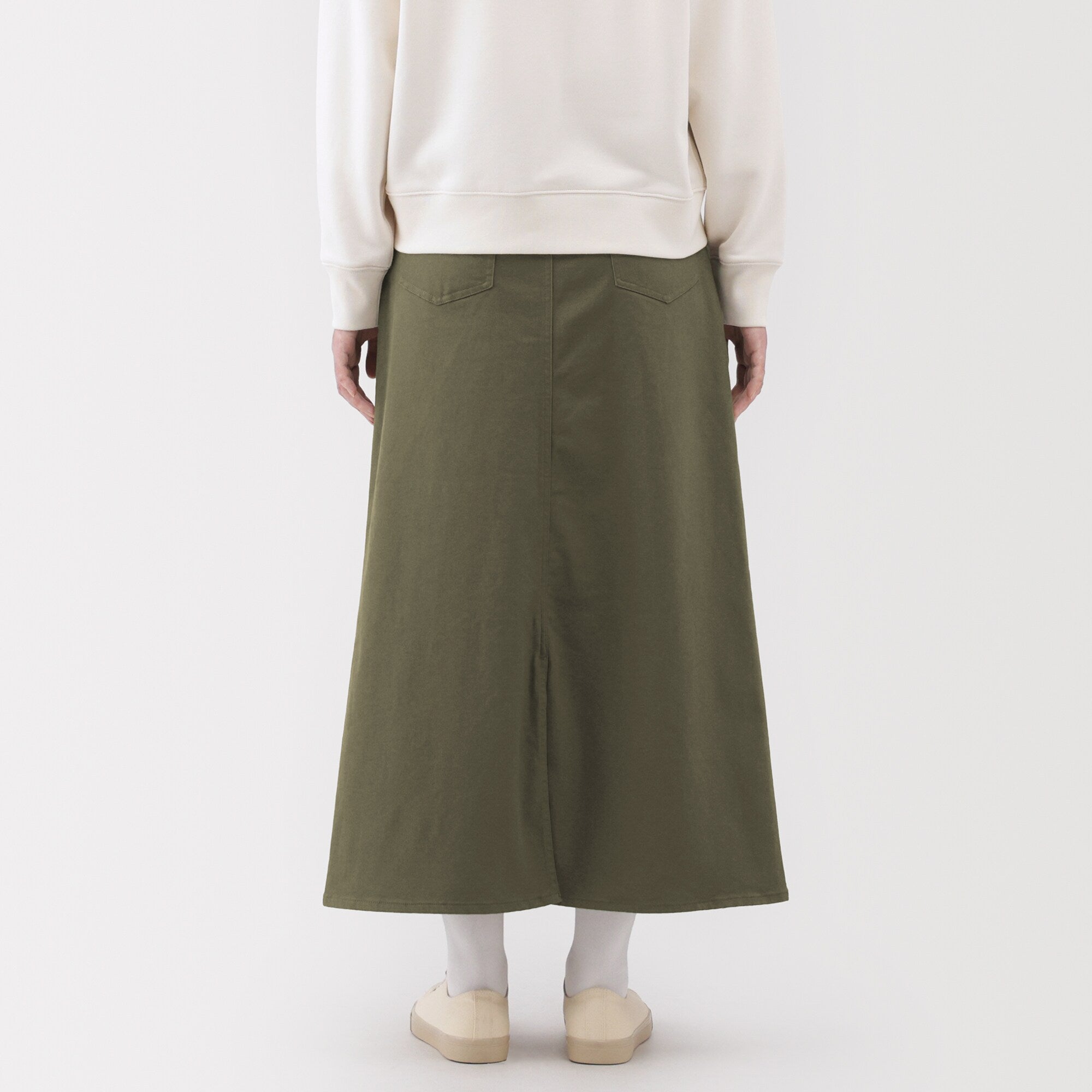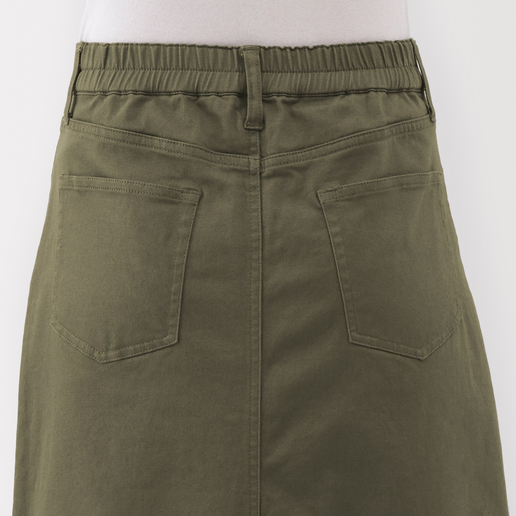 A long A-line skirt that is soft and stretchy. making it comfortable to move around in. The back of the waistband is elastic for easy wearing. Made with organic cotton.