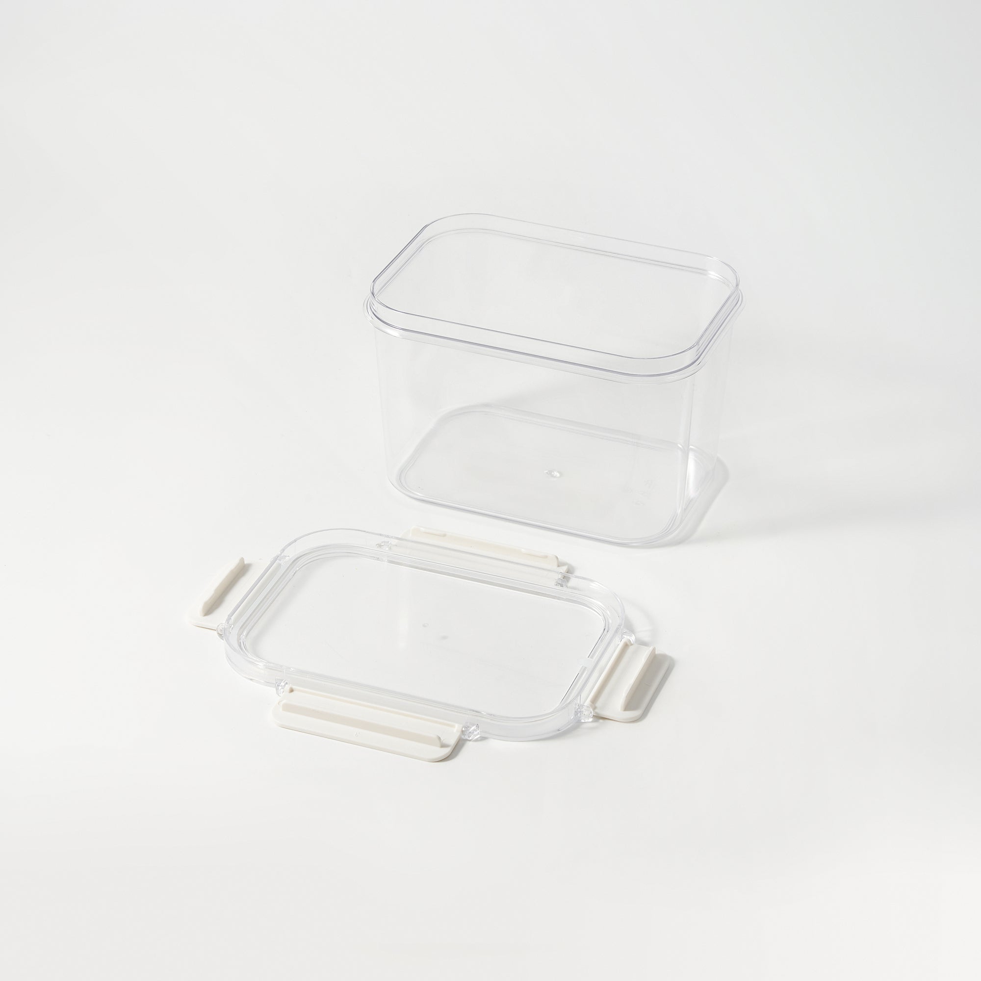 The body is transparent so you can easily view its contents when stored in a fridge or pantry. Stackable for easy organization. The lid has a seal around it to keep the container air tight. Suitable for use in the refrigerator.