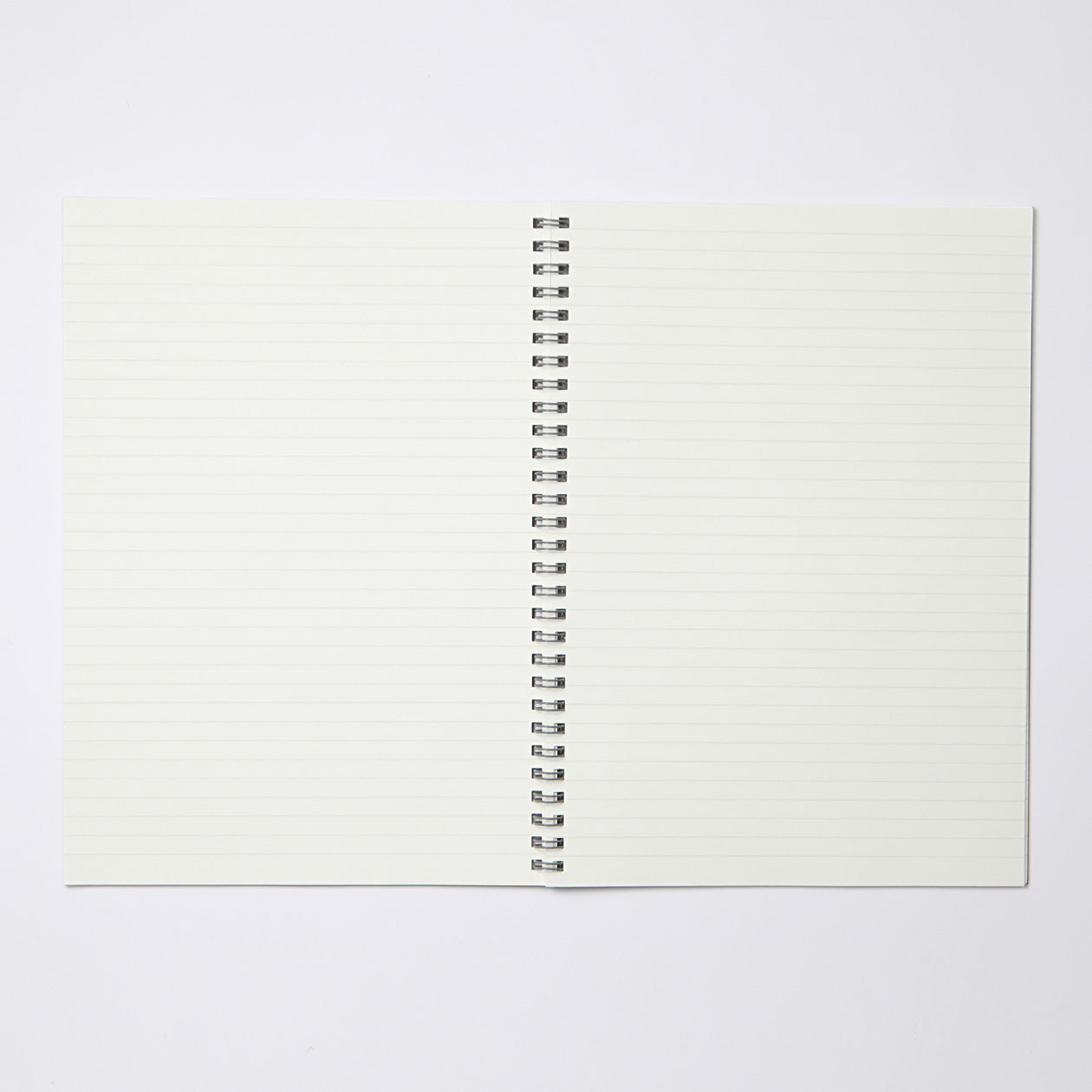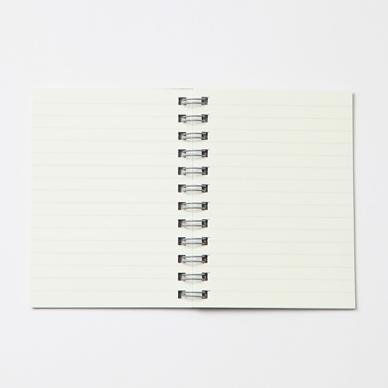 A simple. line-ruled double-ring notebook. The rings allow you to flip the cover over completely and write from any orientation. This item is part of the MUJI Afforestation effort. allowing communities to directly choose and benefit from the trees they cultivate.