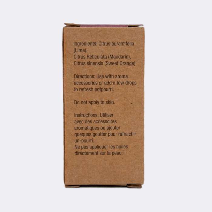 This essential oil is a blend of Lime. Mandarin and Sweet Orange which have properties that can help to reduce stress and anxiety while uplifting mood and aiding concentration.