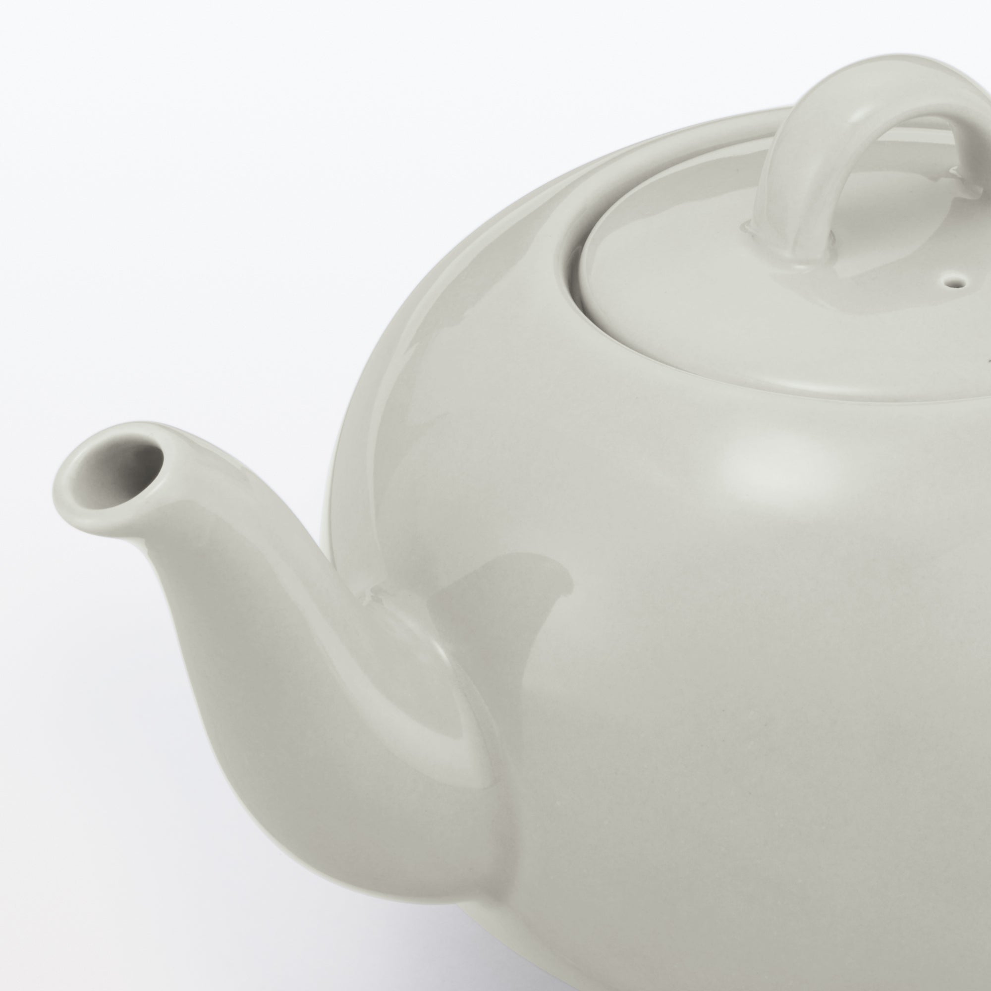 A porcelain teapot with a unique rounded shape that can be used everyday or formal occasions. The handle is designed so the thumb and index finger fit in a well-balanced manner. making it more stable and easy to hold.