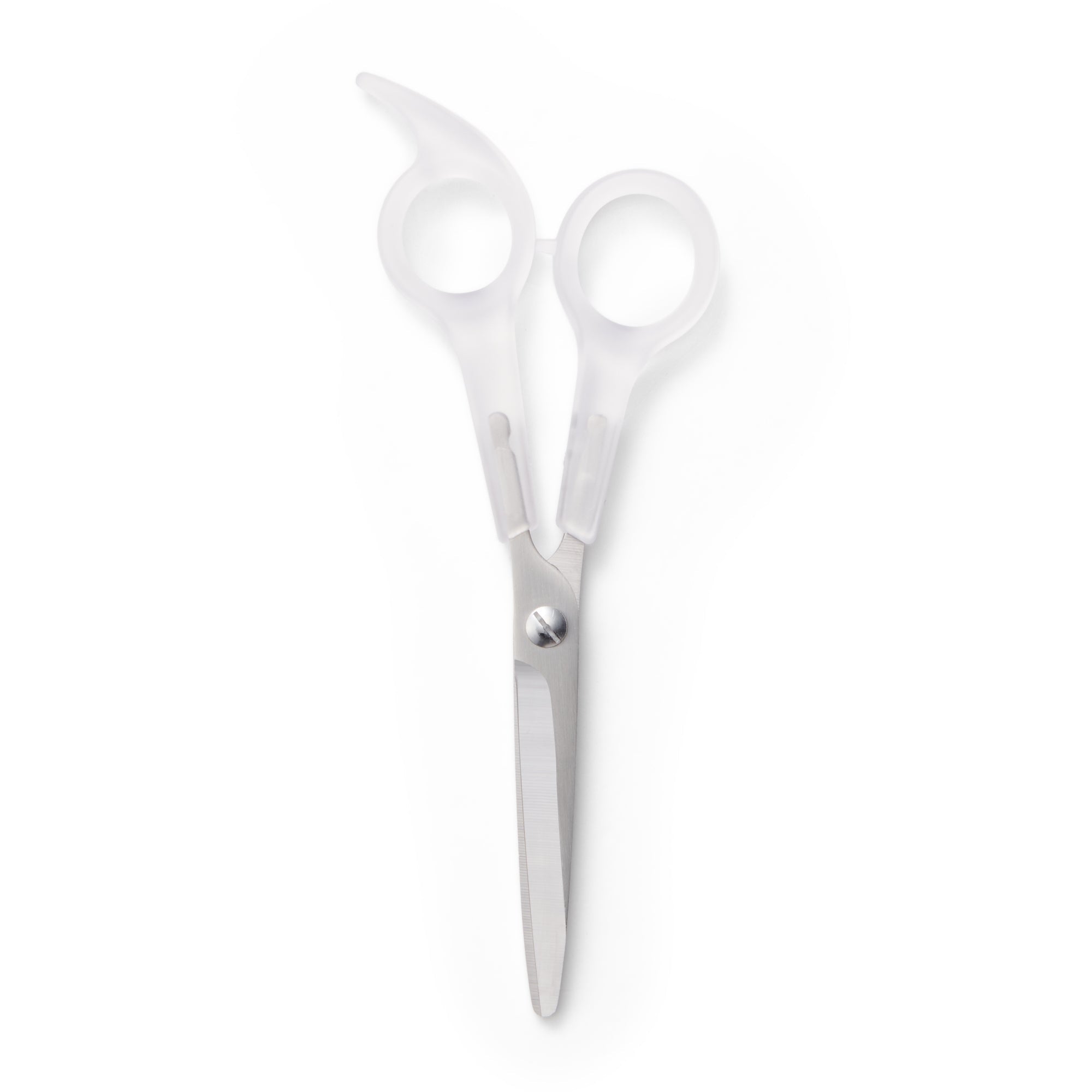These scissors are convenient for cutting your own hair. Place your ring finger into the finger loop for stable use.