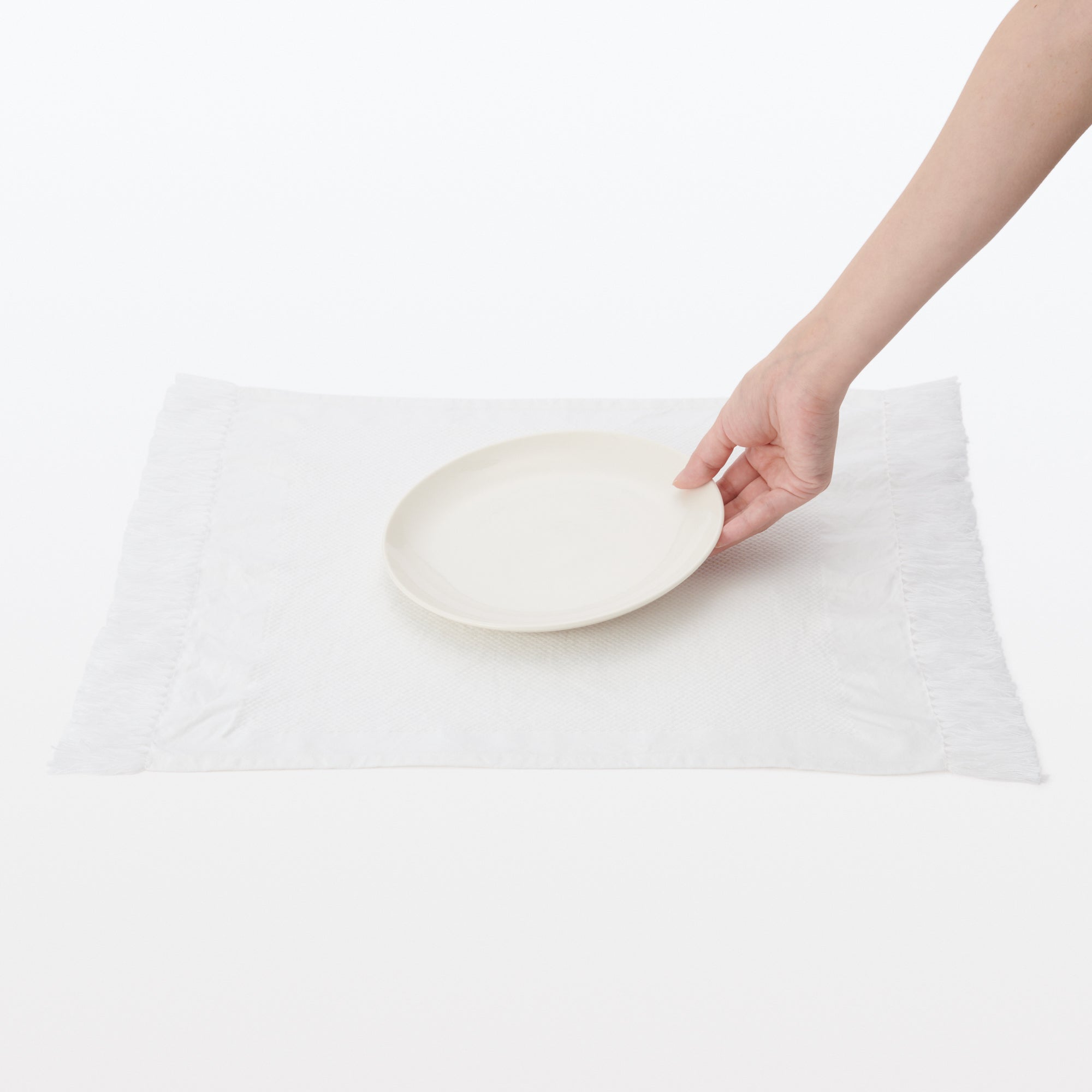 Add a touch of flair to your table setting with our Indian Cotton Place Mat. featuring fringes on the ends. Available in an off-white color. it will match perfectly with any interior and table decorations.