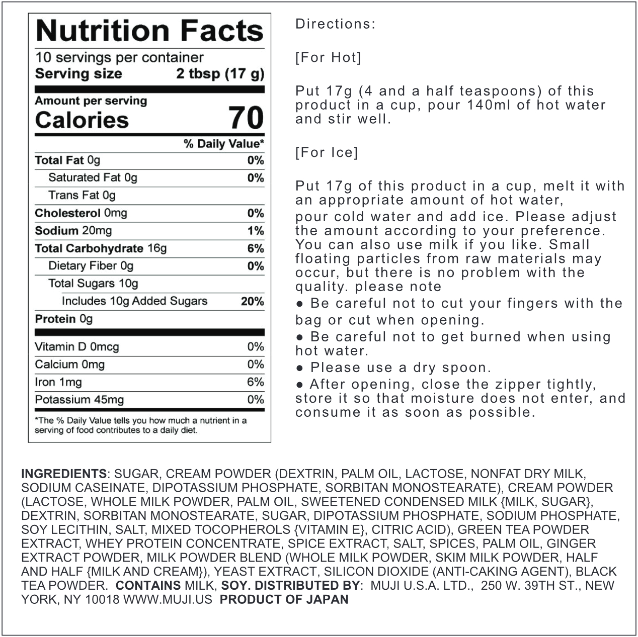 Black tea combined with milk and five spices. including cinnamon. cloves. and cardamom. gives it an authentic taste. Simply add water to this instant mix for a quick and delicious beverage that can be enjoyed hot or iced.