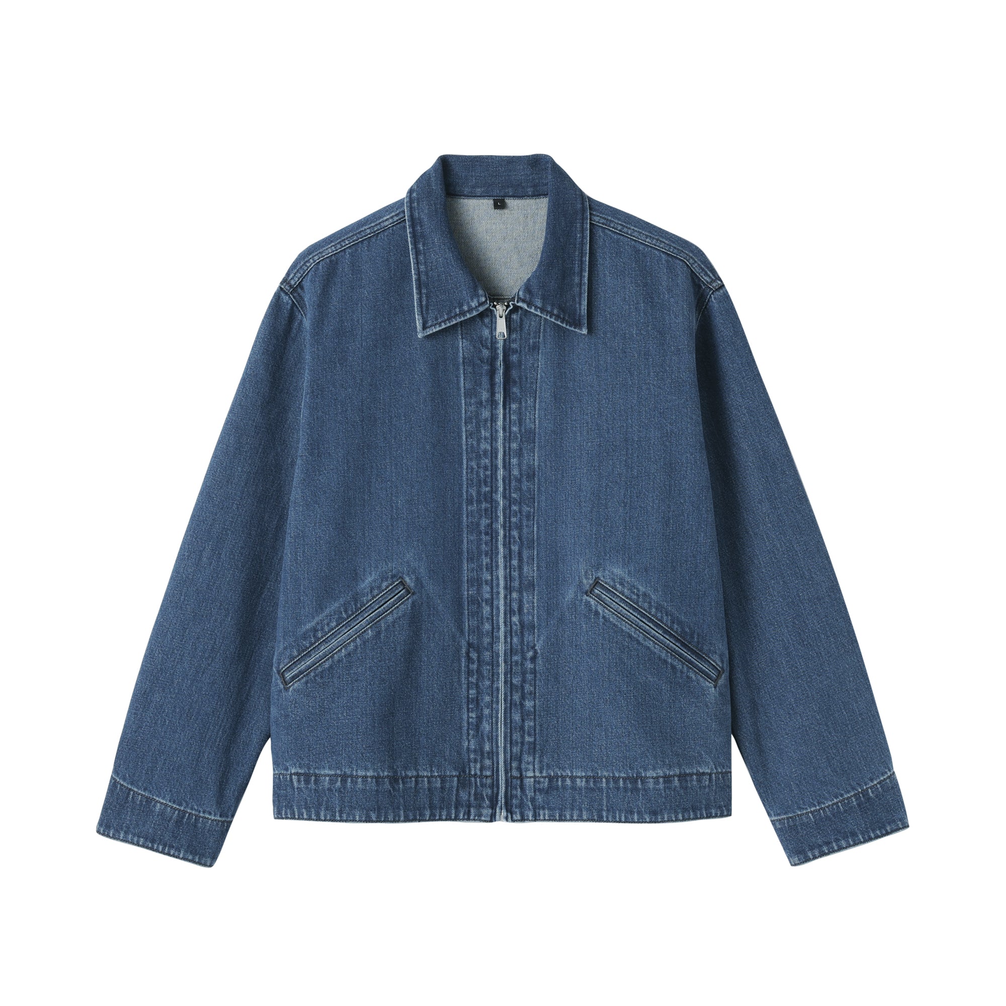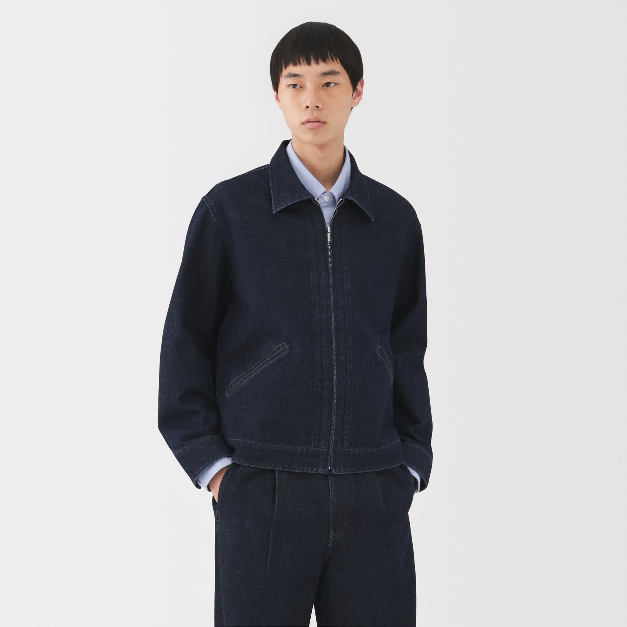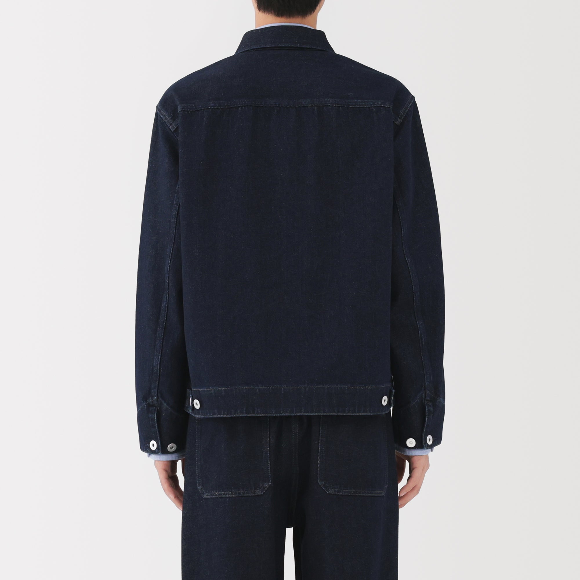 A men’s denim jacket made with a blend of cotton and kapok fiber. an environmentally friendly plant grown without pesticides. By using a fabric that mixes kapok with cotton. it is softer and lighter than conventional 100% cotton.