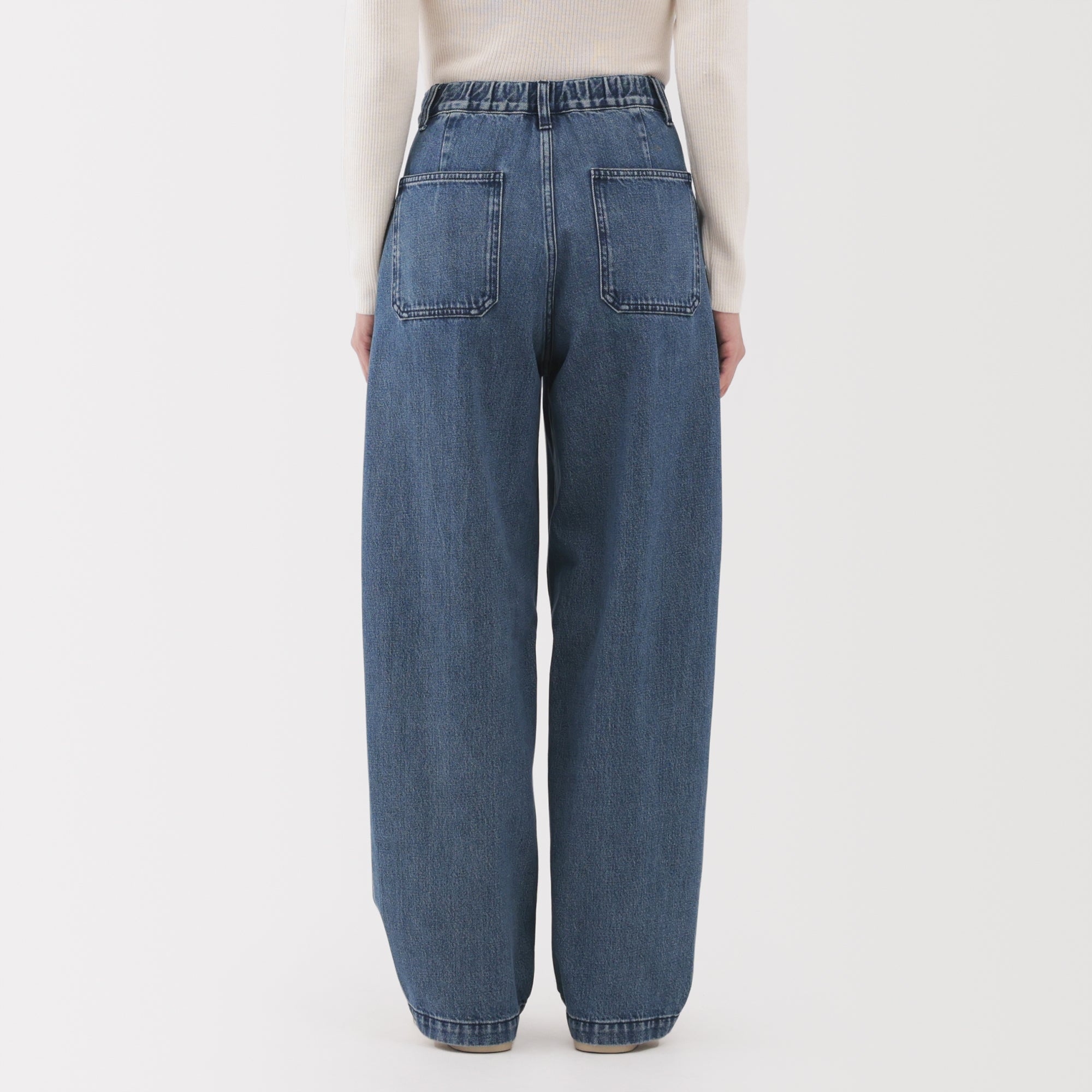 These women’s denim pants have a wide tapered cut and are crafted from a blend of kapok and cotton denim for comfort.