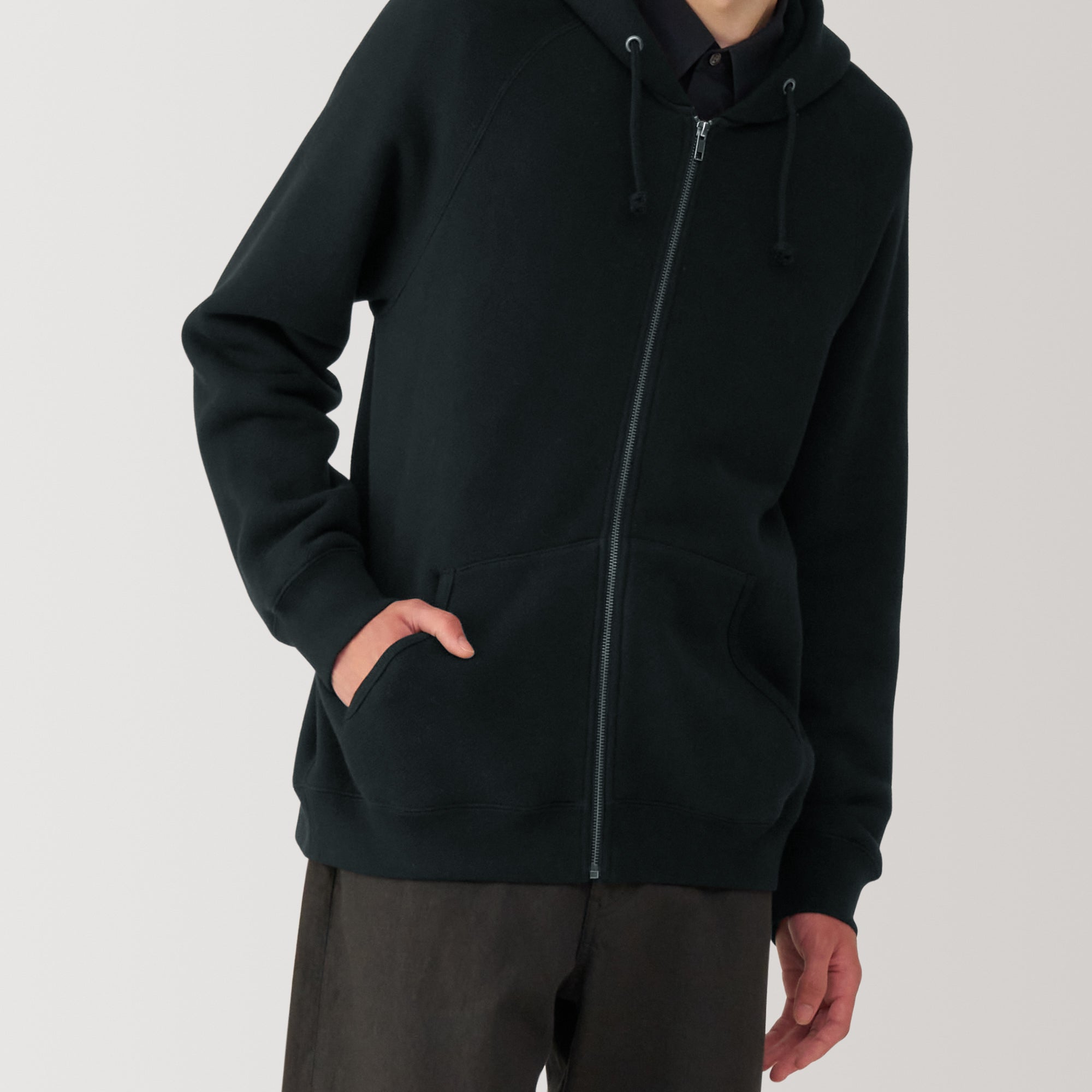 A zip-up hoodie made of a cotton material that has an extremely soft and airy texture. Perfectly comfortable to wear when going out or lounging at home.