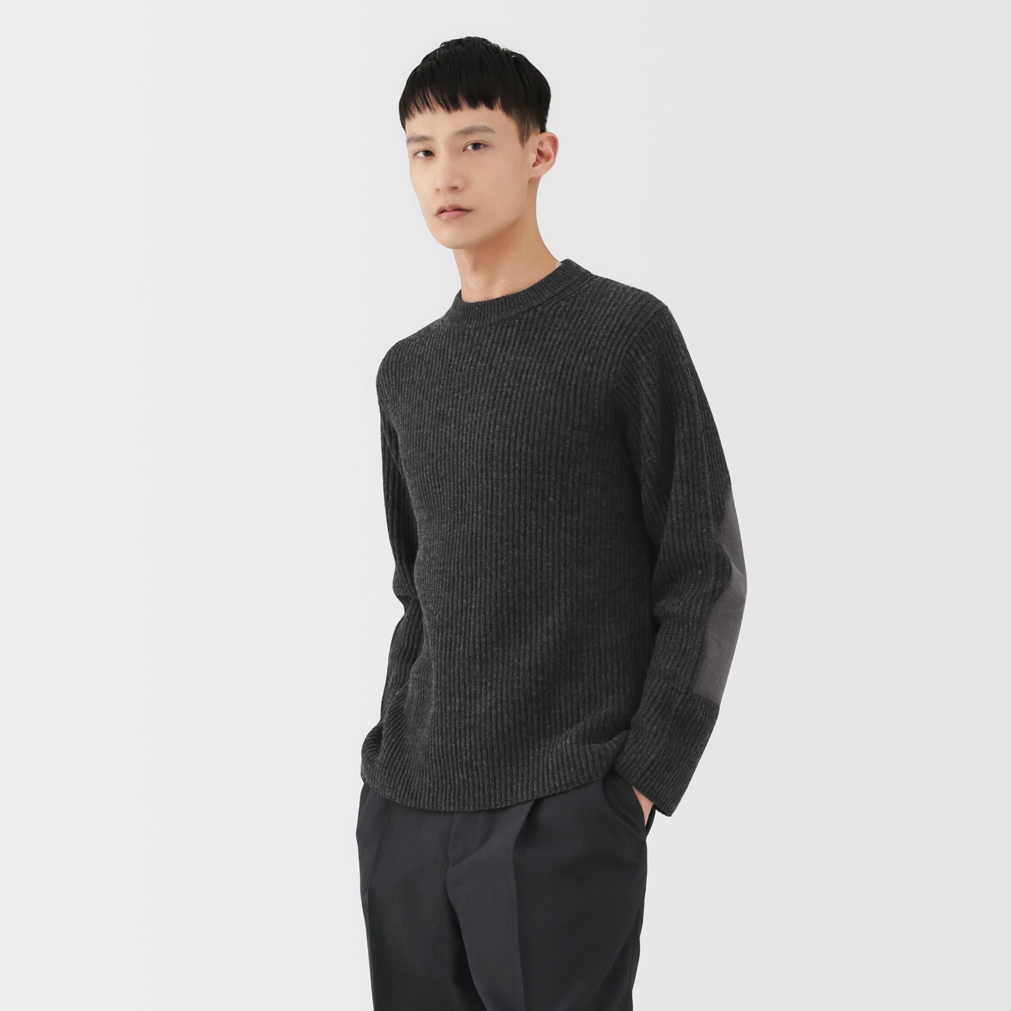 A men’s ribbed crew neck sweater made from fine merino wool for a luxuriously smooth texture. It has a clean look with reduced fluff. This sweater features reinforced patches on the elbows to help increase its durability and wear life. Merino wool is soft. non-itchy. and breathable. allowing vapor to escape and keeping you warm and dry.