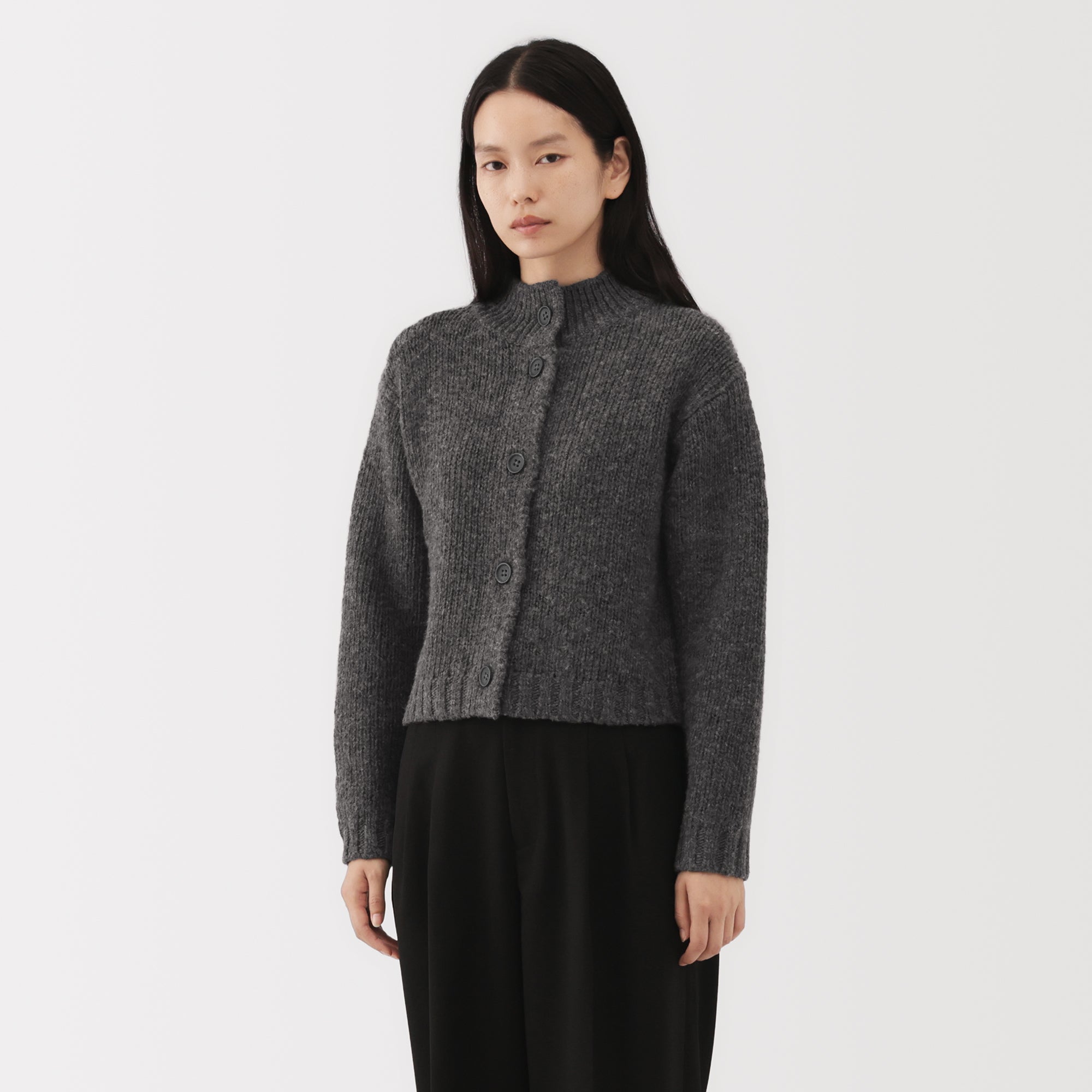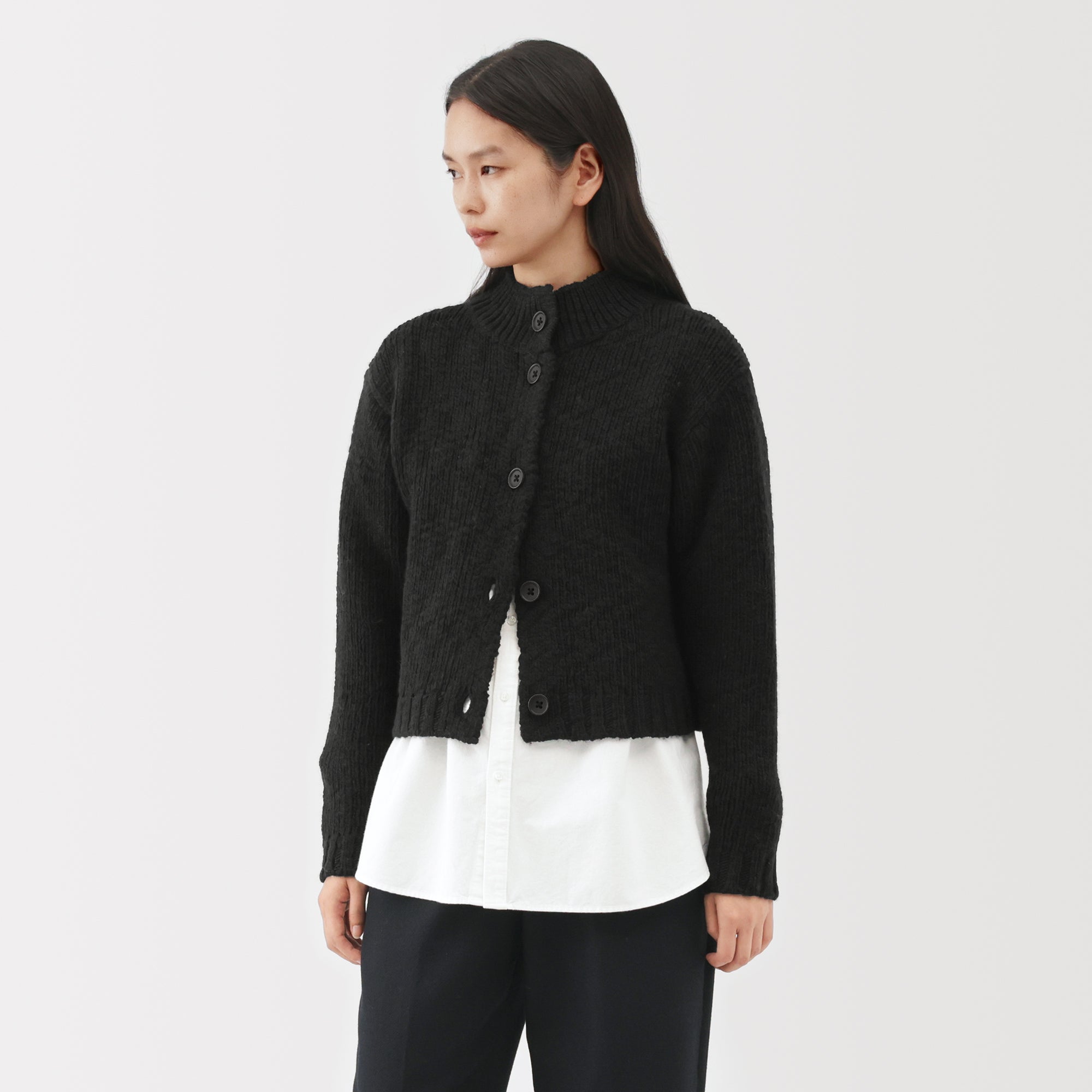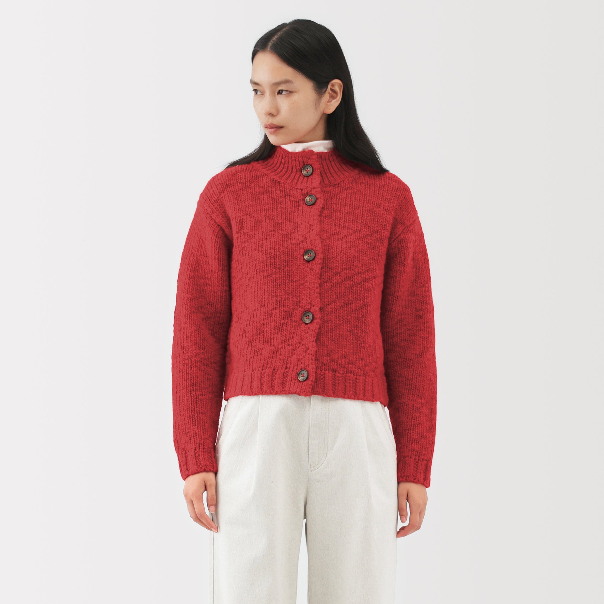 A women’s short cardigan made from fine low-gauge merino wool with a soft. uneven texture. Merino wool is soft. non-itchy. and breathable. allowing vapor to escape and keeping you warm and dry.