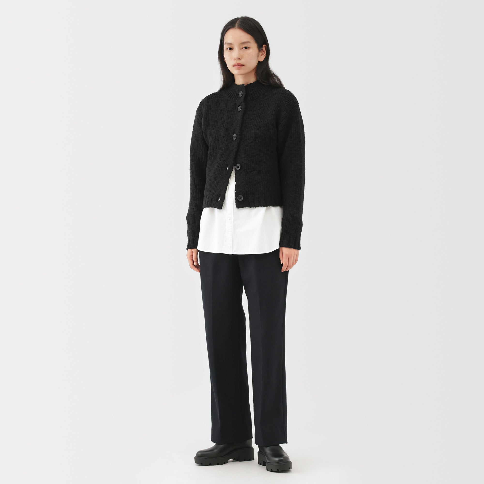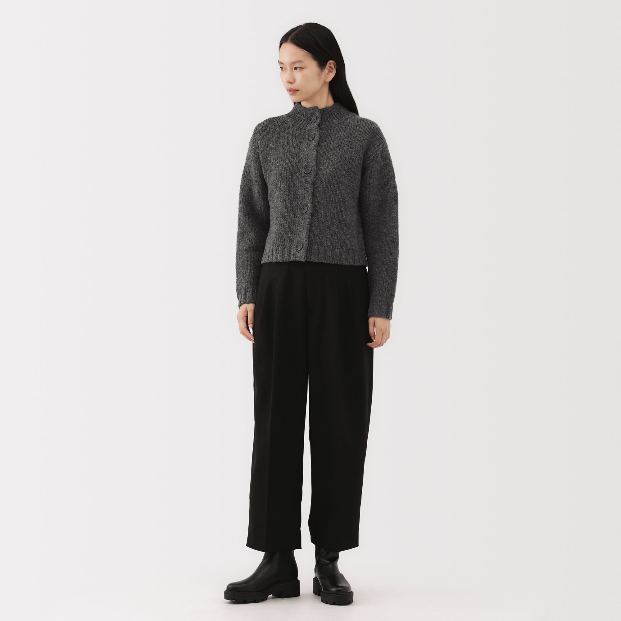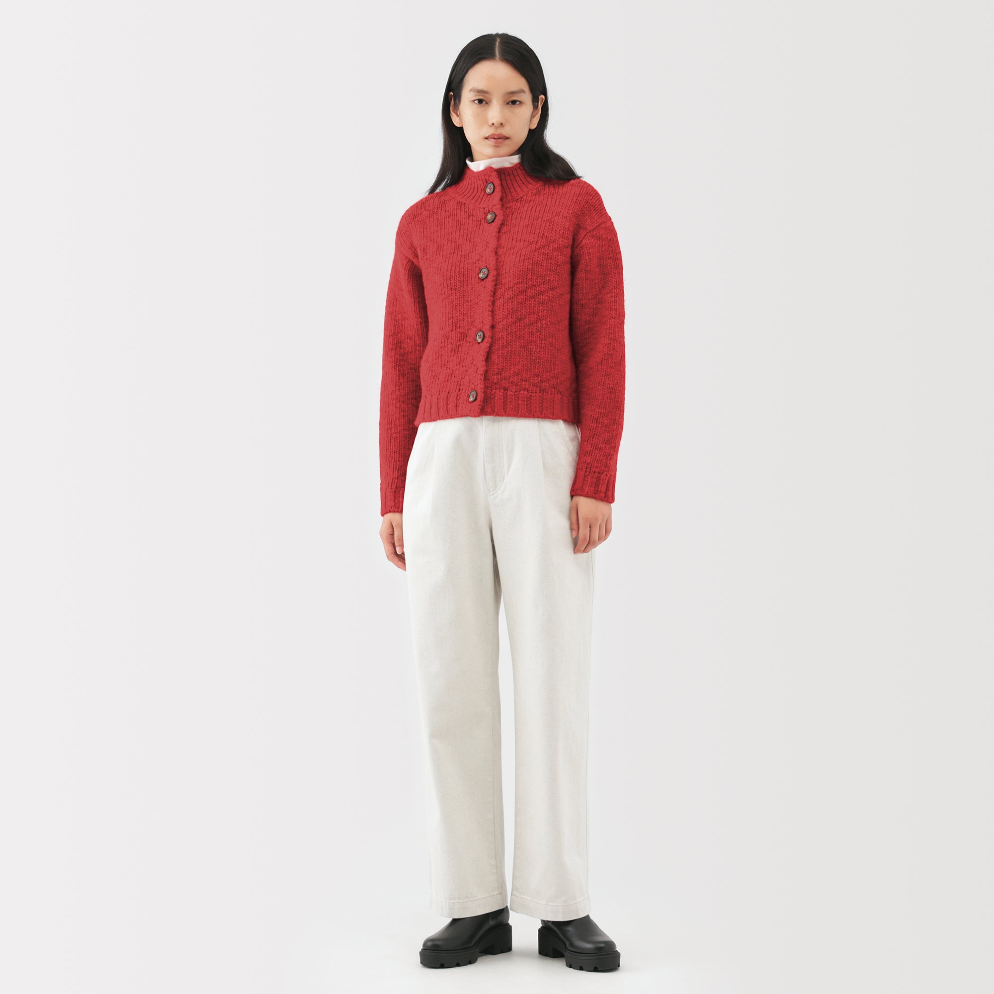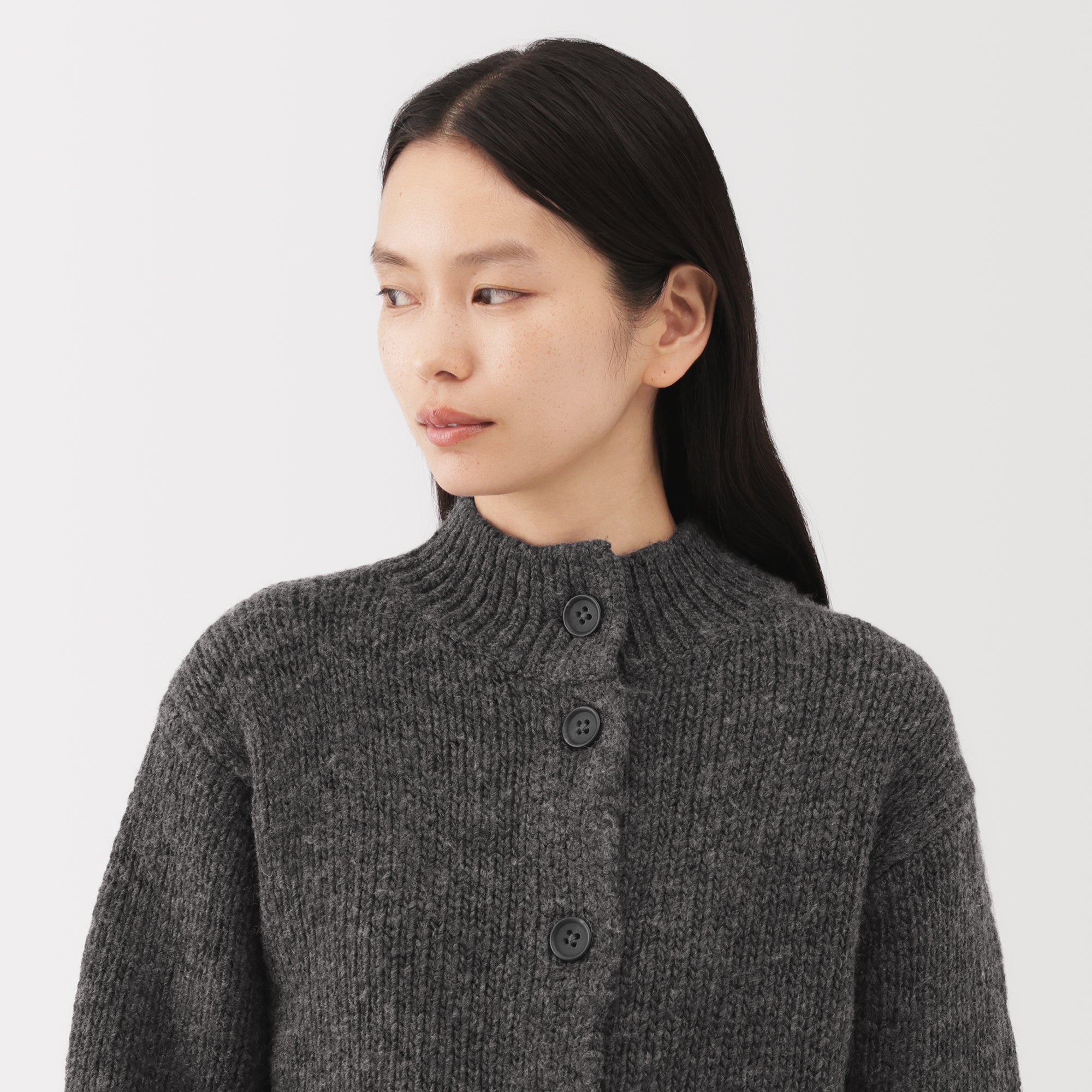 A women’s short cardigan made from fine low-gauge merino wool with a soft. uneven texture. Merino wool is soft. non-itchy. and breathable. allowing vapor to escape and keeping you warm and dry.