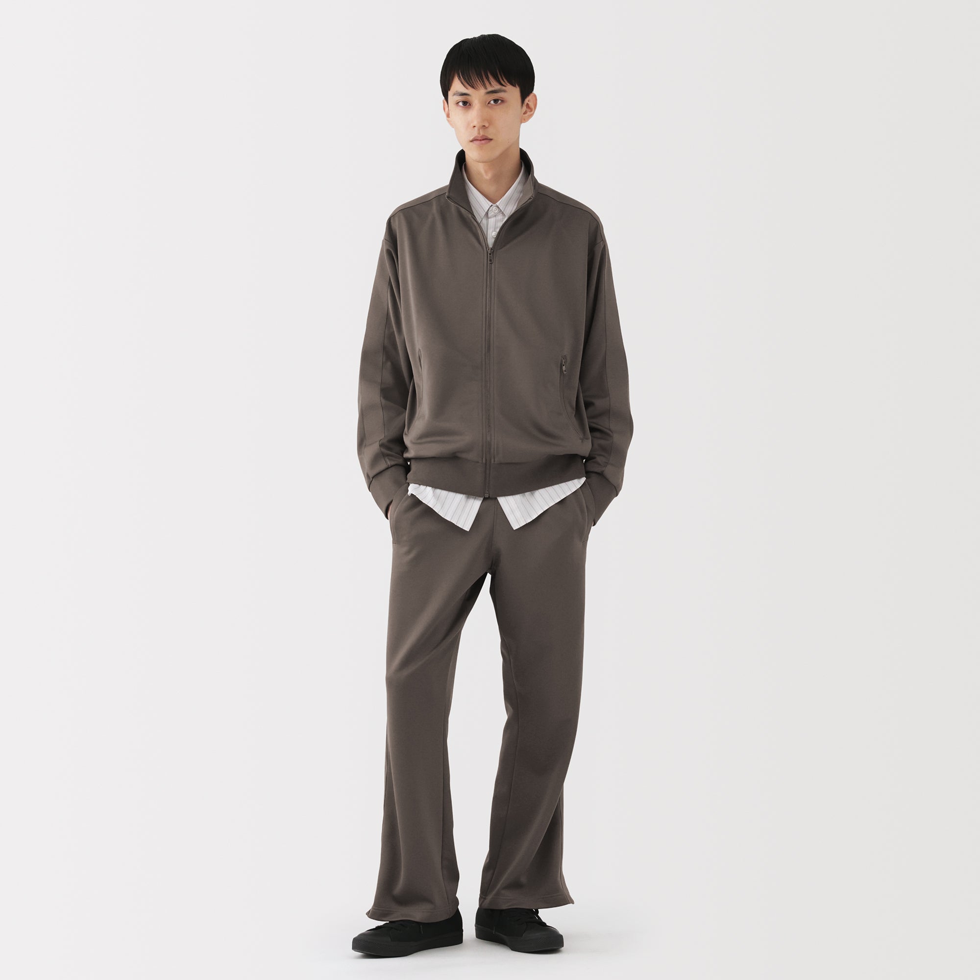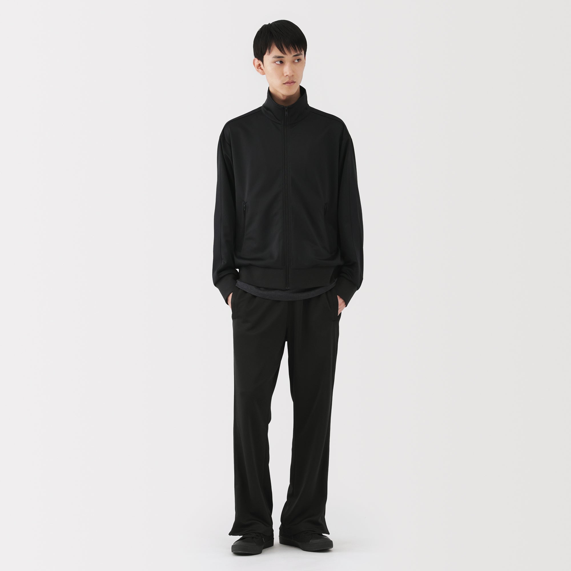 Men’s track pants made from smooth recycled polyester jersey fabric that is easy to move in. perfect for training and exercising. The hem of the pants feature a short zipper that can open up for more movement. With the waist drawstring hidden on the inside. these pants give you an adjustable and comfortable fit while keeping a neat appearance.