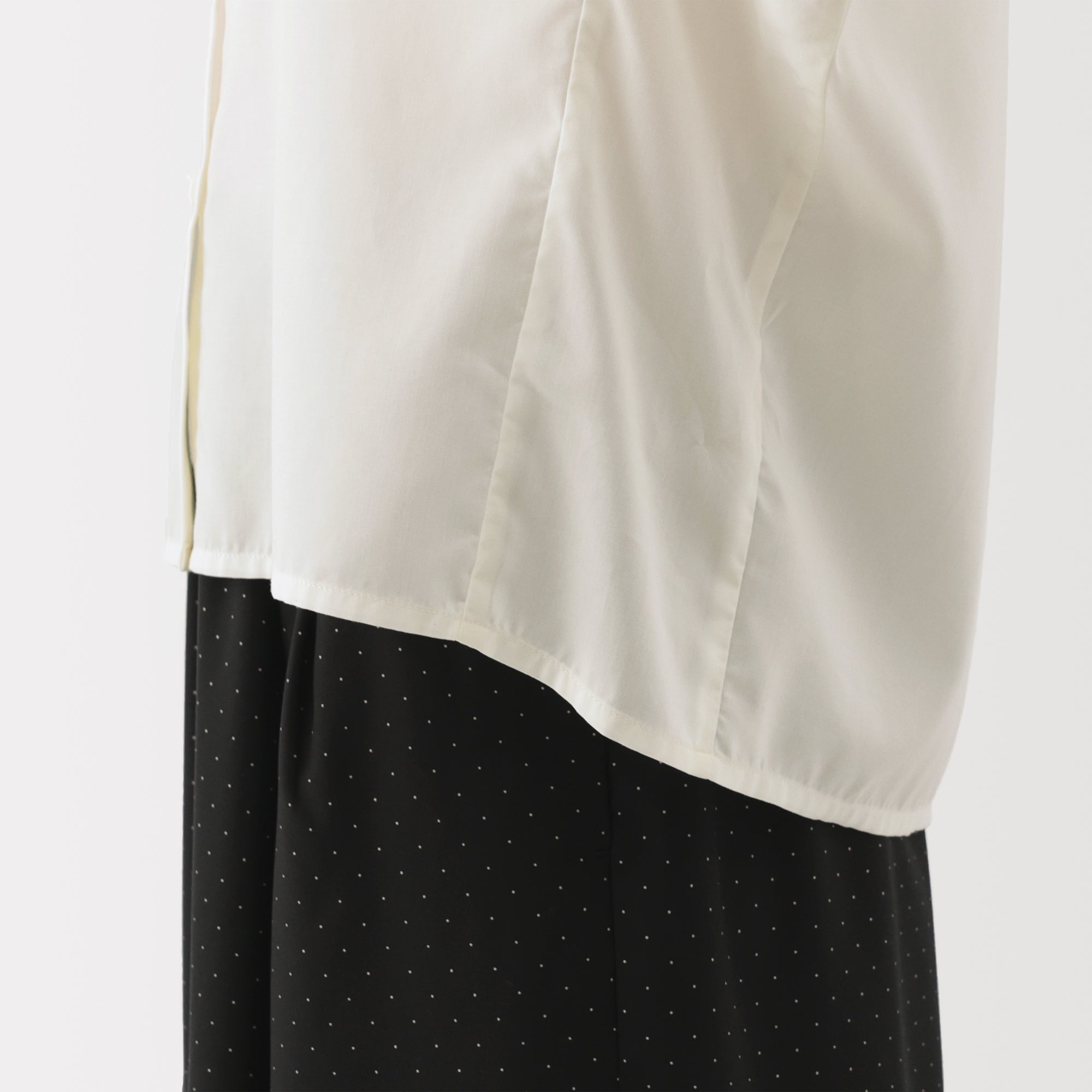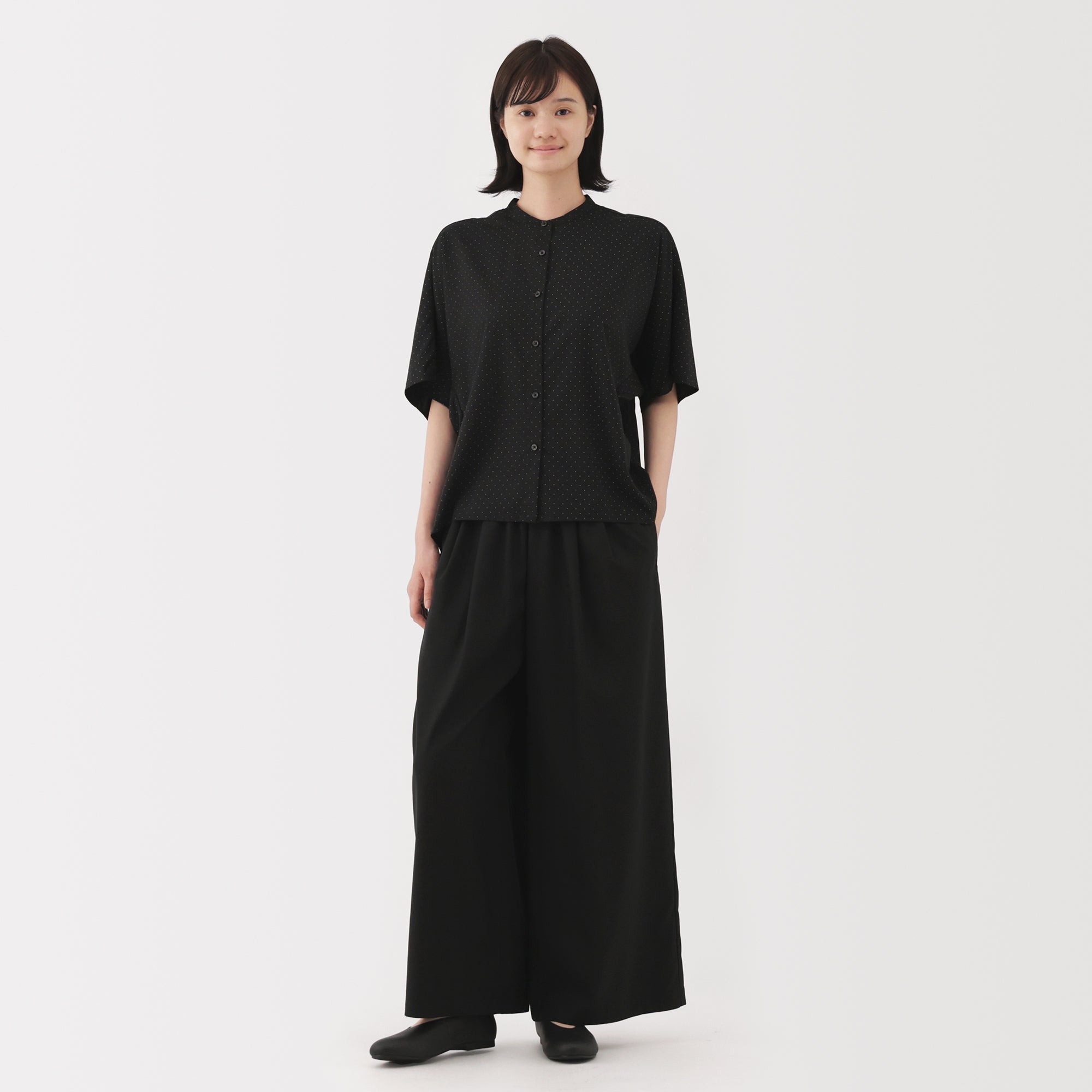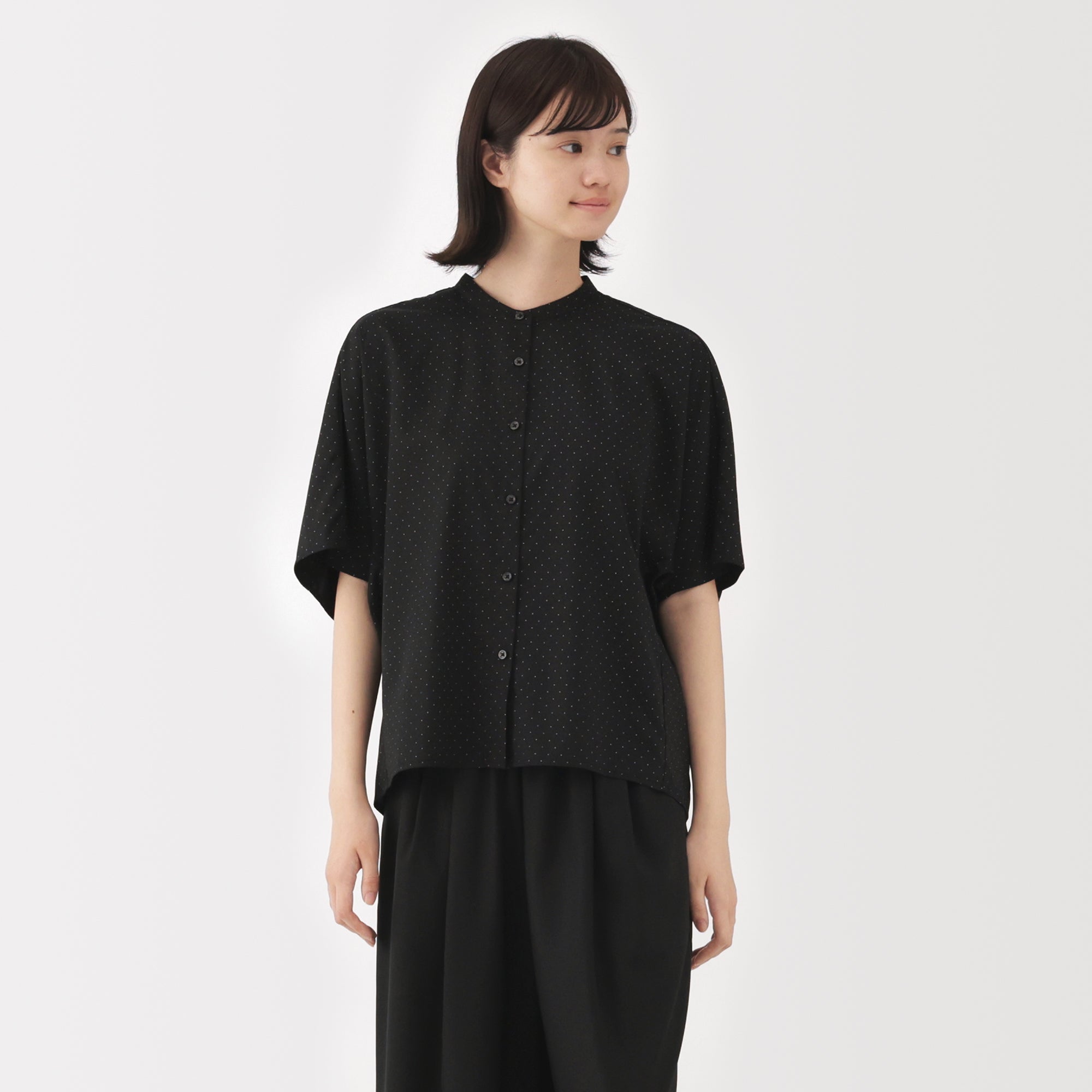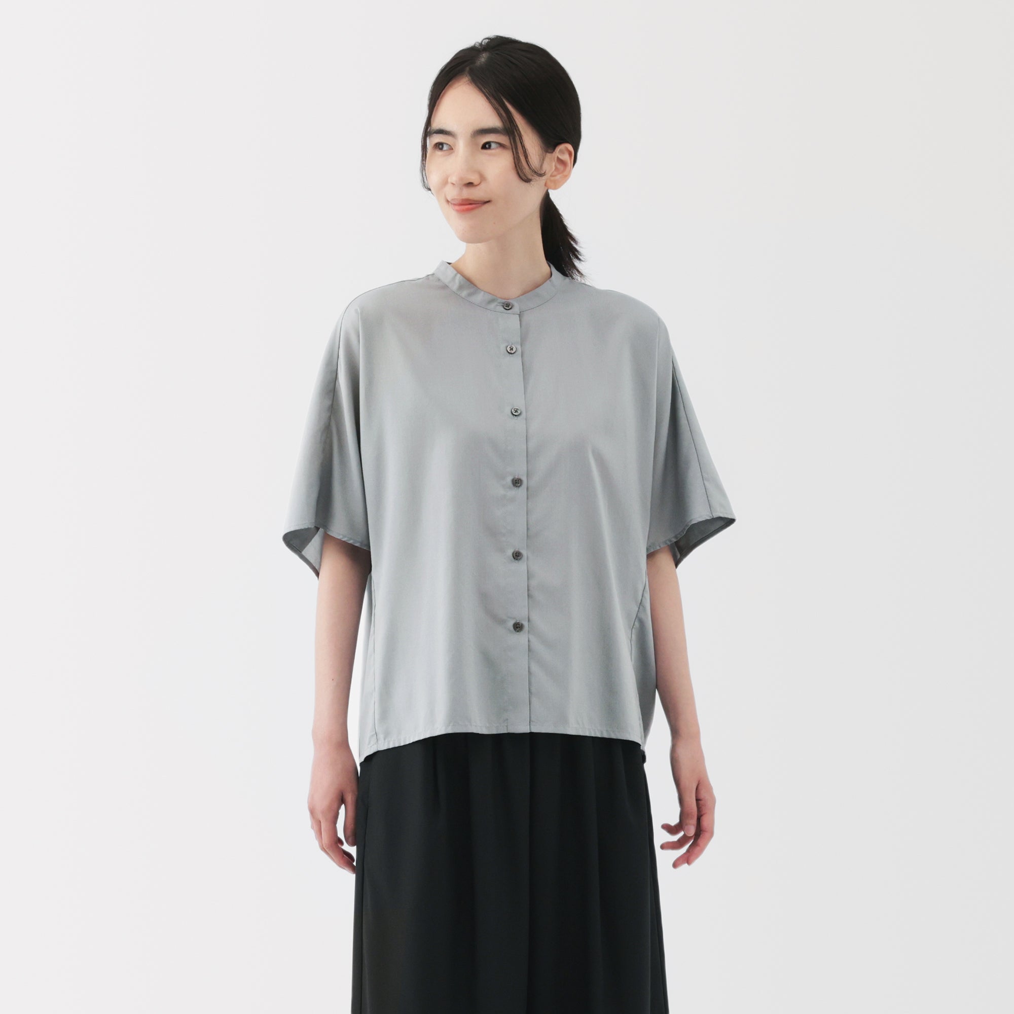 Made using recycled natural fibres. this button-up blouse is lightweight and smooth. It features loose dolman sleeves and a relaxed. feminine silhouette that is comfortable to wear.