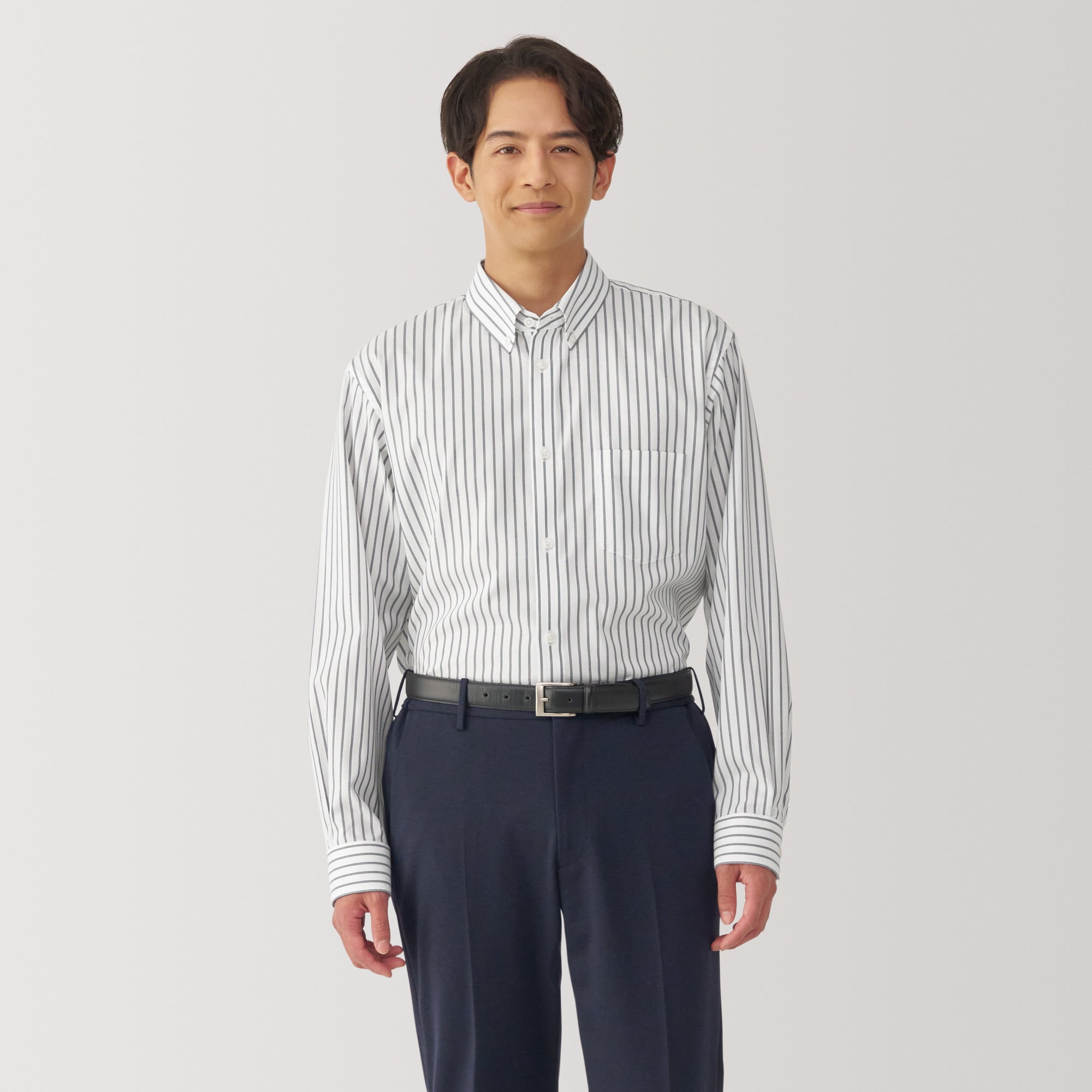 A regular collar business shirt made of 100% cotton that doesn’t need ironing. It has been treated to stay wrinkle-free and has special tape in the seams to reduce wrinkles. The collar height is ideal for wearing with a tie. and the length is perfect for tucking in.