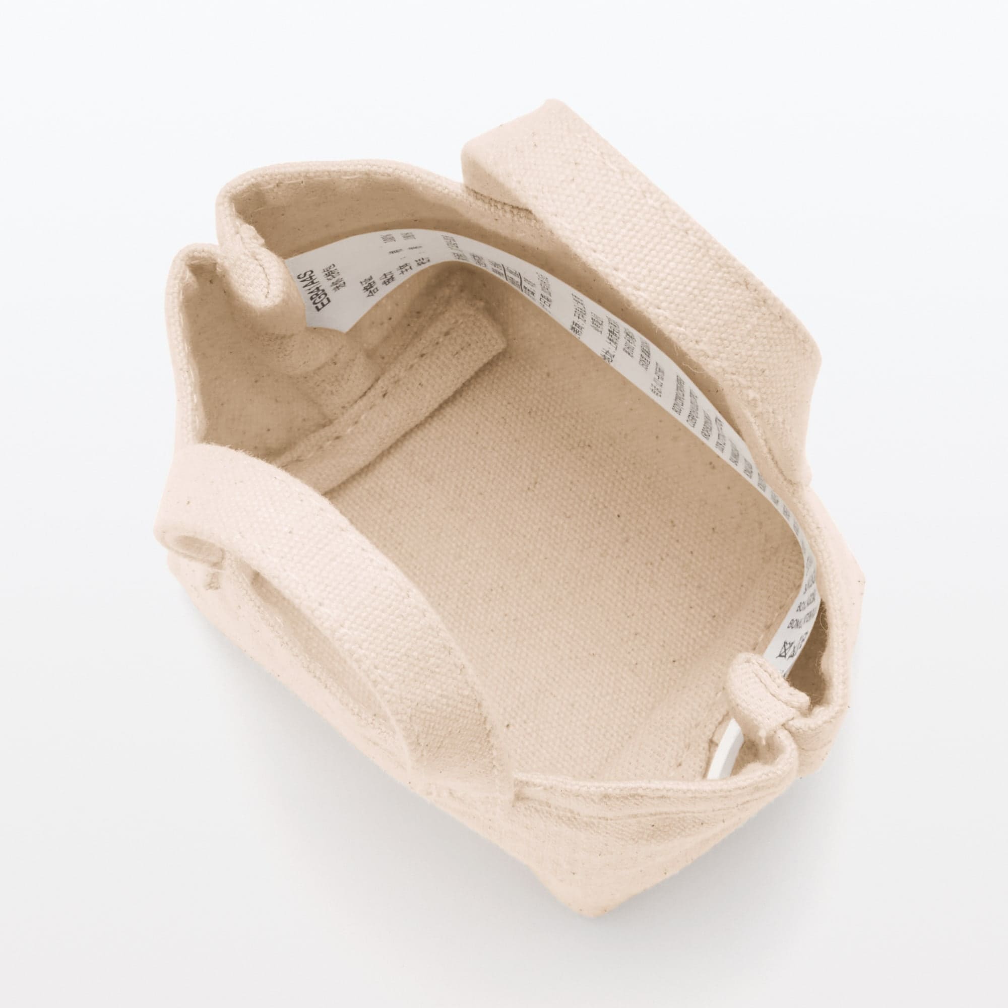 A mini version of a classic MUJI item. This adorable mini canvas tote bag can store small items and accessories. It can also be used as a cute decoration or gift bag.