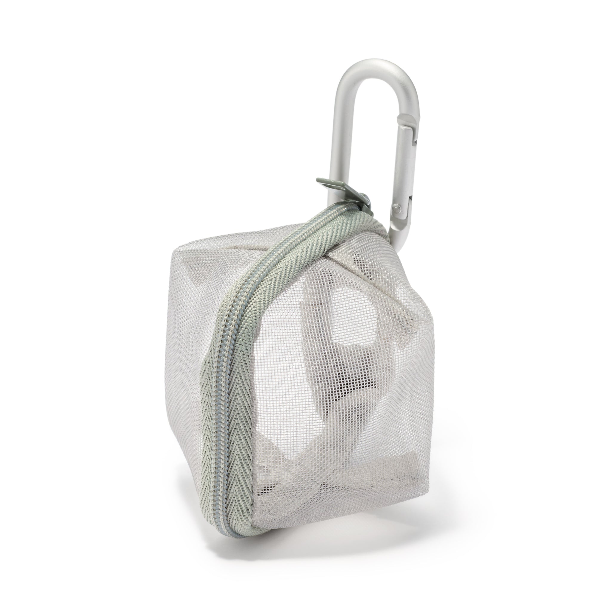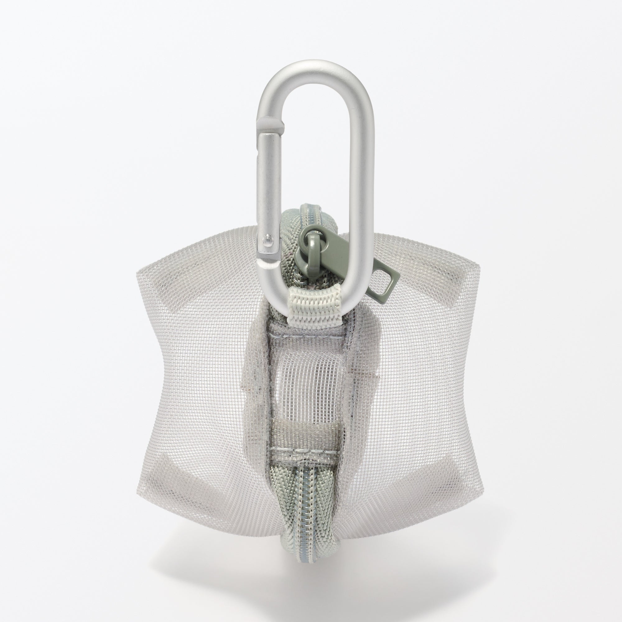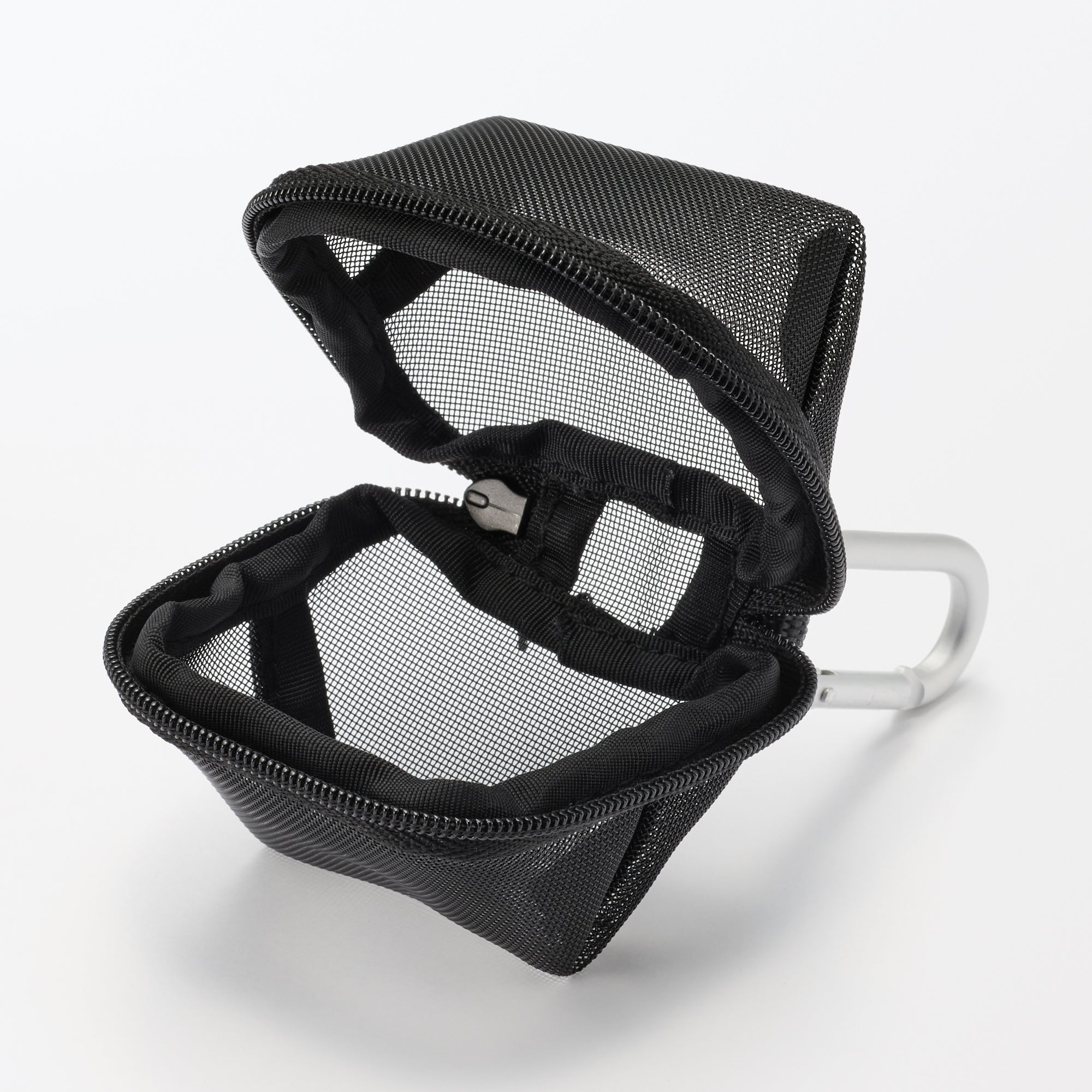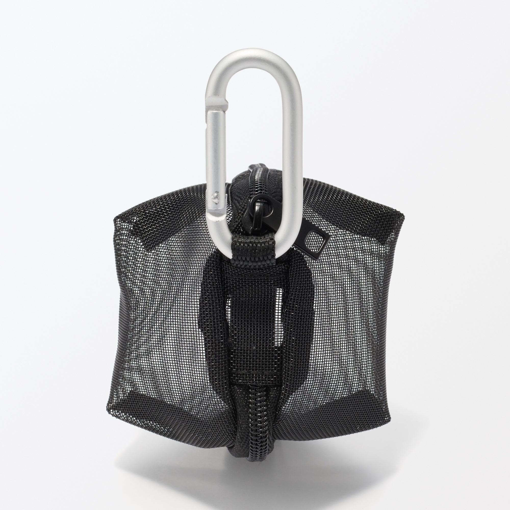 This small 3D zippered pouch is made of firm mesh. The included carabiner allow it to be attached to bags for quick. easy access to small items.