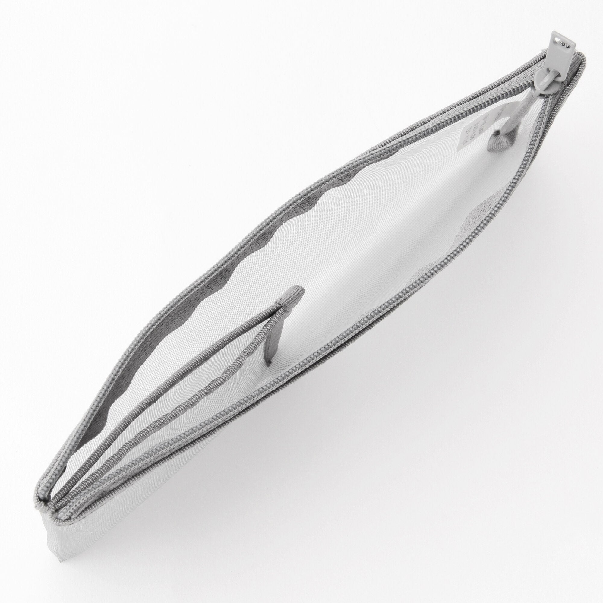 A flat and compact pen case made from a sturdy nylon material that allows you to quickly and easily see what is stored inside.