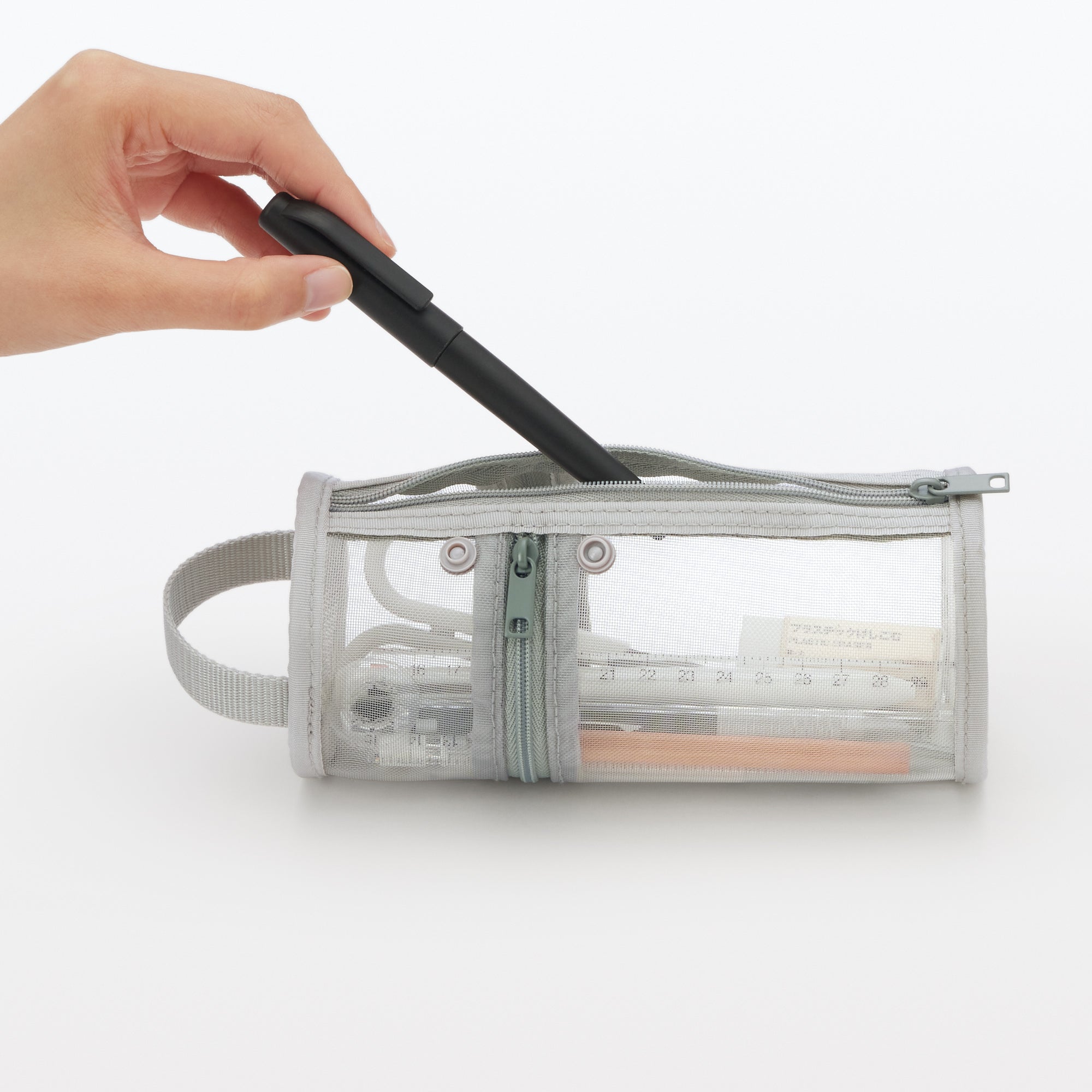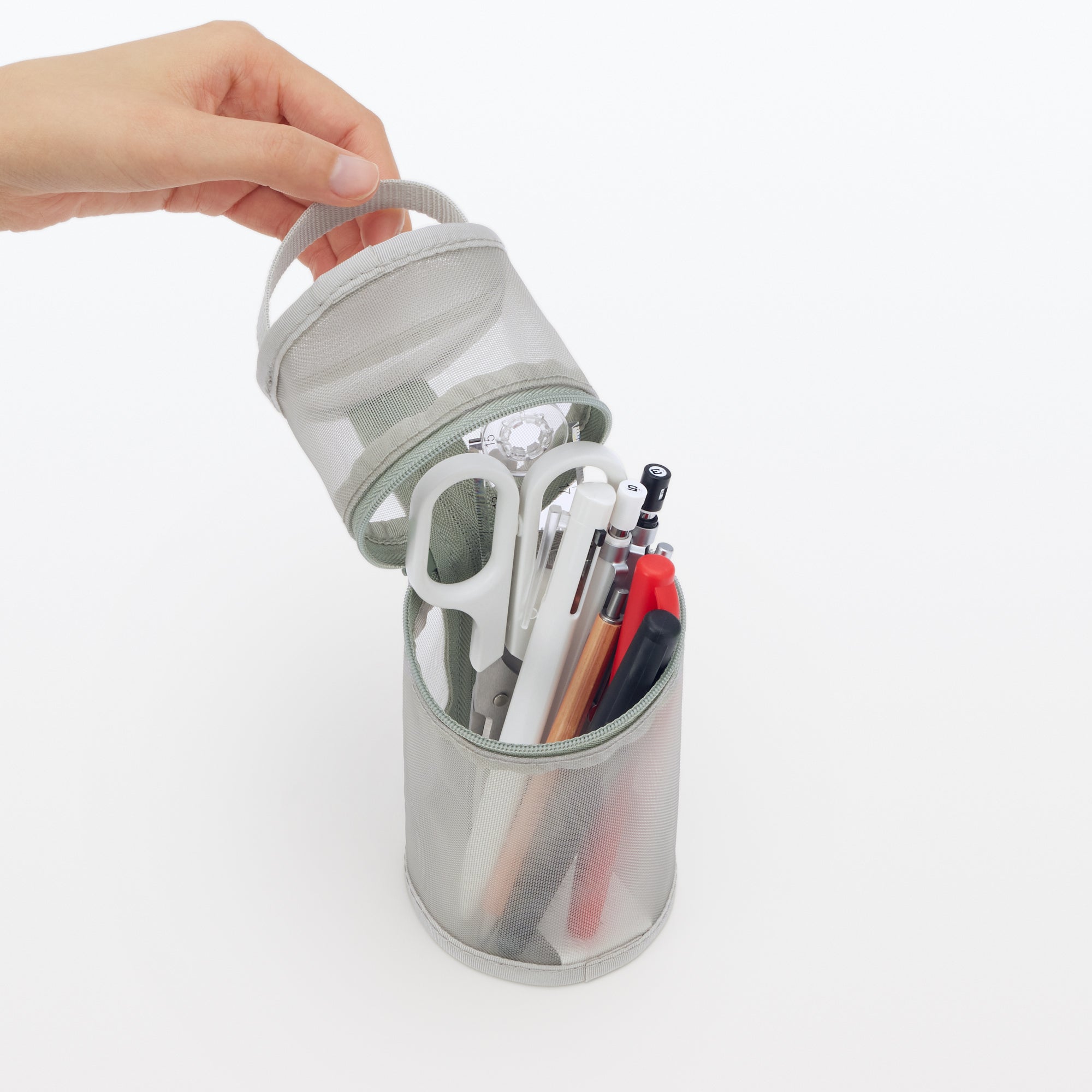 A pen case made of light and durable nylon mesh fabric. structured in a way that can open both horizontally or vertically for your convenience.