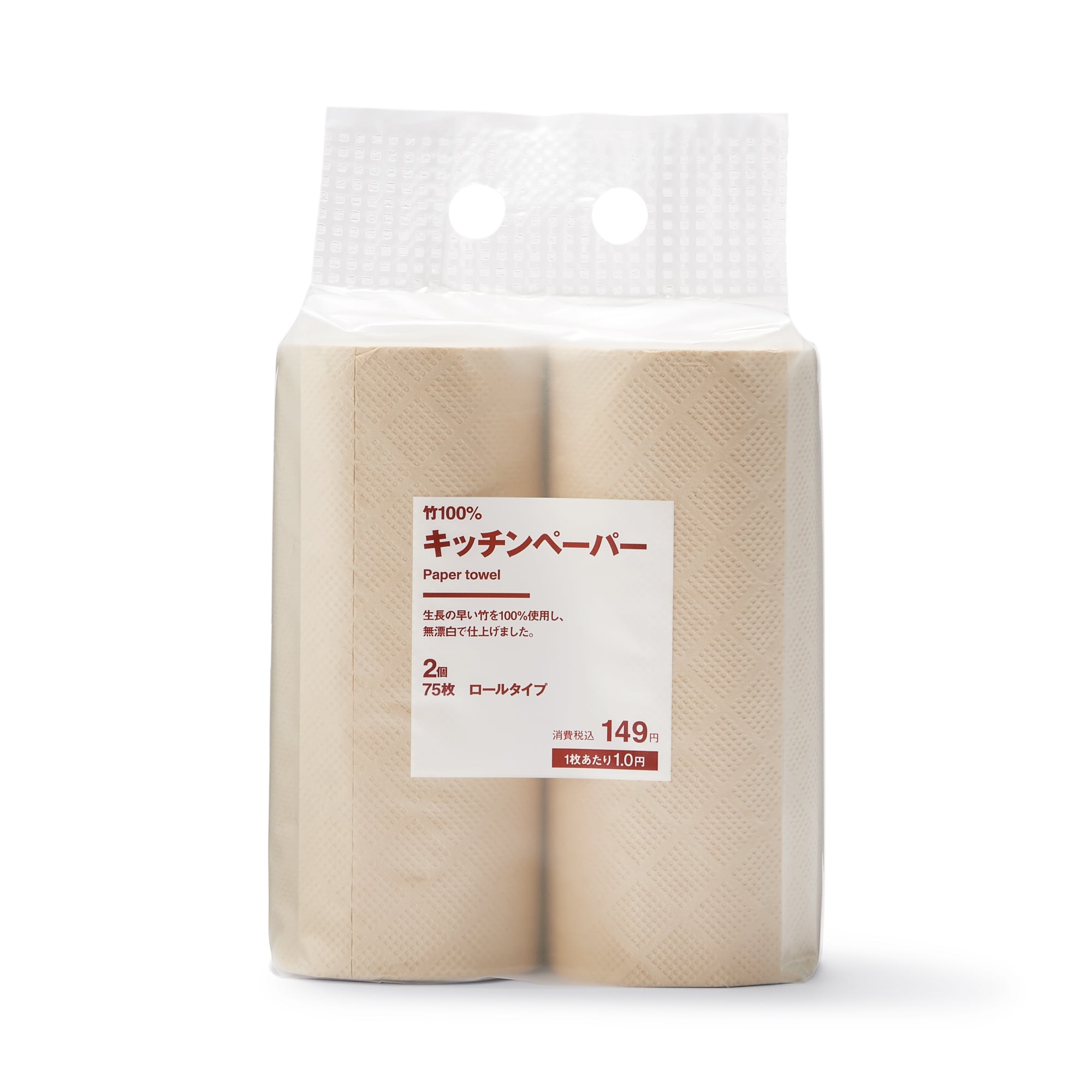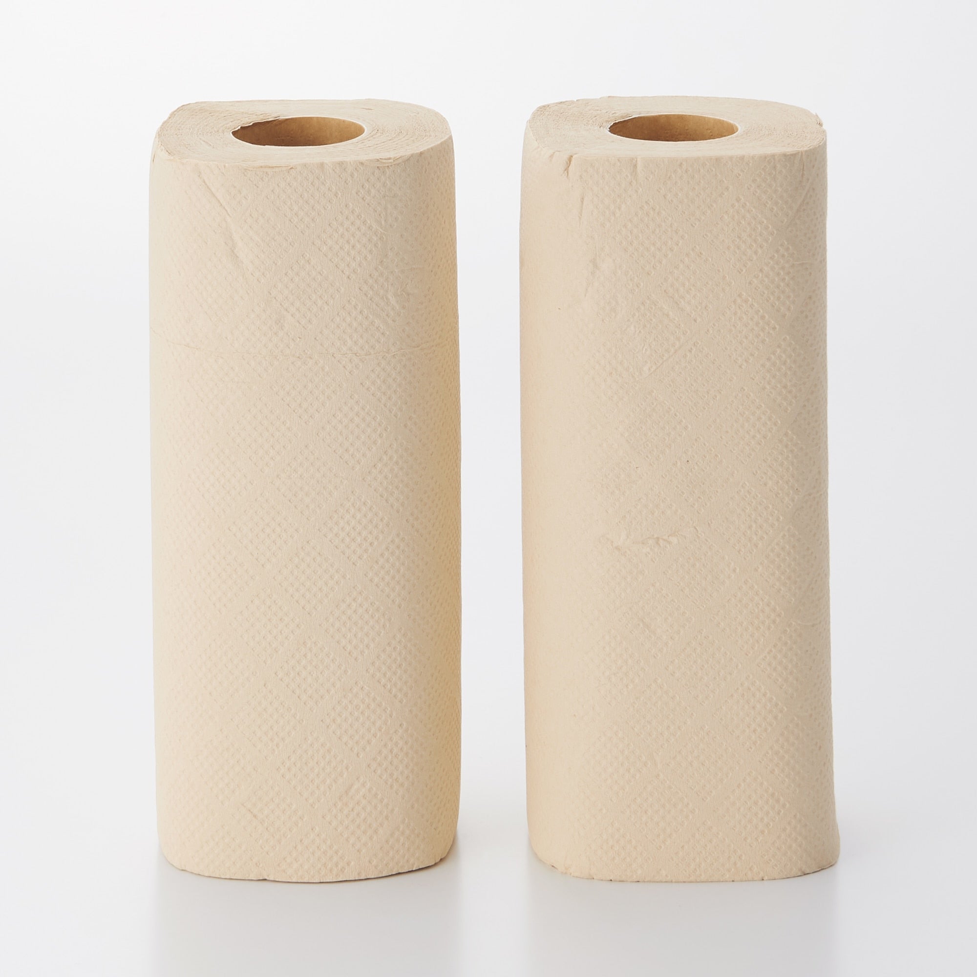 A pack of 2 paper towel rolls. made from 100% fast-growing bamboo and finished without bleach.