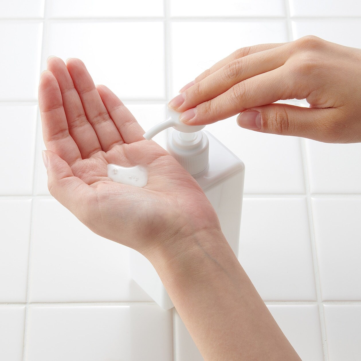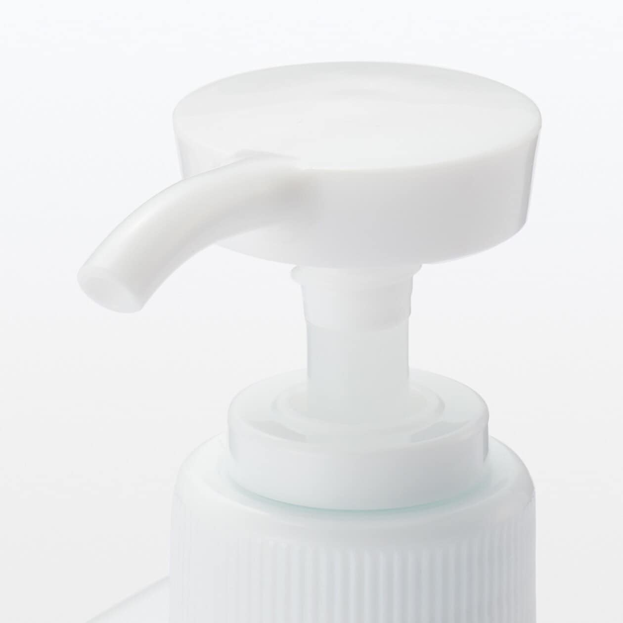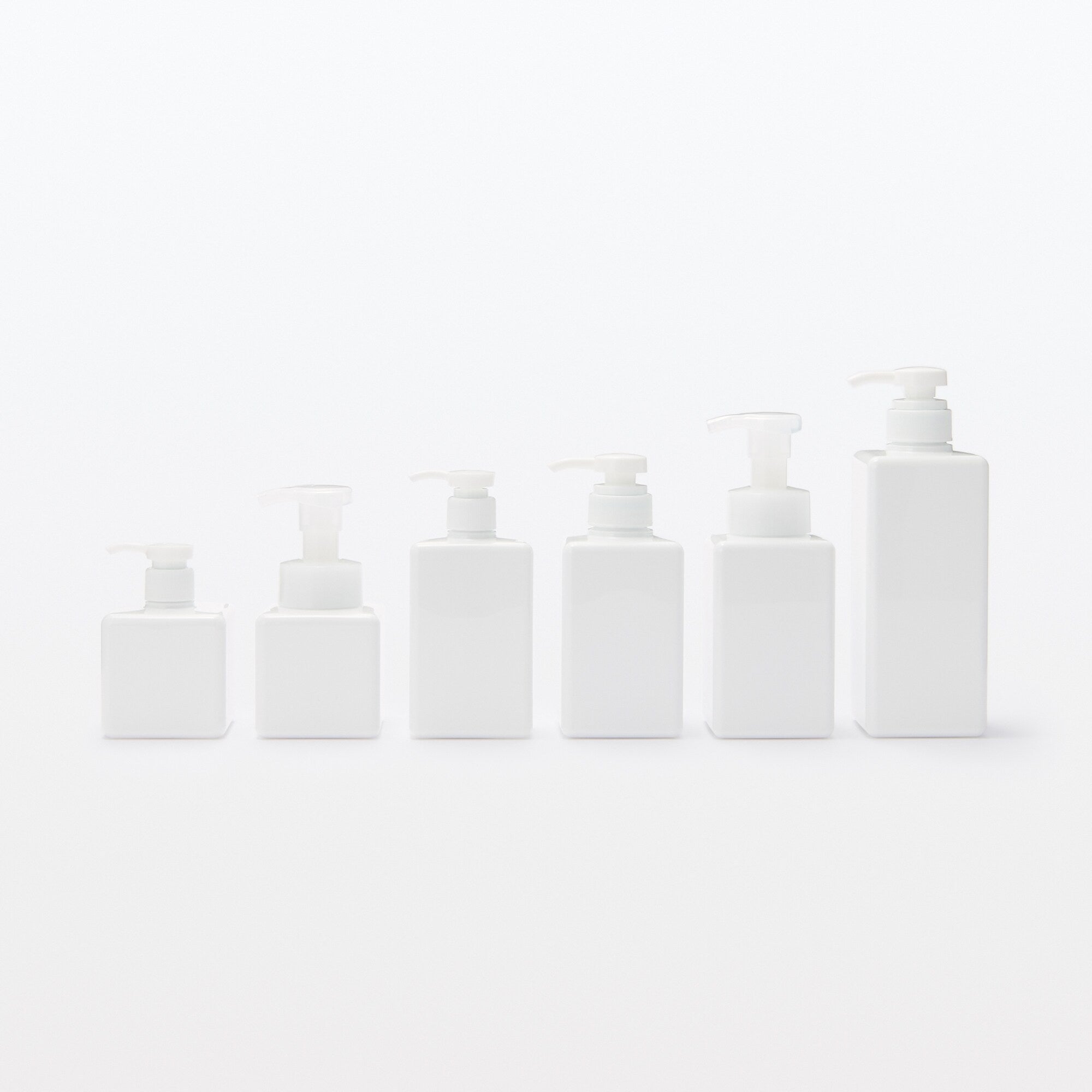 Easy-to-clean pump-type soap dispenser with sturdy square base.