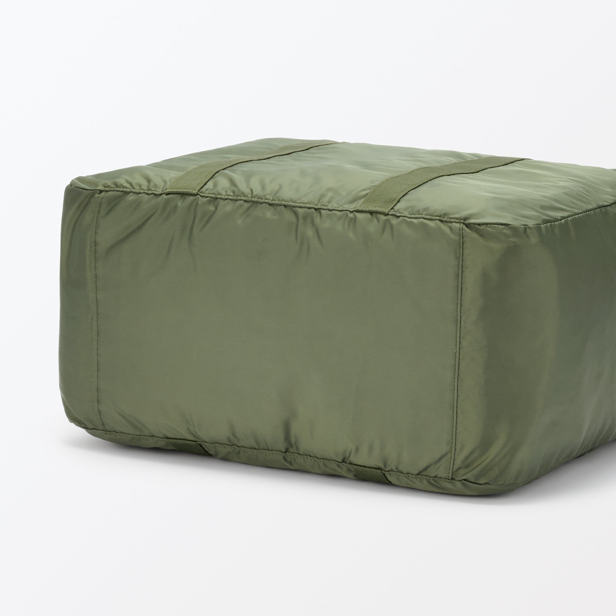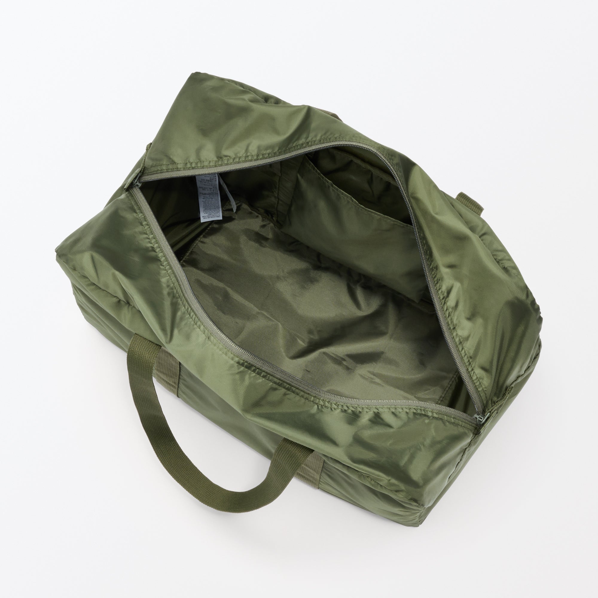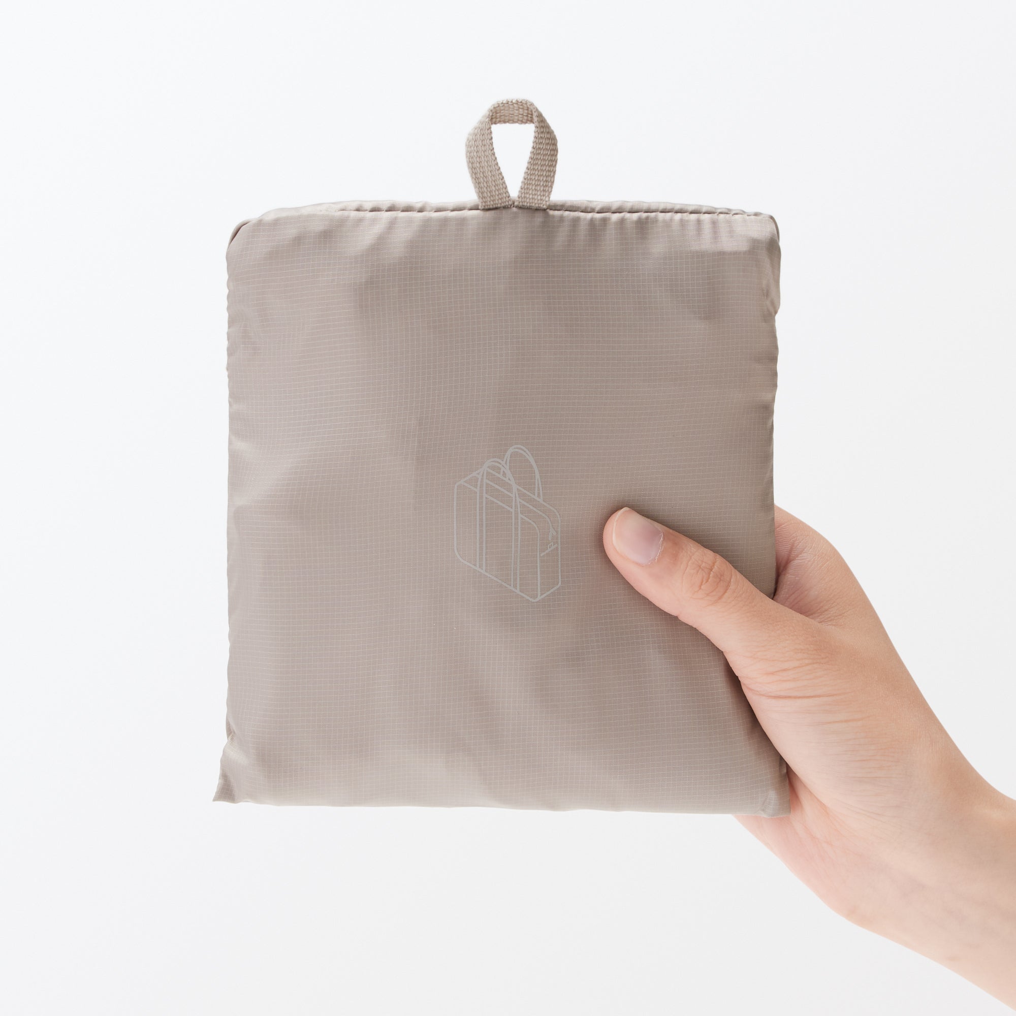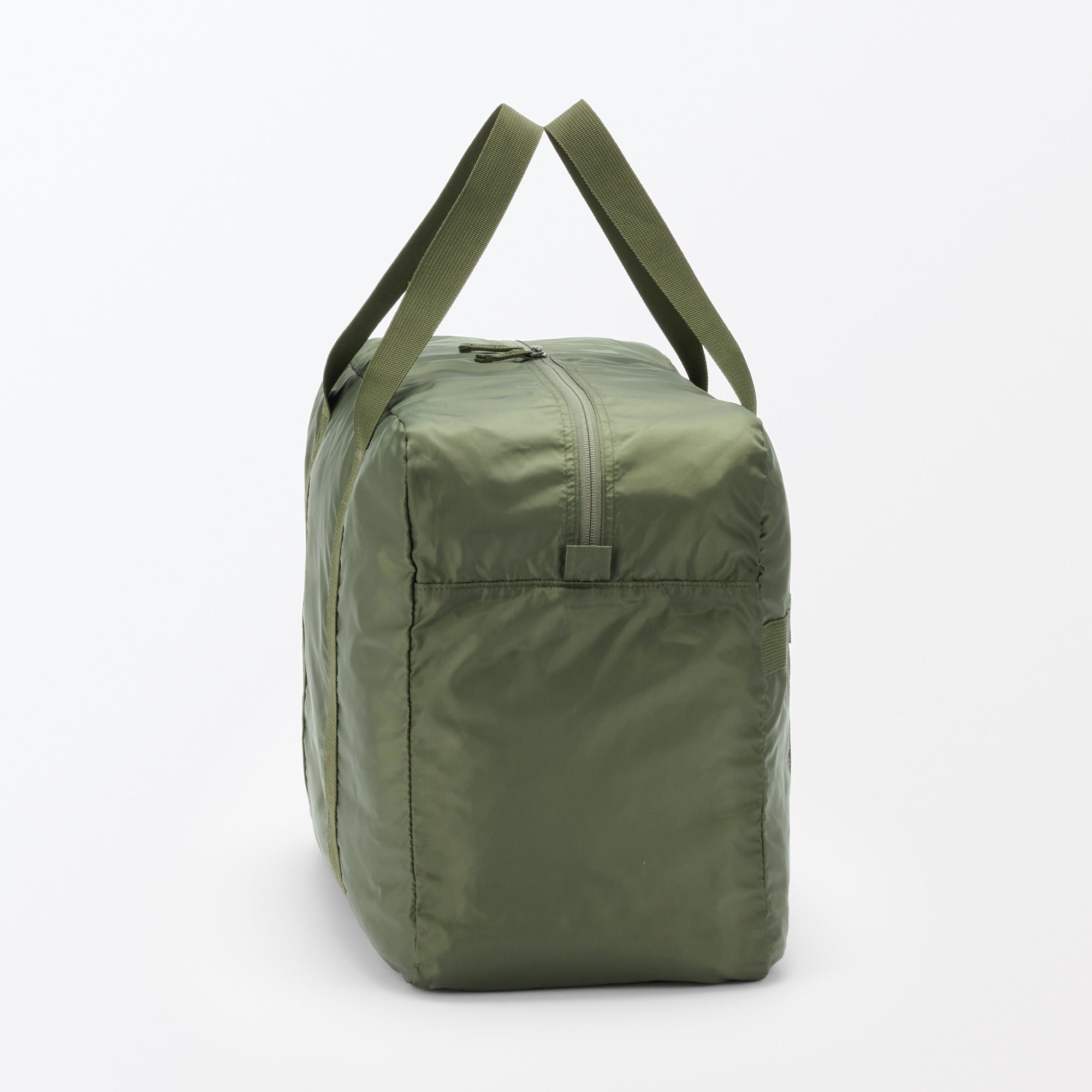 A weekend bag with a compact. foldable design that makes it easy to store when not in use. Made with a water-repellent recycled polyester material so it can be used in all types of weather. The bag also features a luggage strap for your convenience. allowing you to easily secure it to your suitcase handle.