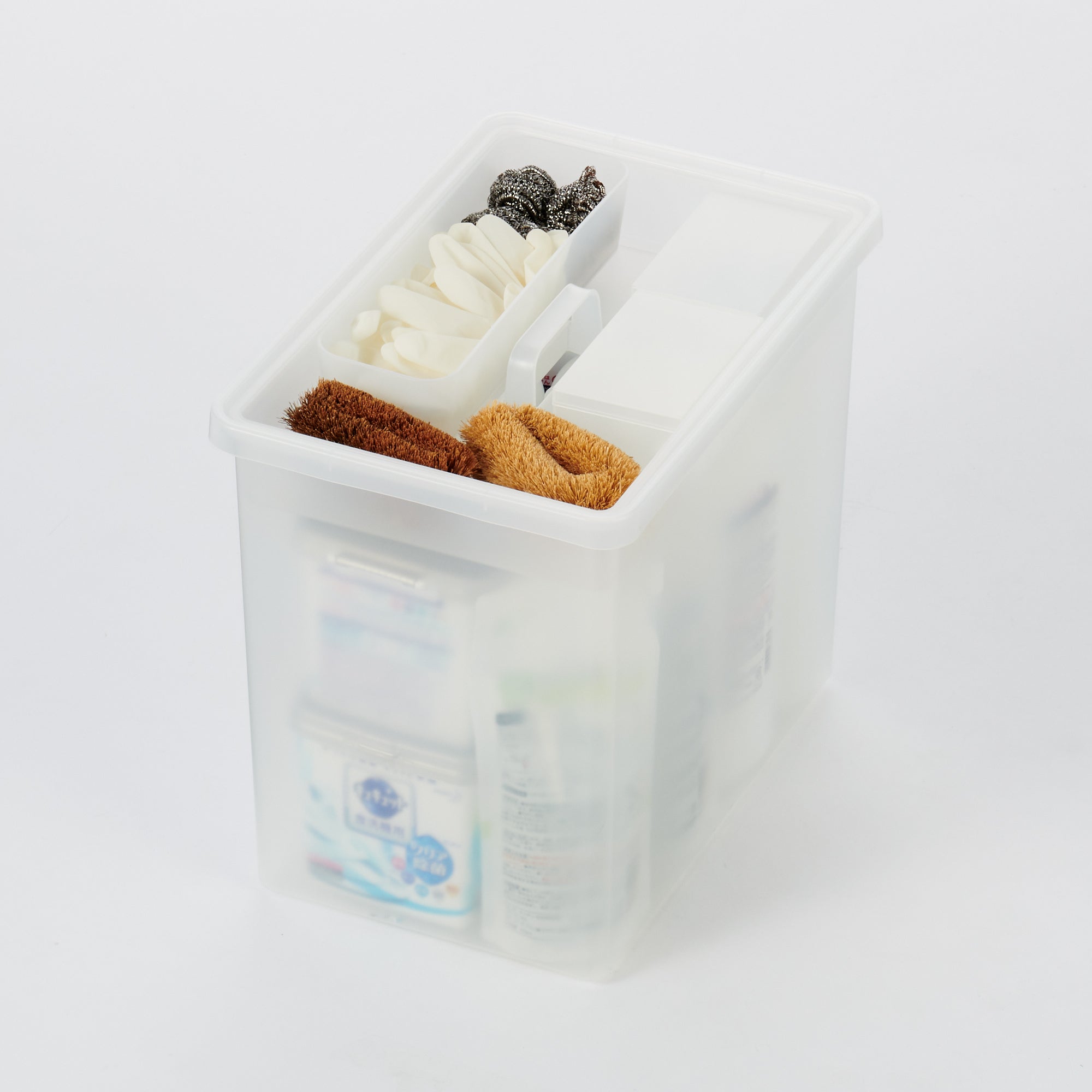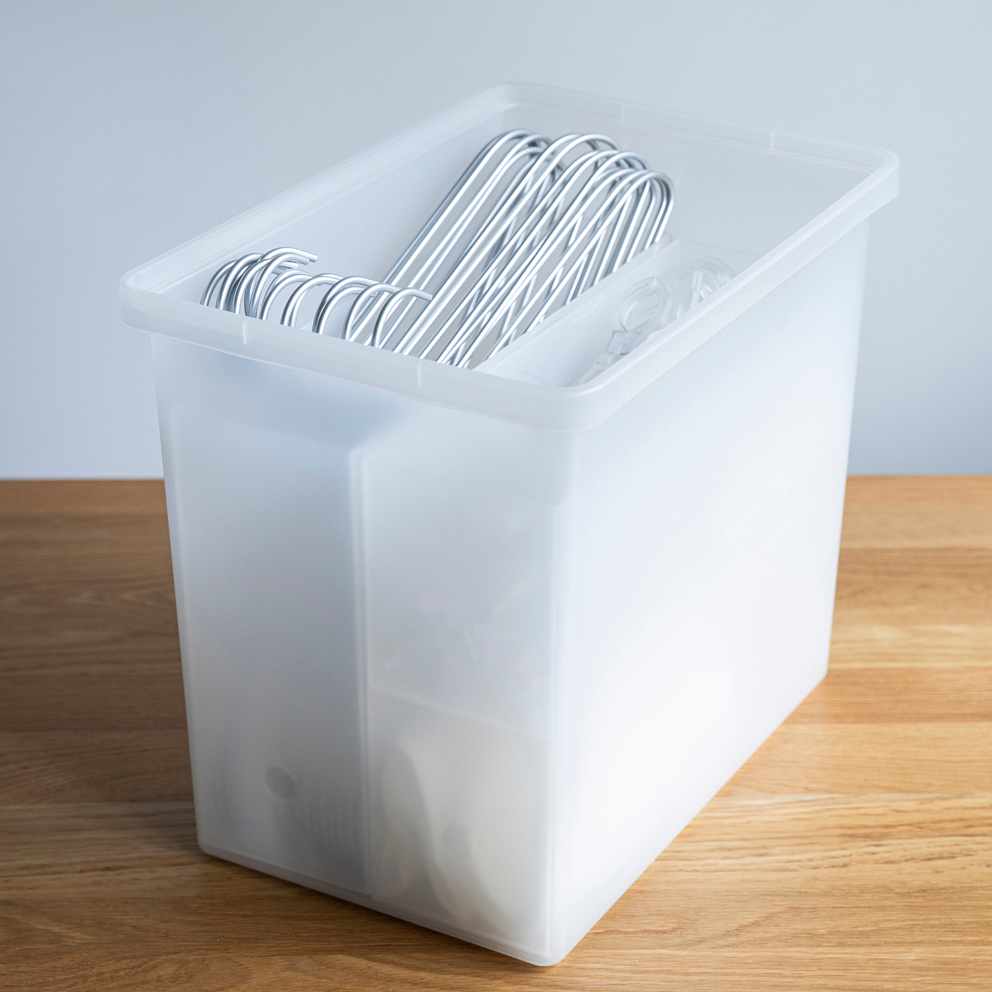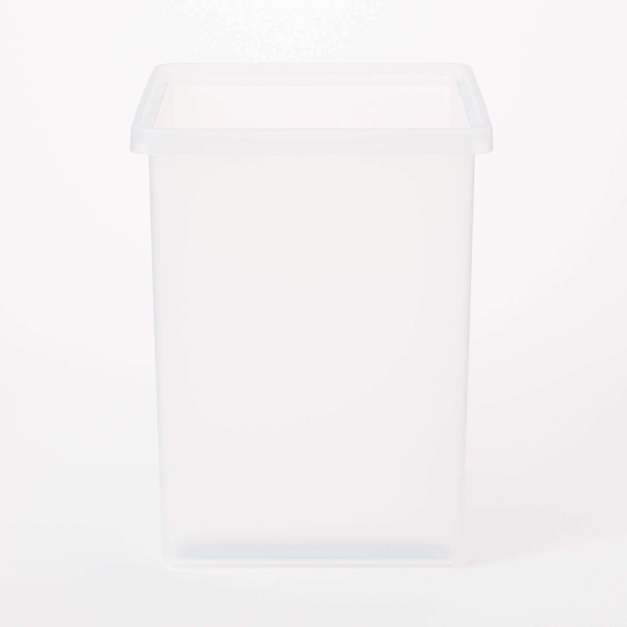 A storage box made of polypropylene. designed to perfectly fit file boxes and other storage items without gaps in between. It’s perfect for organizing items. whether you use it in the kitchen. bathroom. or office. The translucent material allows you to quickly see its contents for convenience. Use with inner trays or smaller storage boxes (sold separately) to make effective use of the space inside.