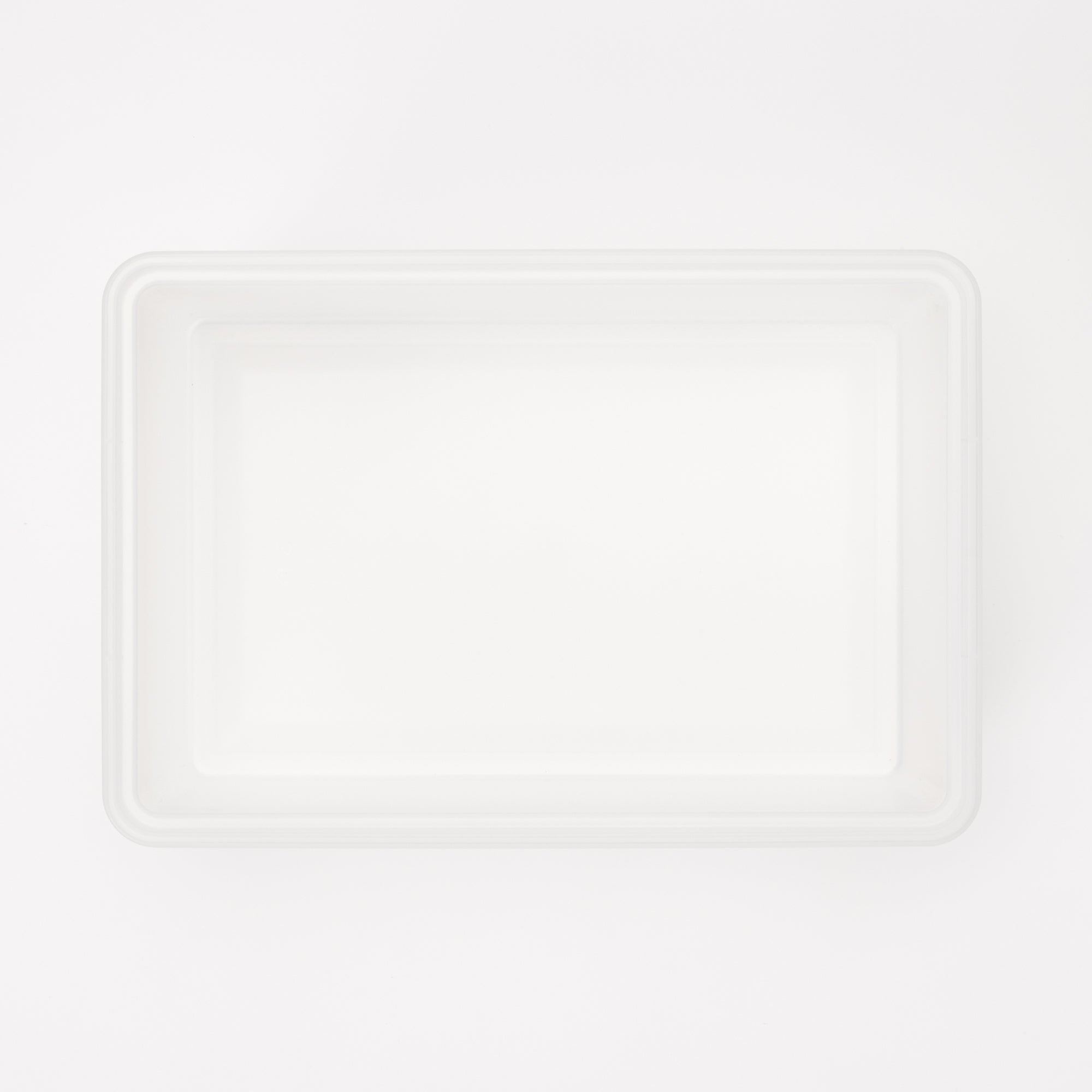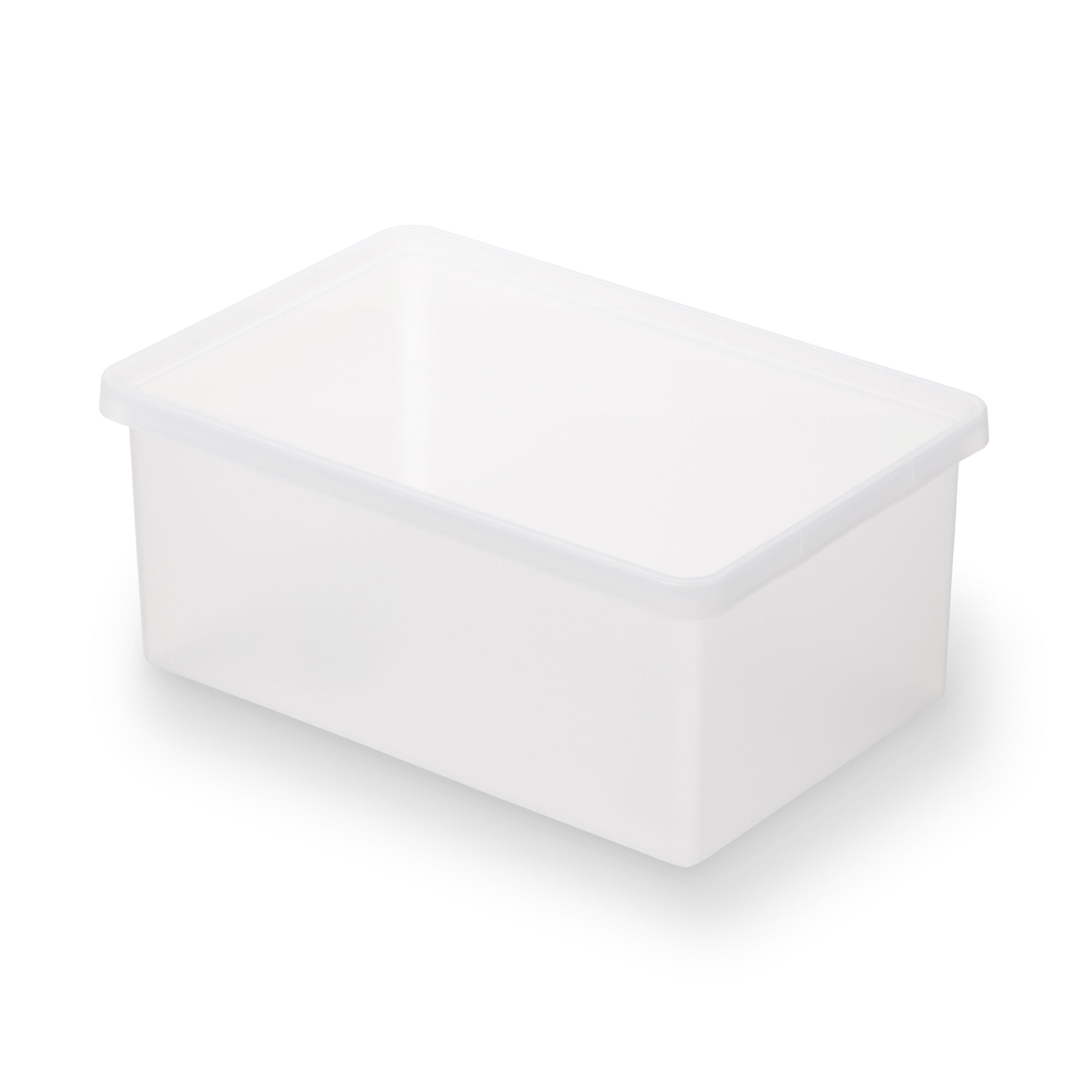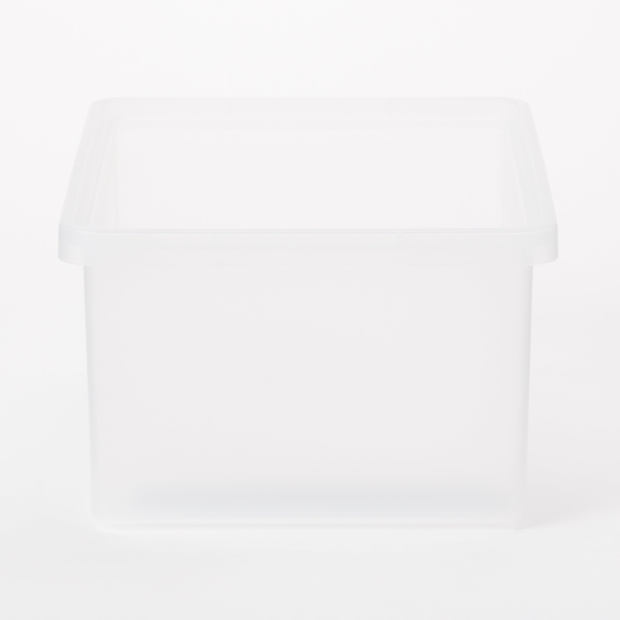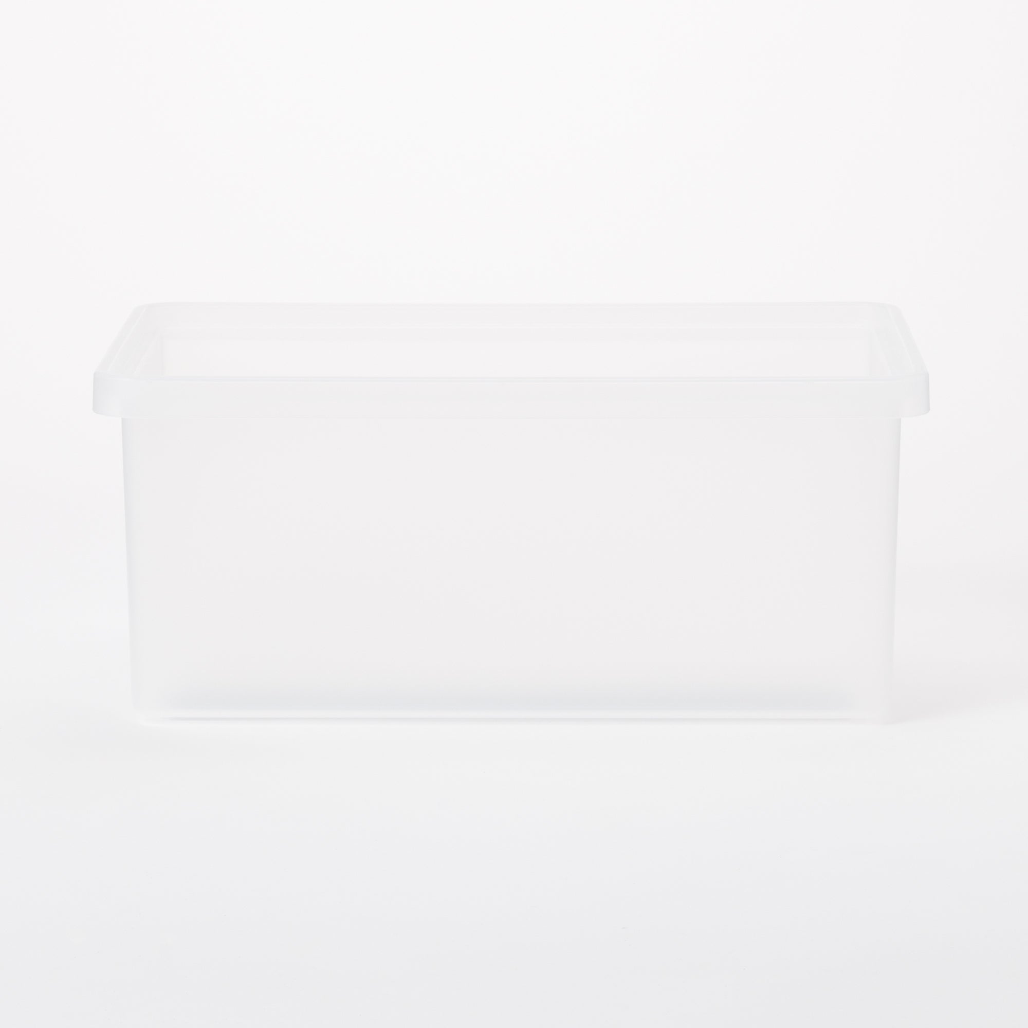 A storage box made of polypropylene. designed to perfectly fit file boxes and other storage items without gaps in between. It’s perfect for organizing items. whether you use it in the kitchen. bathroom. or office. The translucent material allows you to quickly see its contents for convenience. Use with inner trays or smaller storage boxes (sold separately) to make effective use of the space inside.