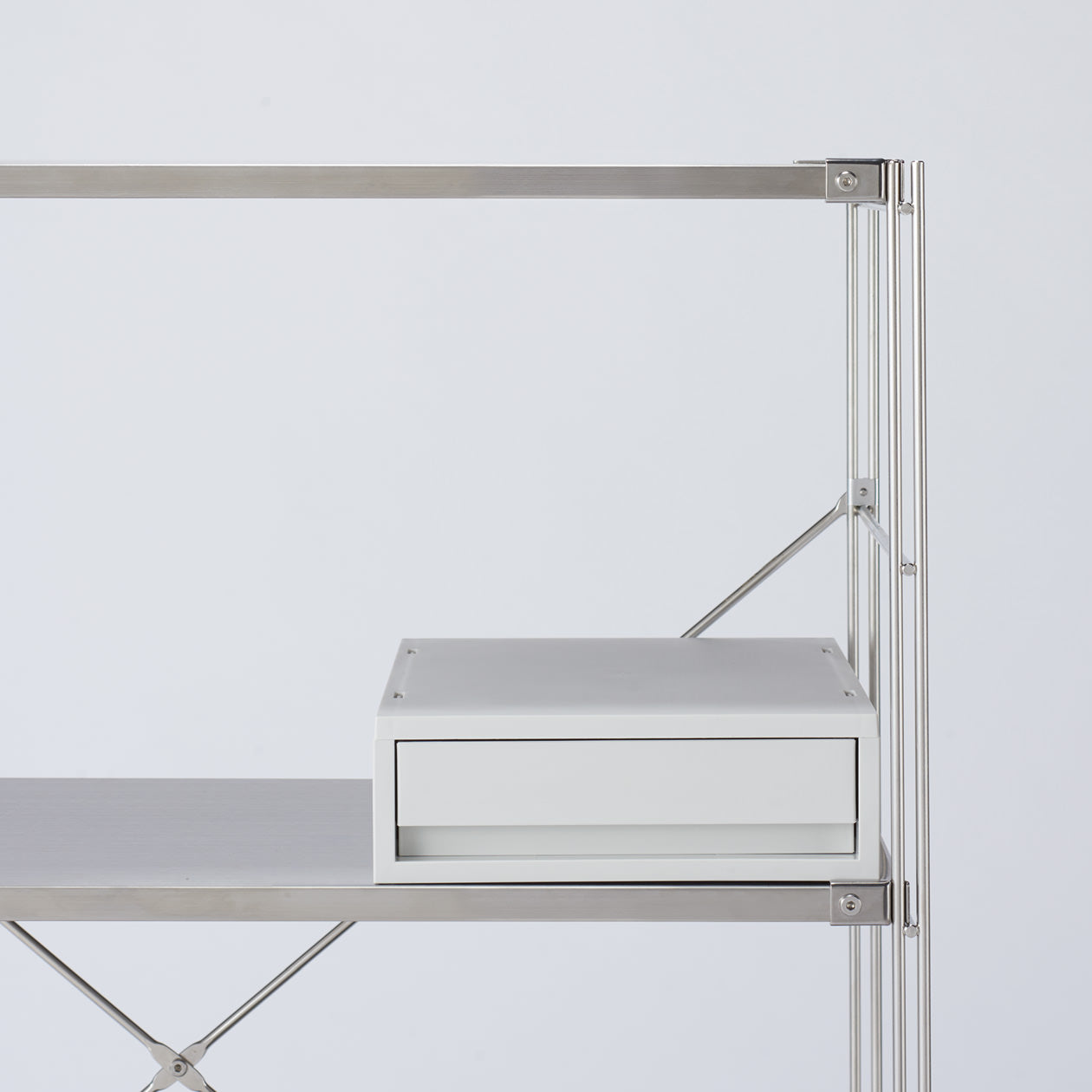 A storage case of a size suitable for storing small items and documents. It can be stacked and used. and the modules are combined. so it fits perfectly on a MUJI unit shelf.