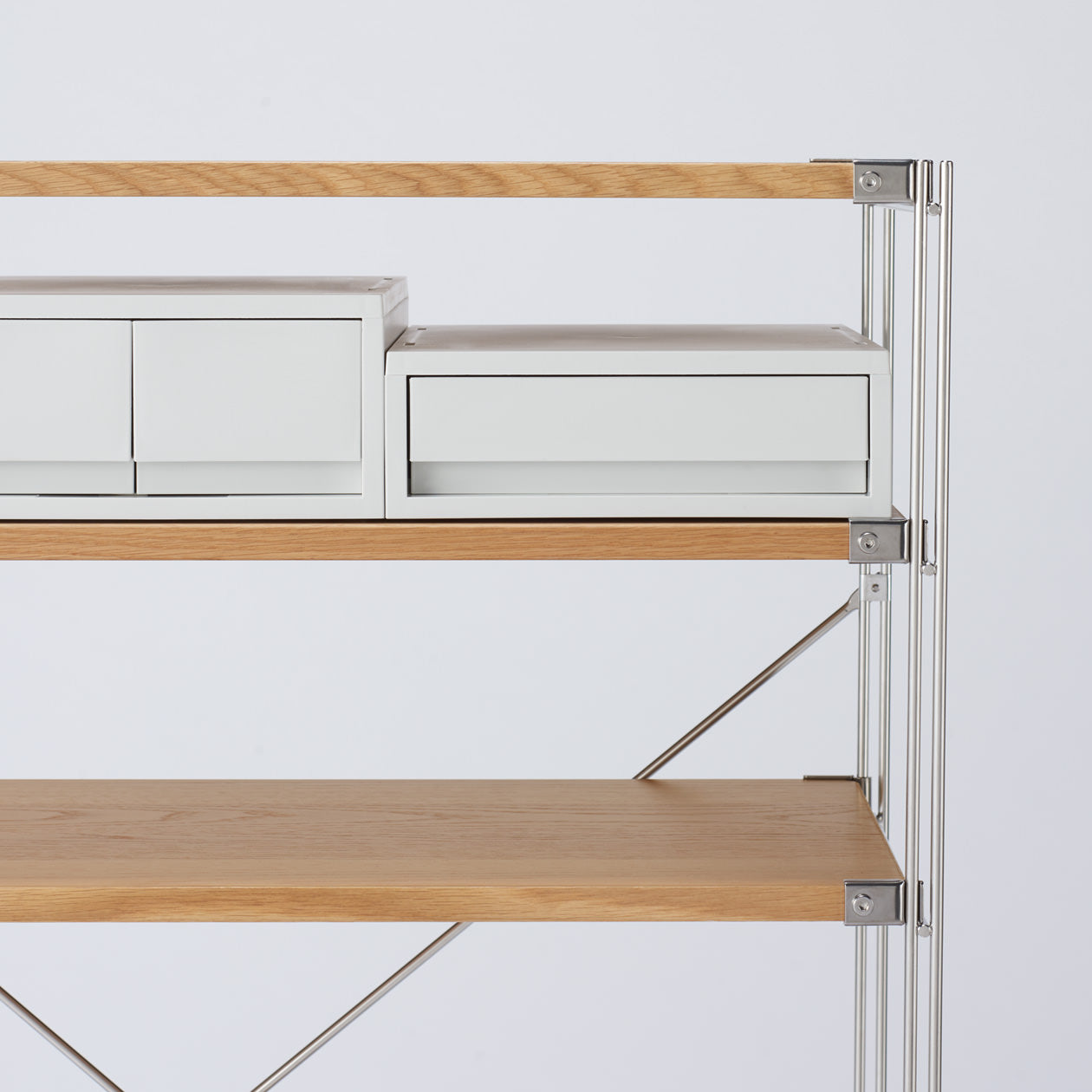 A storage case of a size suitable for storing small items and documents. It can be stacked and used. and the modules are combined. so it fits perfectly on a MUJI unit shelf.