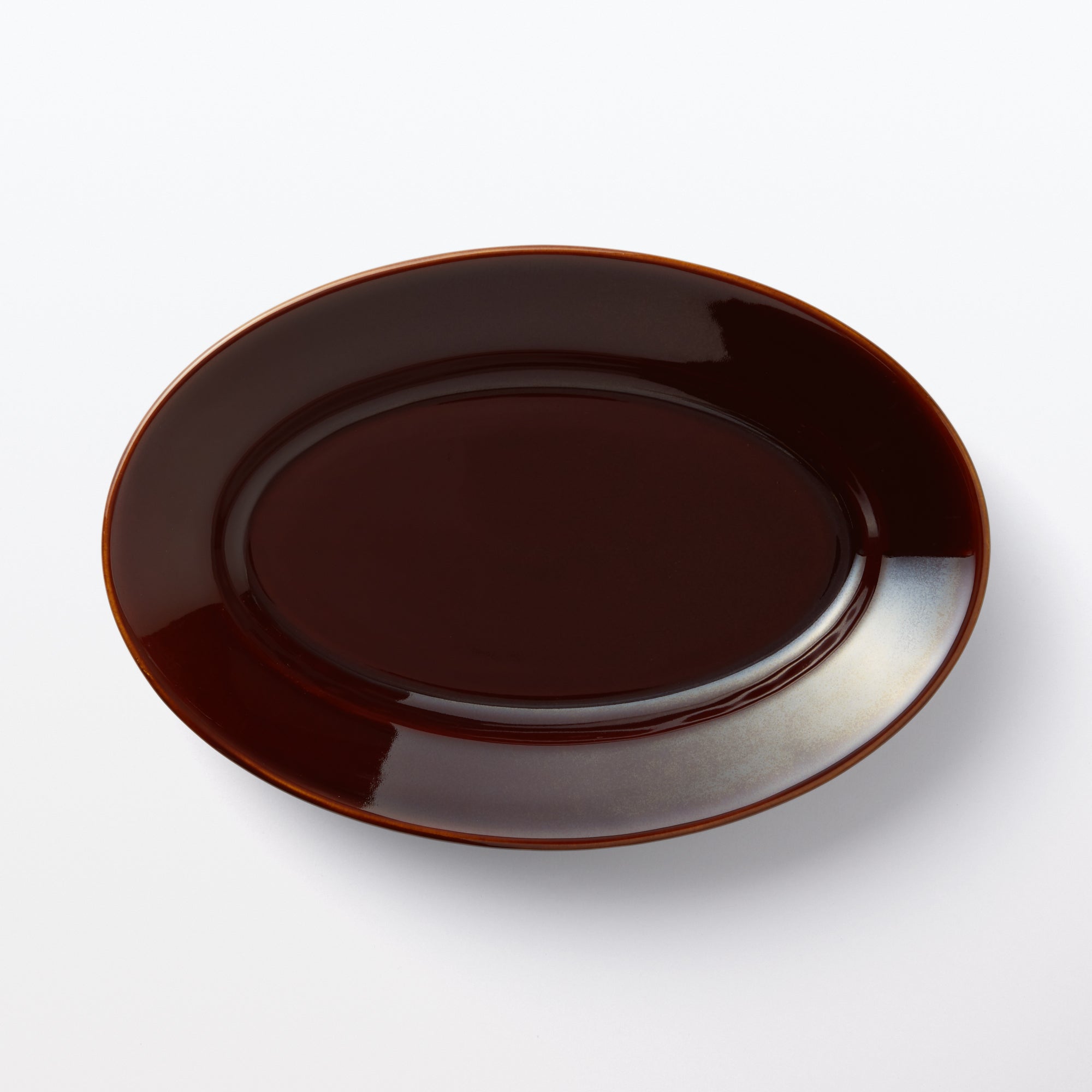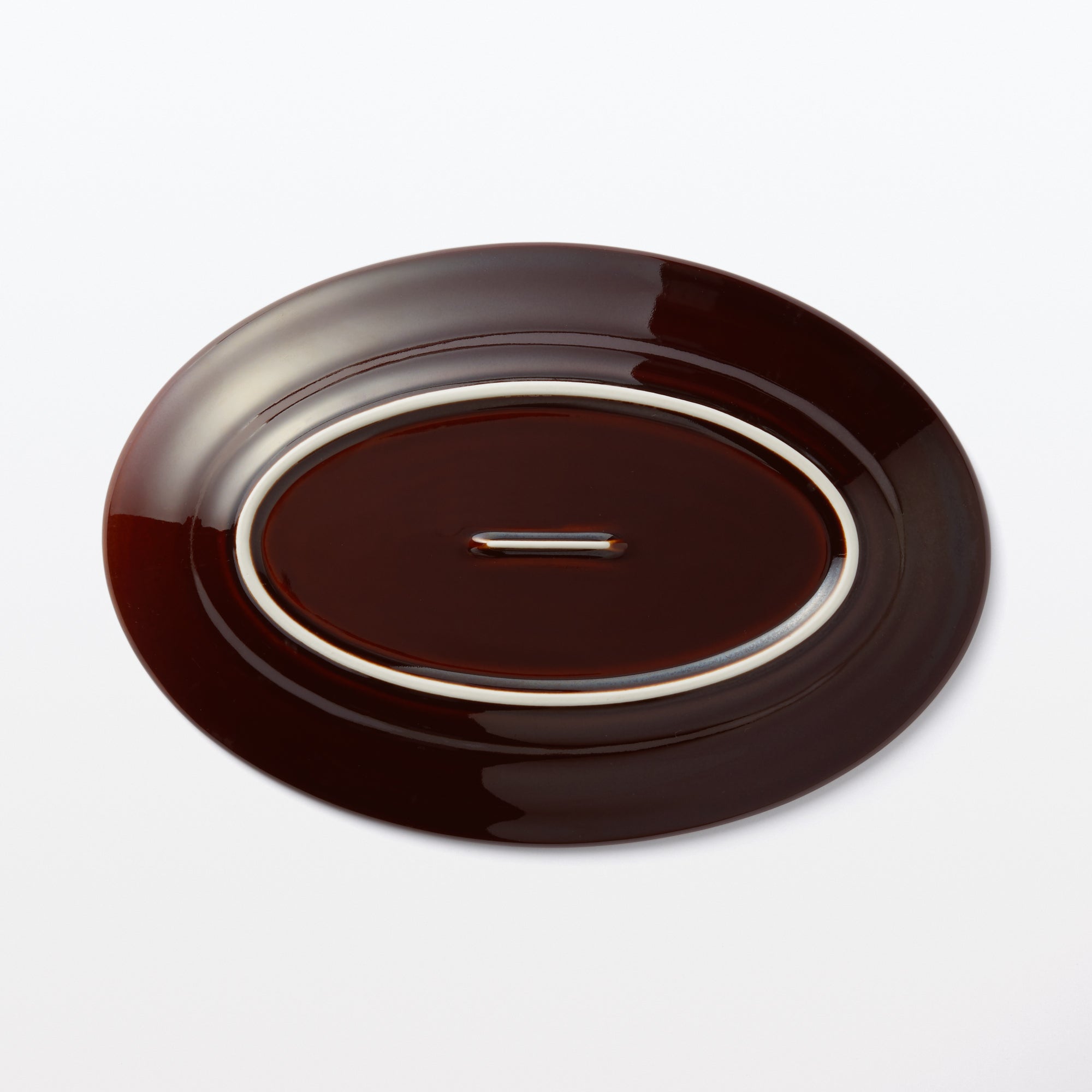 Porcelain Rimmed Oval Plate Large – Brown Glaze