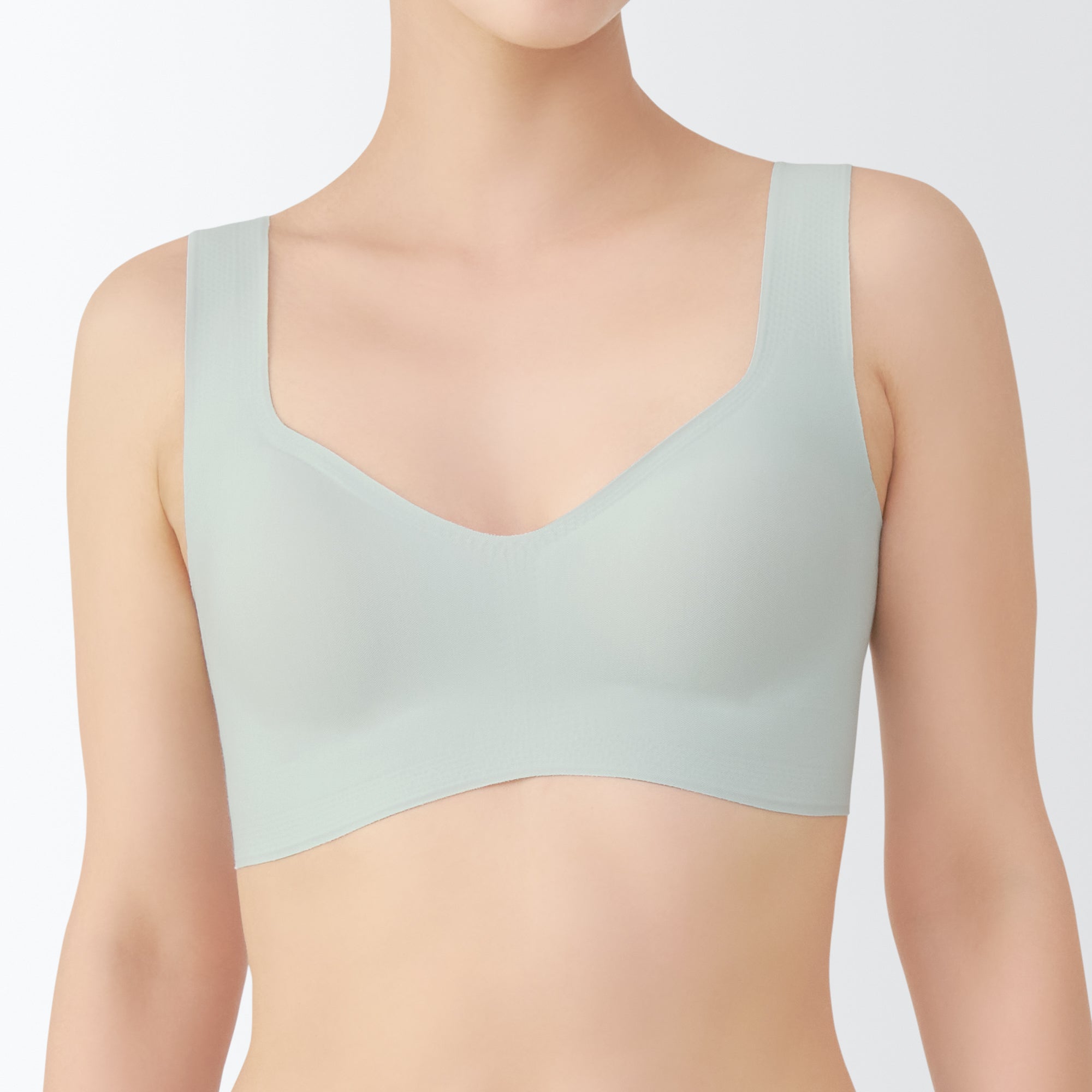 Designed with a completely seamless construction. this bra uses adhesive instead of stitching for a smooth finish that won’t show through clothing. Its stretchy material moves with you and it doesn’t have wires. ensuring comfort all day long. The cups can be inserted and removed for washing. and the position can be adjusted comfortably.
