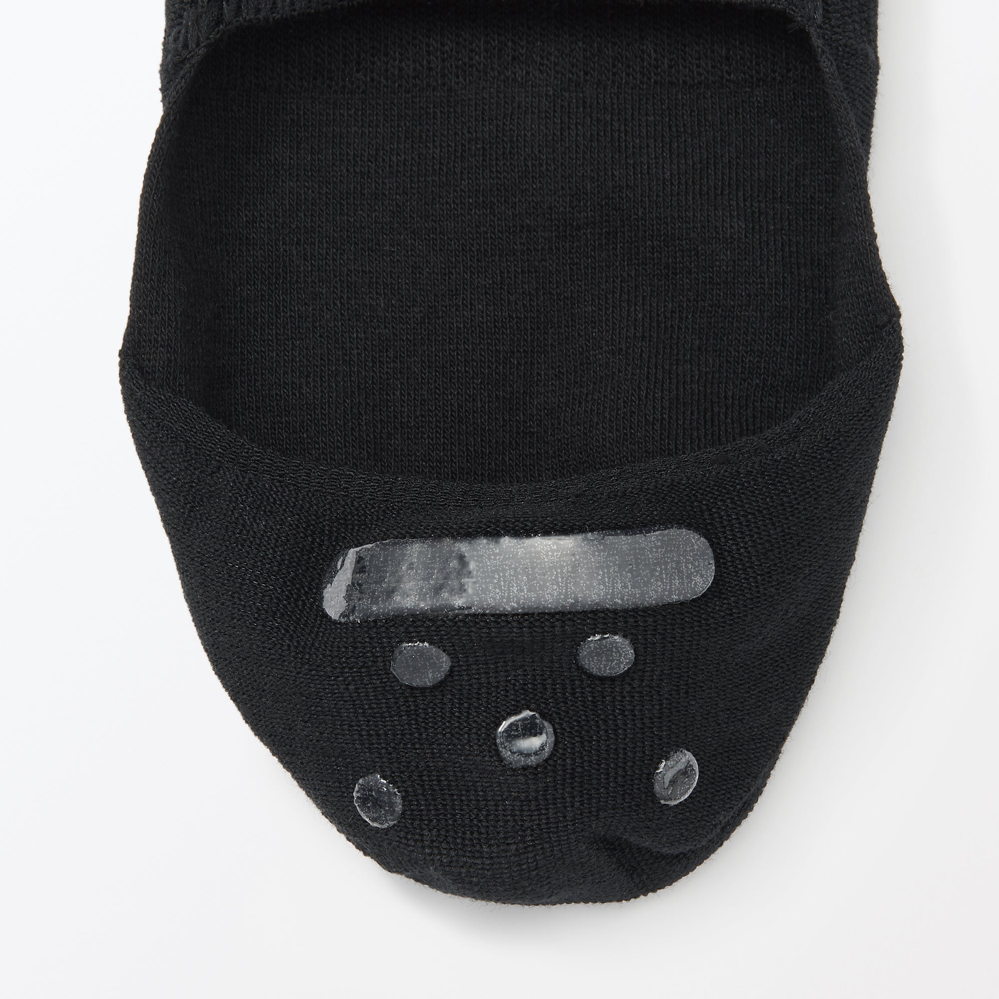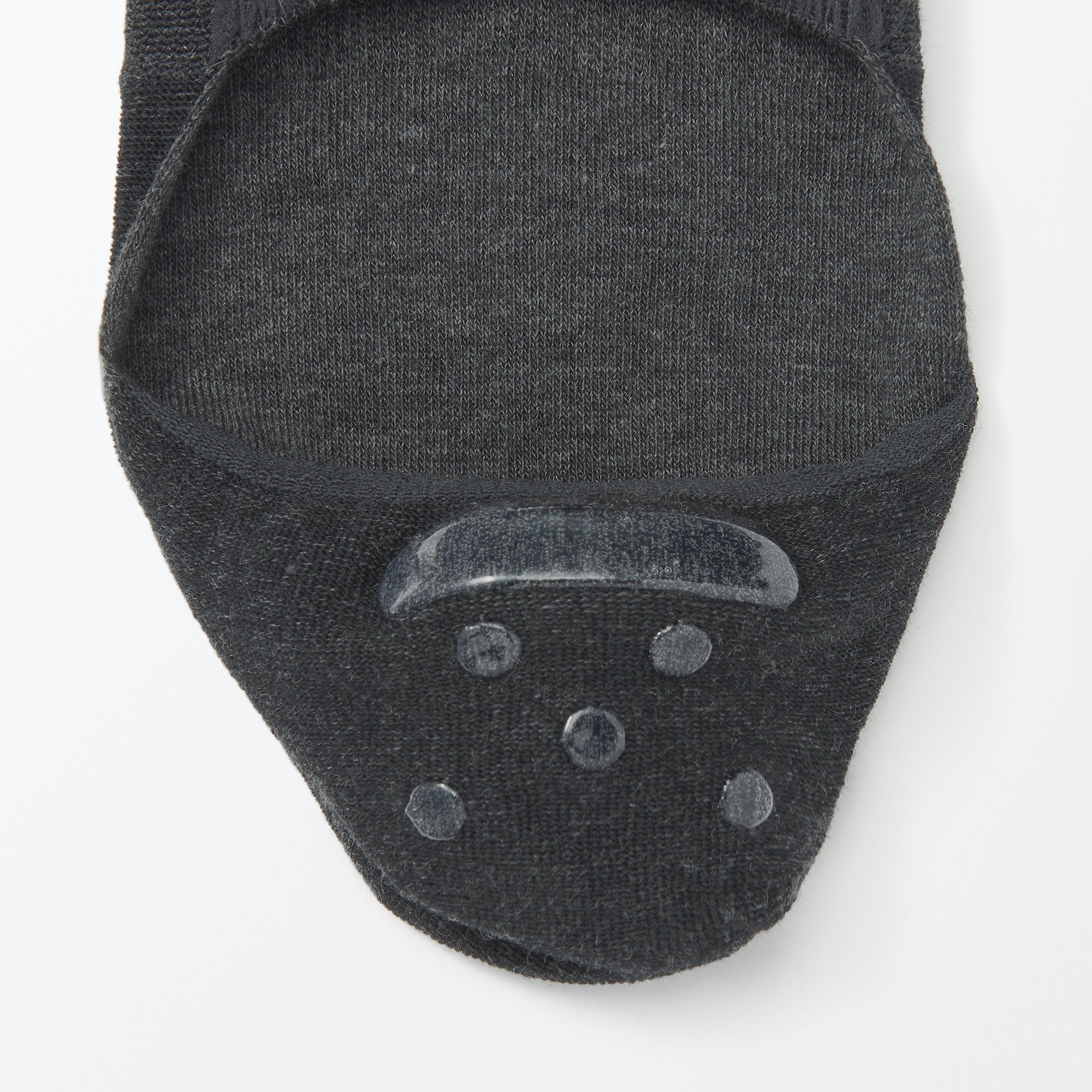 No-show sneaker socks with silicone heel grips that prevent them from sliding down. The seam line on the toes are stitched flat to prevent discomfort. and the reinforced threading at the toes and heel has a sweat deodorizing effect.