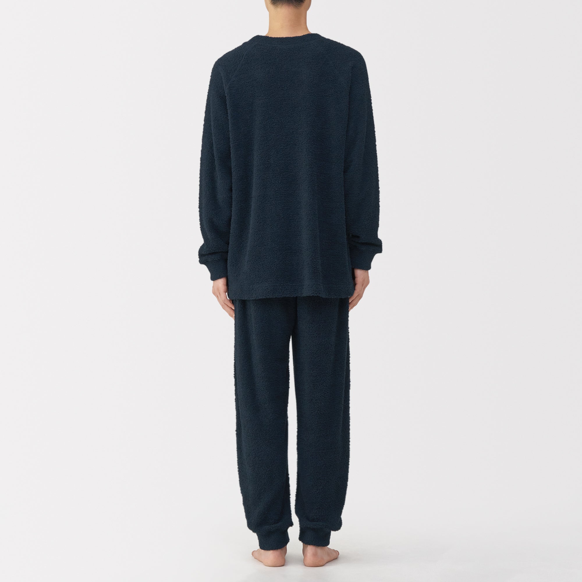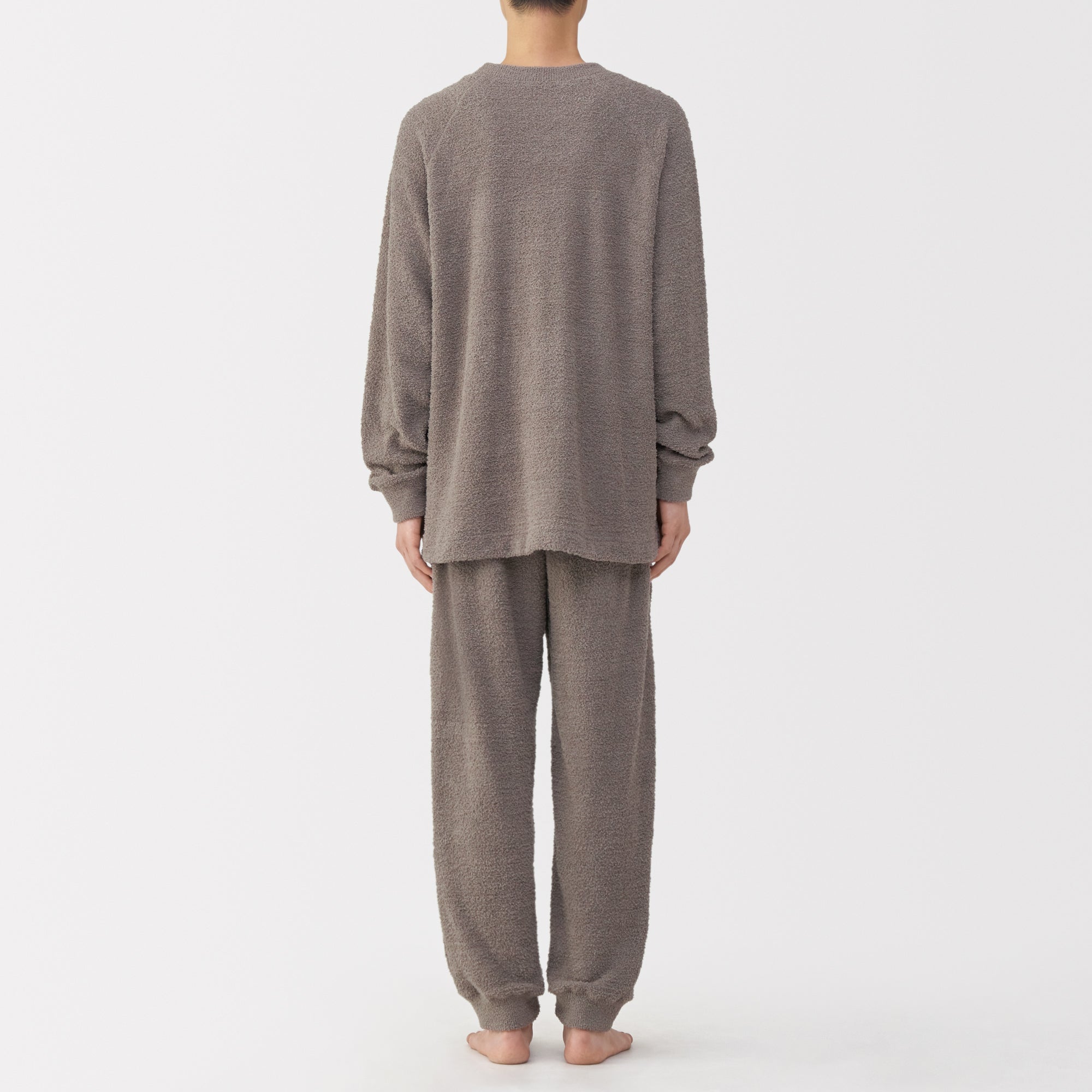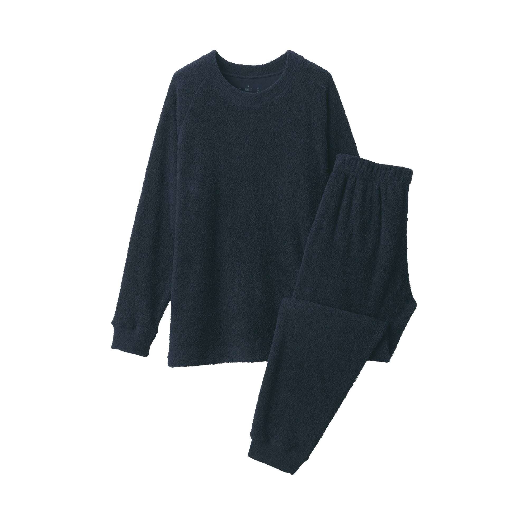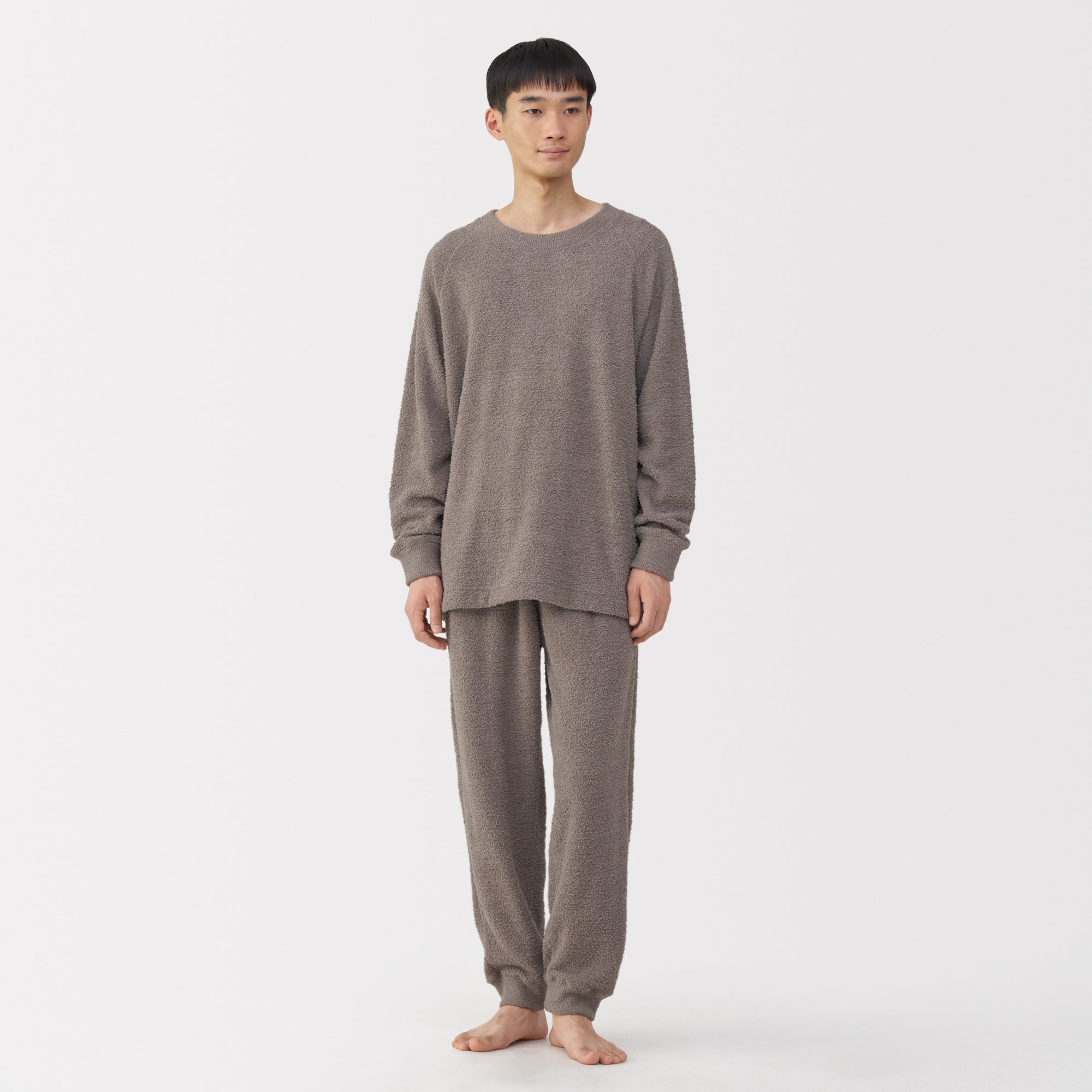 This men’s long-sleeved loungewear set is made with a blend of recycled fibers for a soft. sleek feeling against the skin. Its fluffy fleece texture will keep you warm and cozy while you lounge comfortably at home.