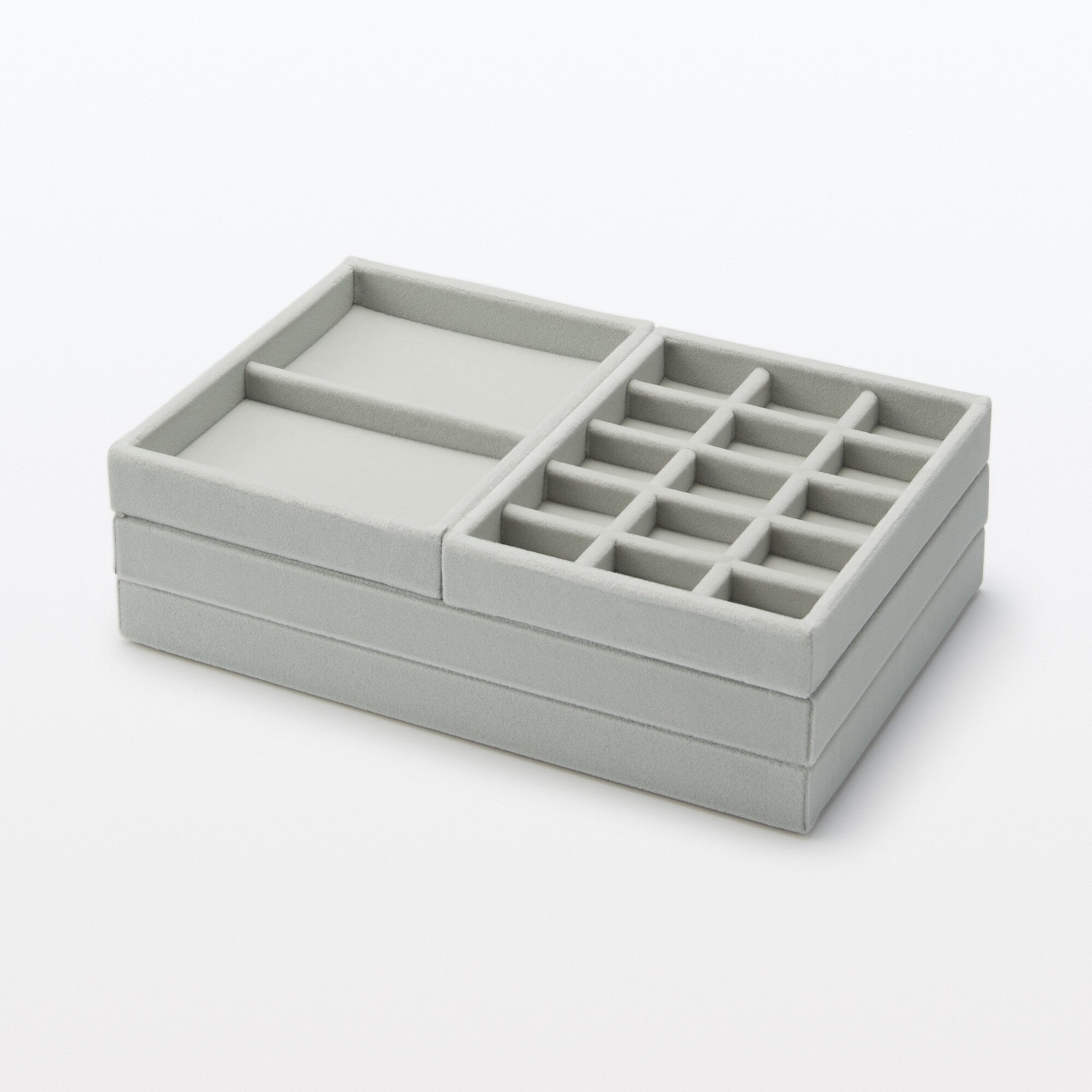 An insert made of soft velour fabric is suitable for acrylic drawer case. can be used to store jewelry.