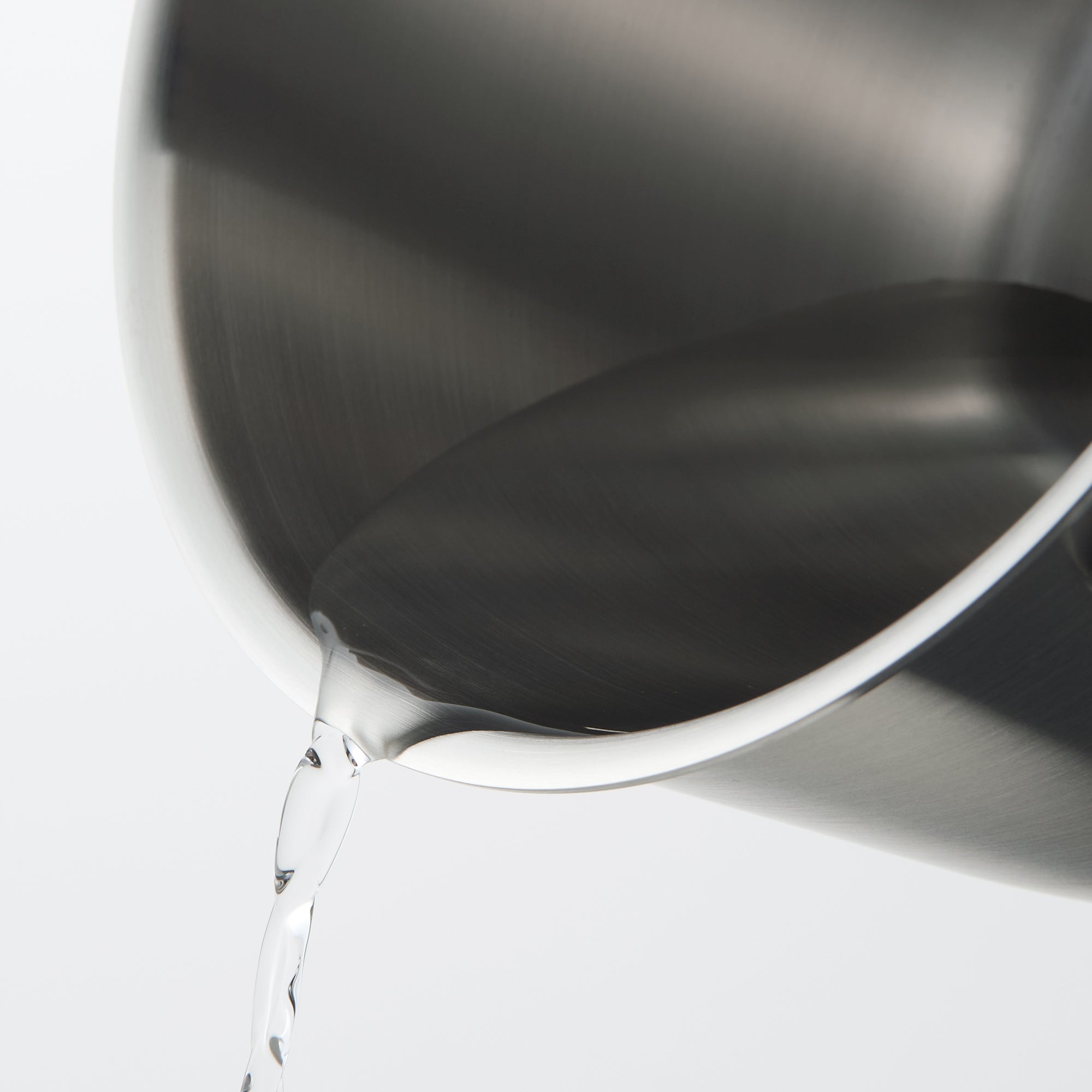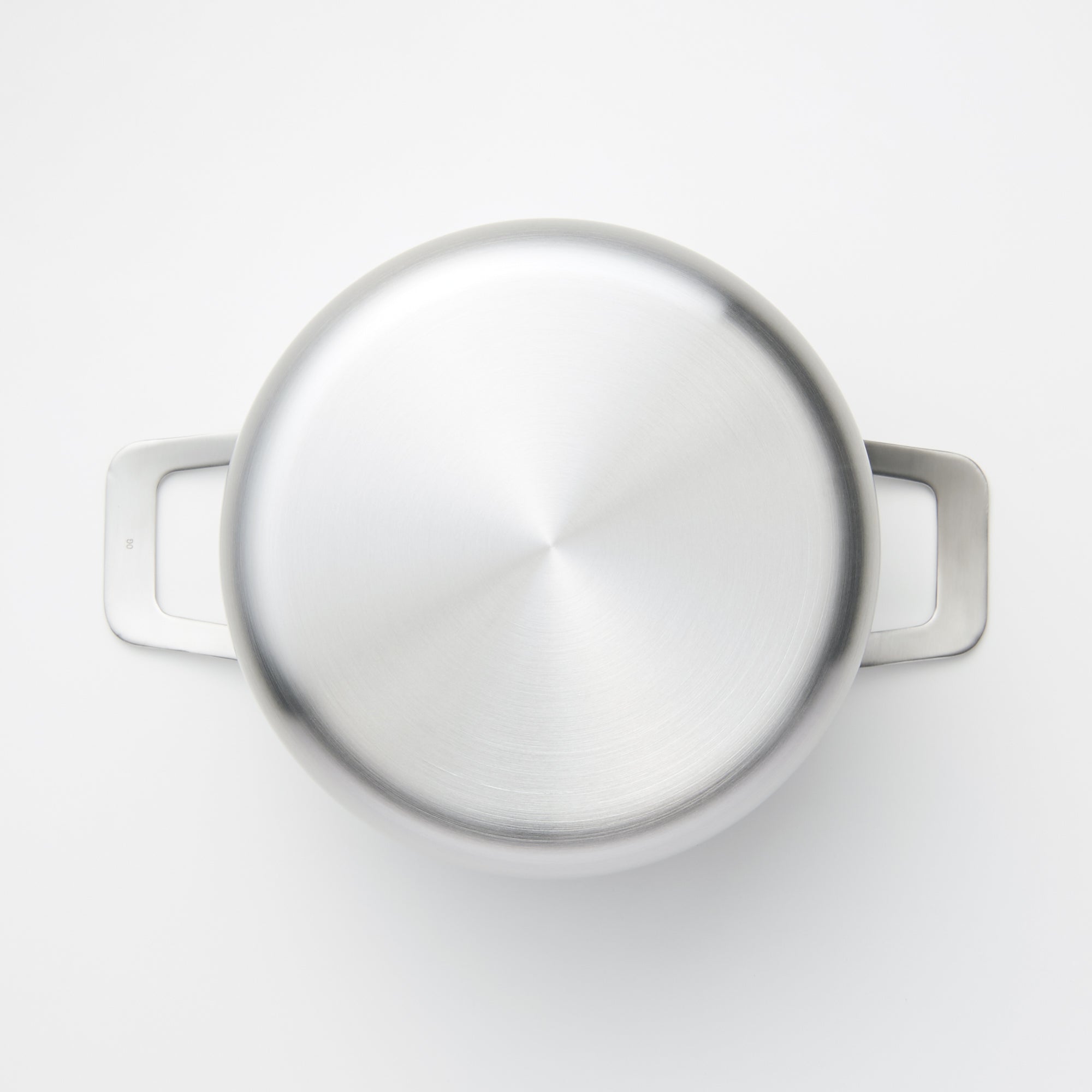 Constructed from 3 layers of steel with a layer of aluminum between two layers of rust-resistant 18-8 stainless steel. The handle is also made from stainless steel which makes this saucepot suitable for use in an oven. Lids are not included.