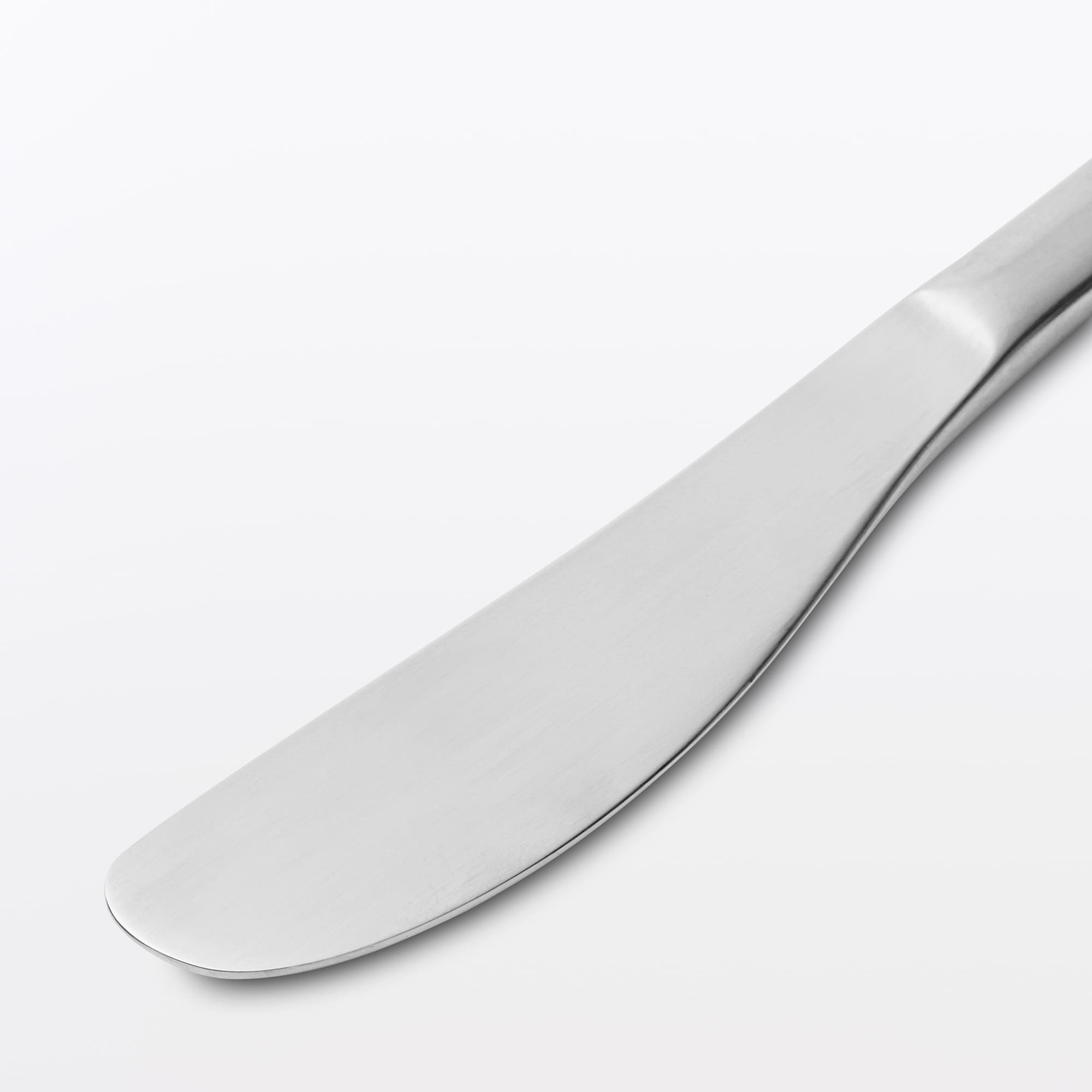 This stainless steel butter knife has a standard design that suits any type of cuisine. The handle length and curve angle have been carefully designed to make it easy to hold and use.