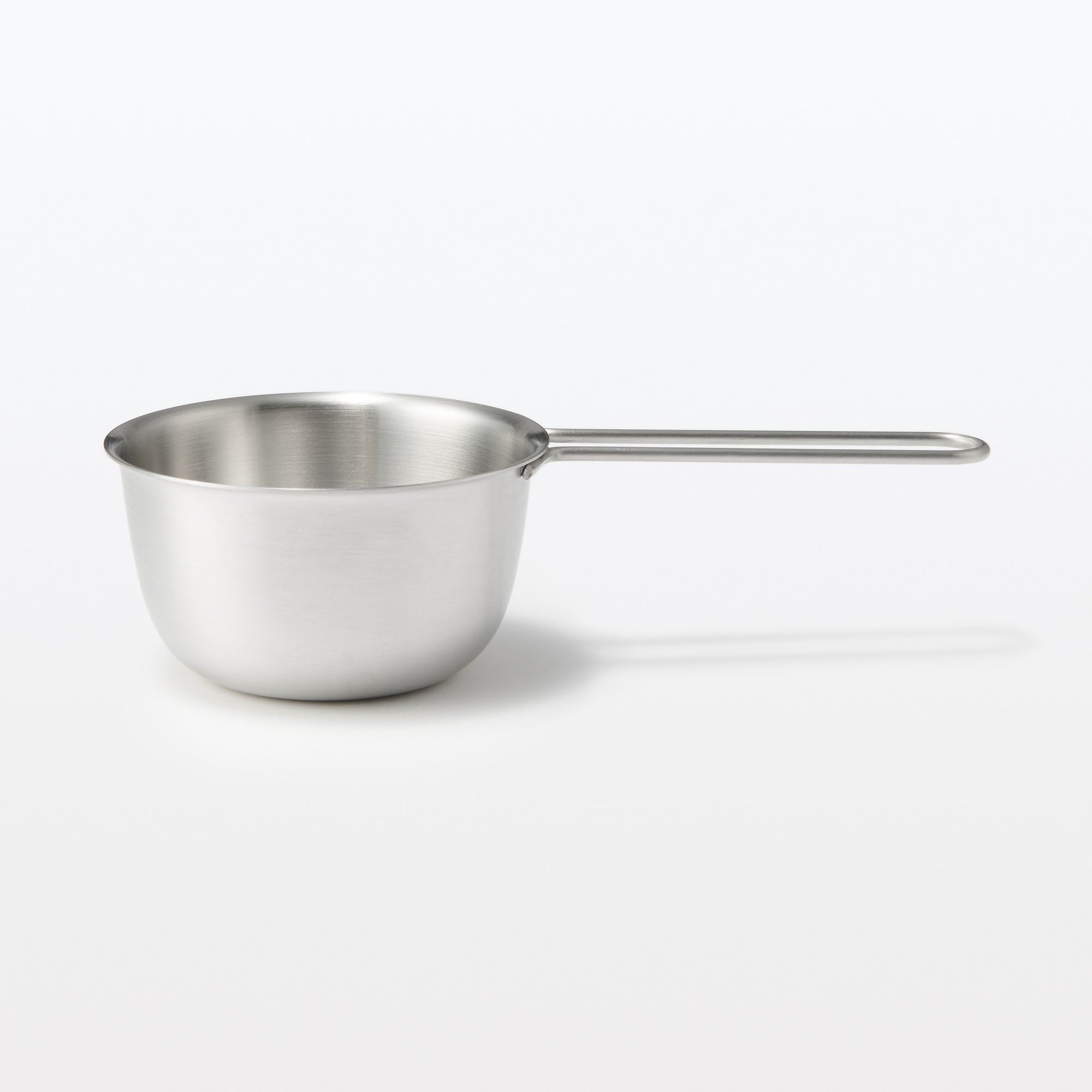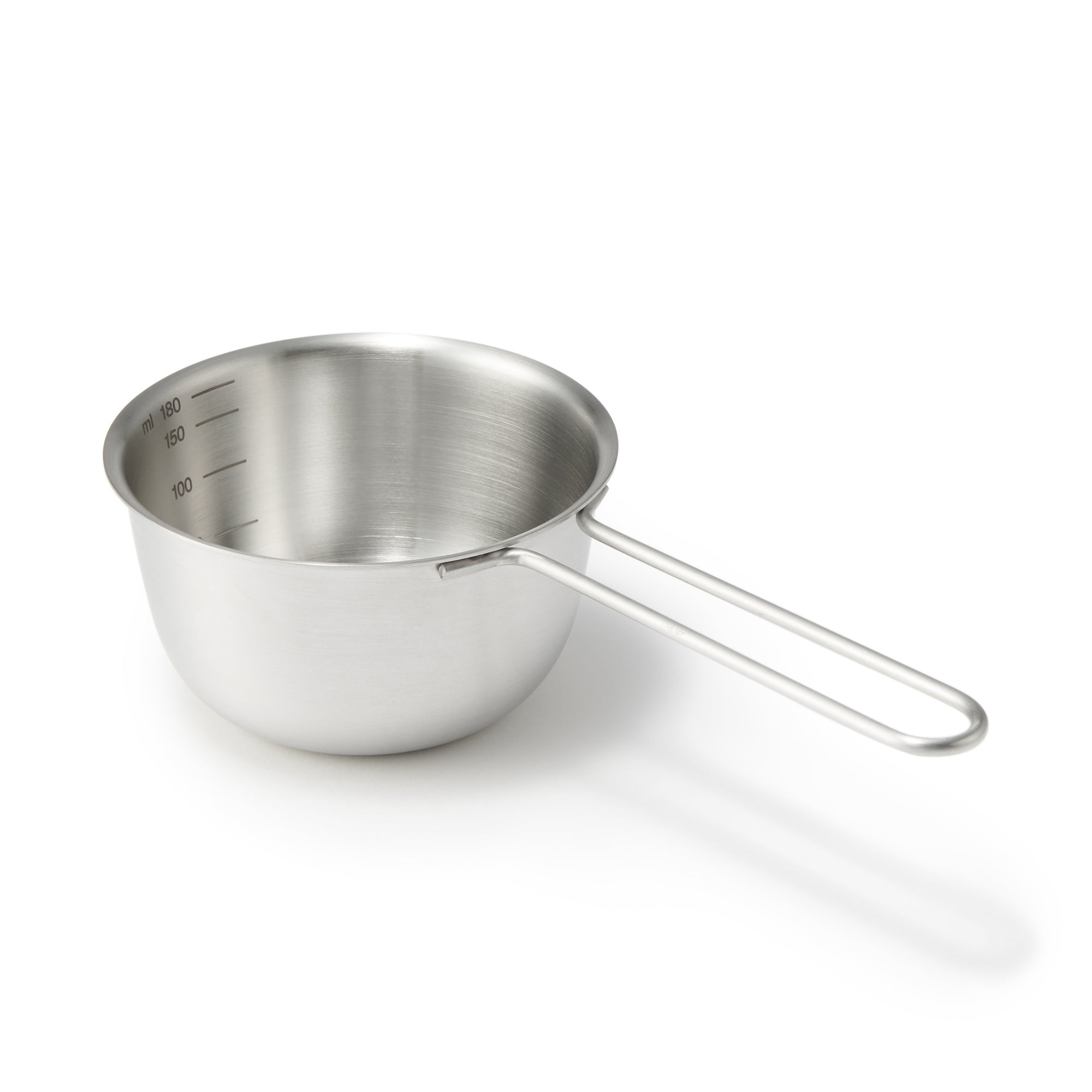 A simple measuring cup that can be used to pour from any side and has a built-in measurement marking lines for 1.69 fl oz (50 ml). 3.38 fl oz (100 ml). 5.07 fl oz (150 ml). and 6.09 fl oz (180 ml).