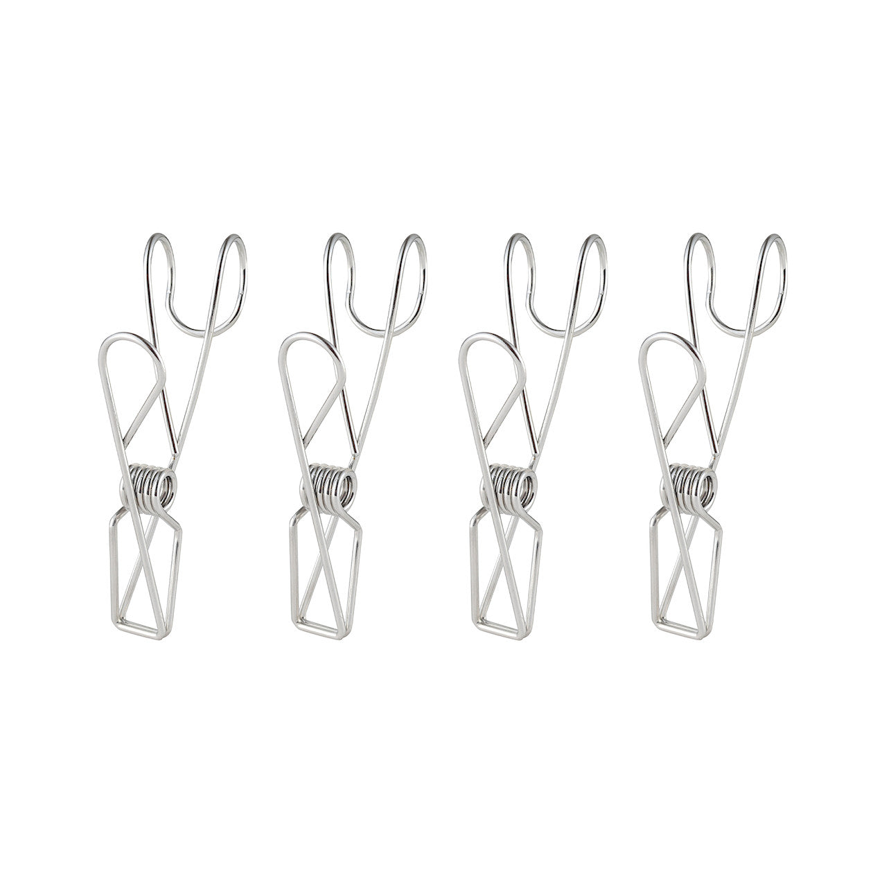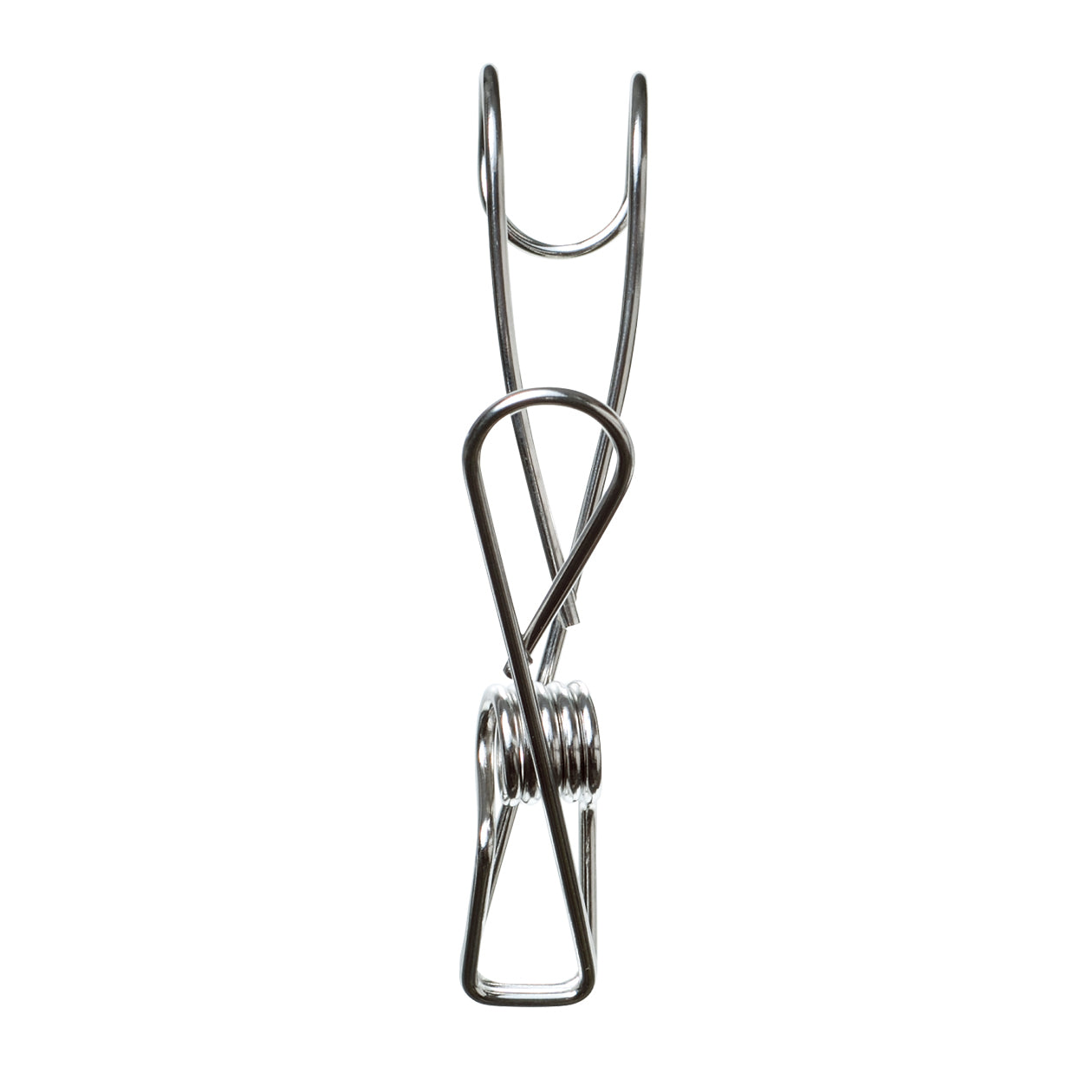 A clip made of rust-resistant 18-8 stainless steel that can be hung on a bar. Convenient for hanging recipe notes. dish towels. rubber gloves. etc. Comes in a set of 4 pieces.