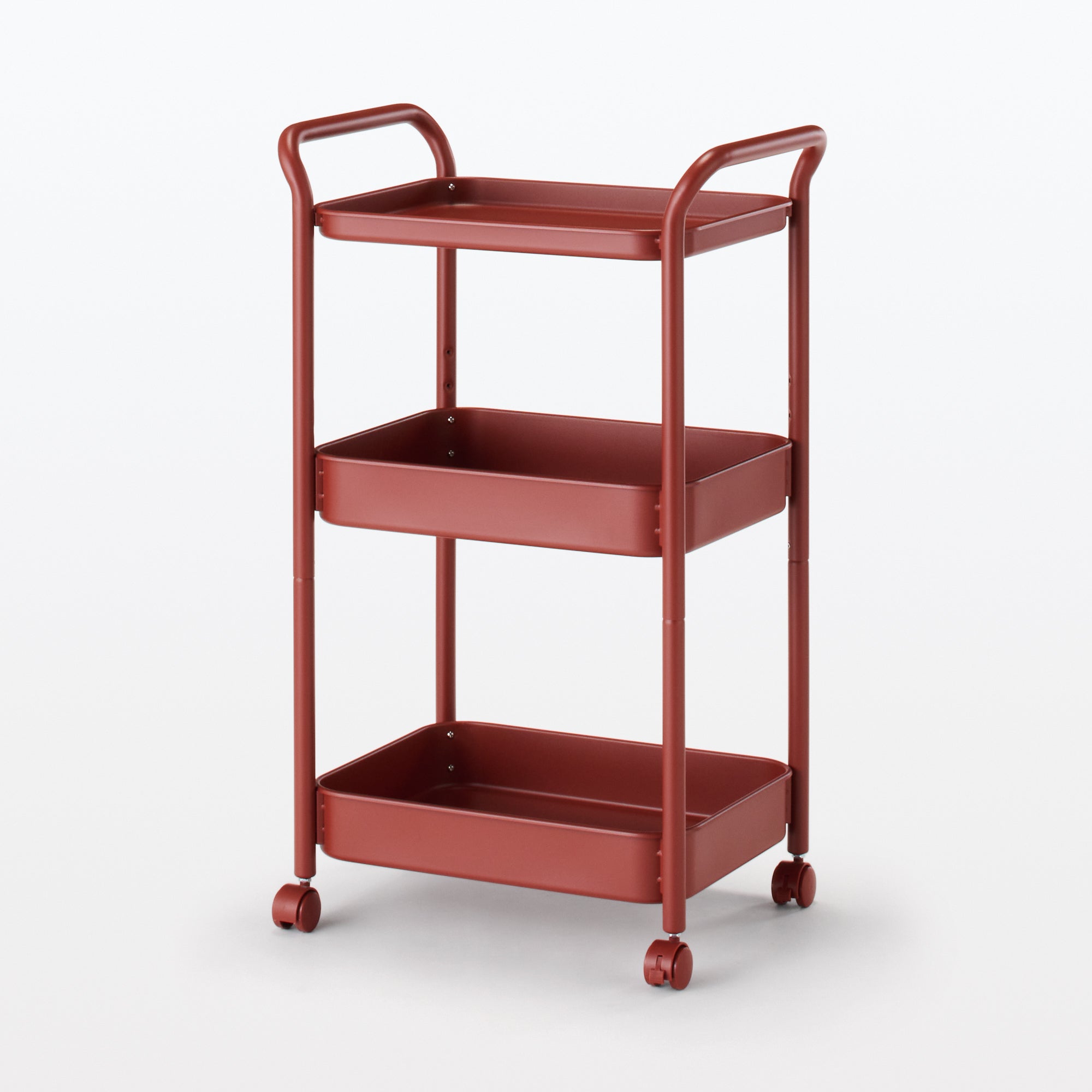 A simple wagon rack made using trays attached to a bent steel pipe. Recommended for use around the kitchen. desks. or storying children’s supplies. You can easily move it wherever you need it. so you can use it anywhere.