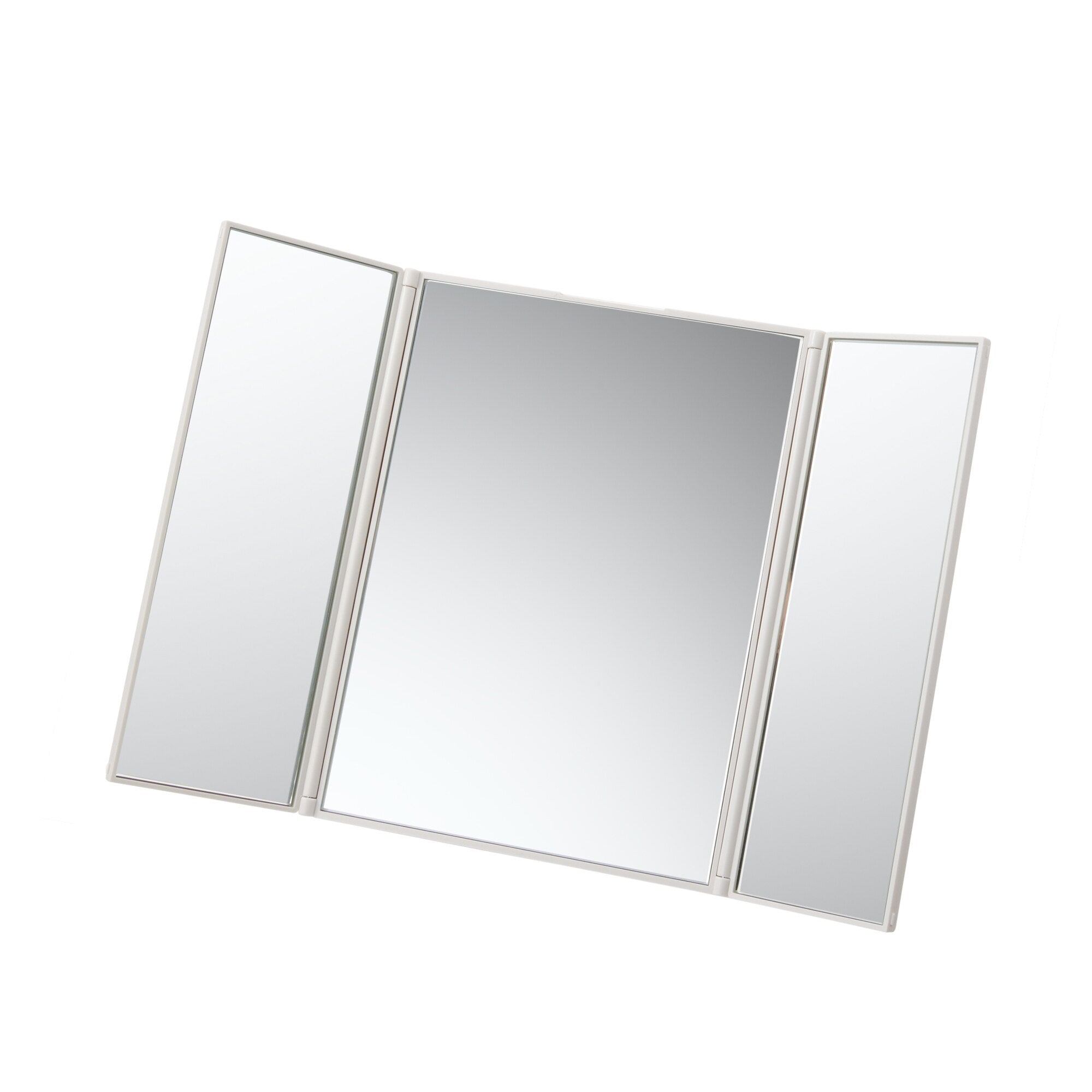 Perfect for applying makeup and skincare. this compact folding mirror has three panels for viewing multiple angles at once. It has a convenient adjustable stand built into the back. so it can be placed on a table or counter for easy hands-free use.