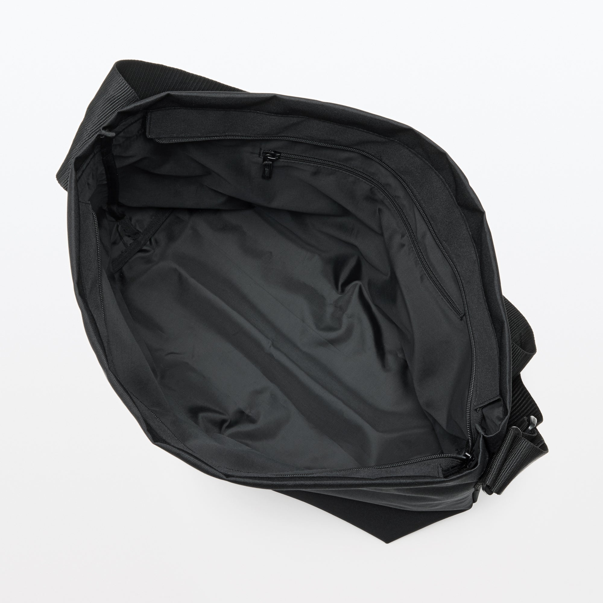 This water-resistant shoulder bag is large enough to carry all of your essentials. Versatile for any occasion. whether it’s for school. work. or travel. The interior has an extra zippered pocket. and the belt is adjustable for convenience. The strap is thick enough that it rests on your shoulders comfortably without digging in.