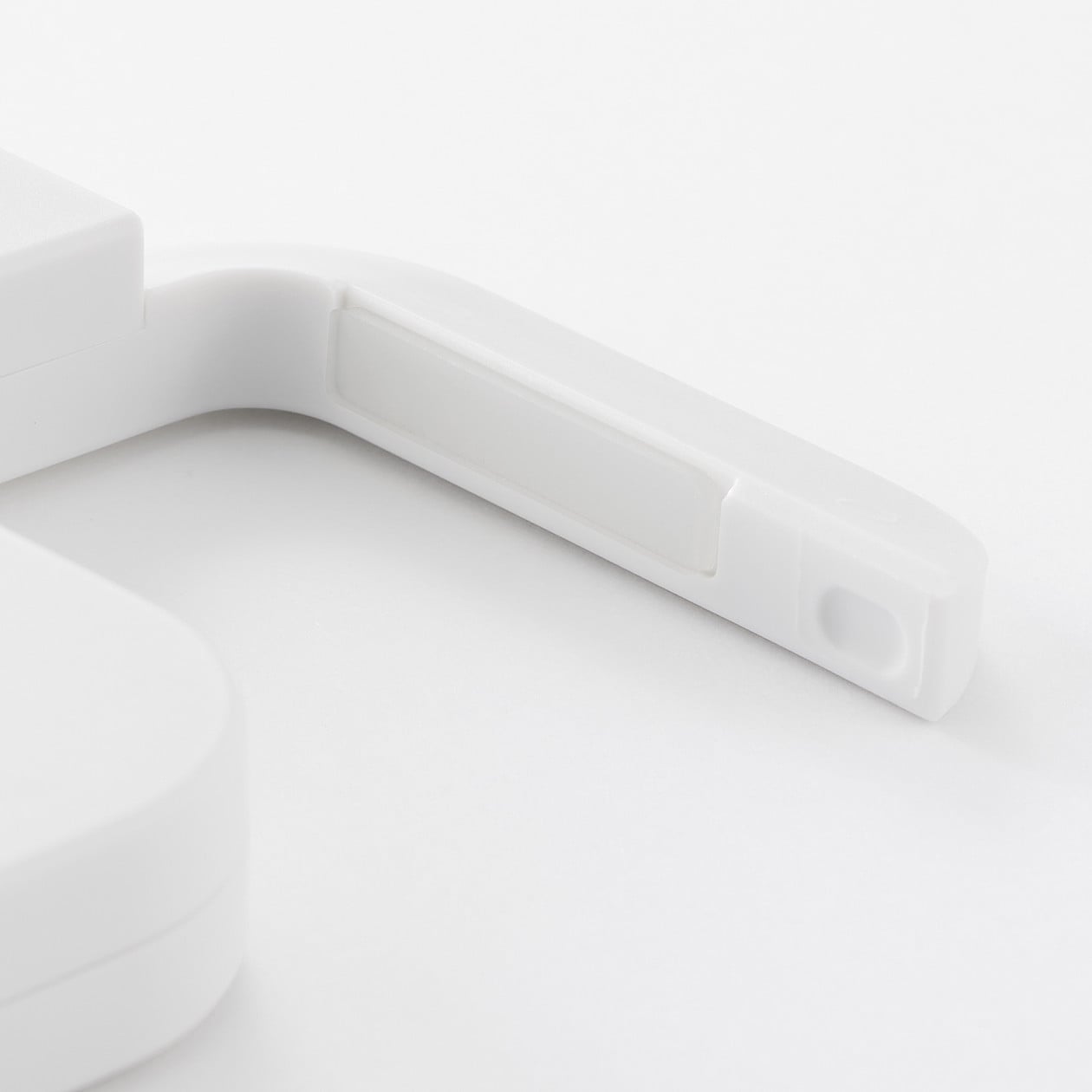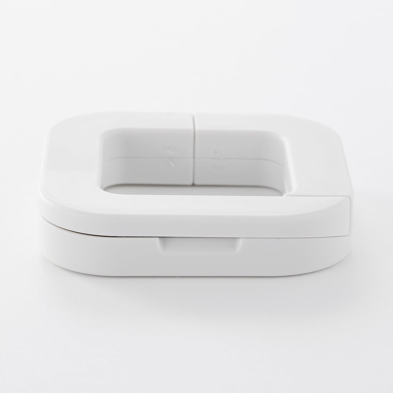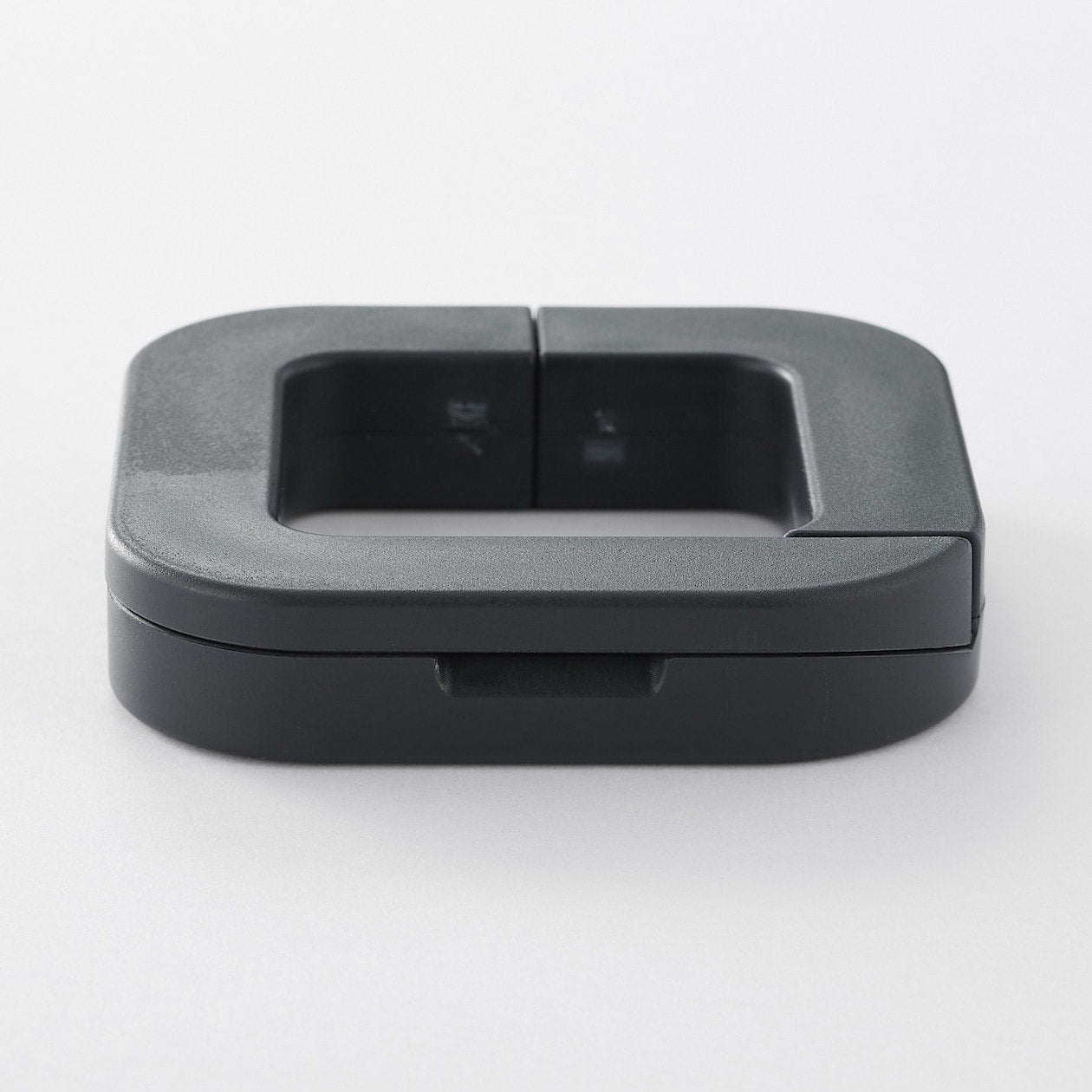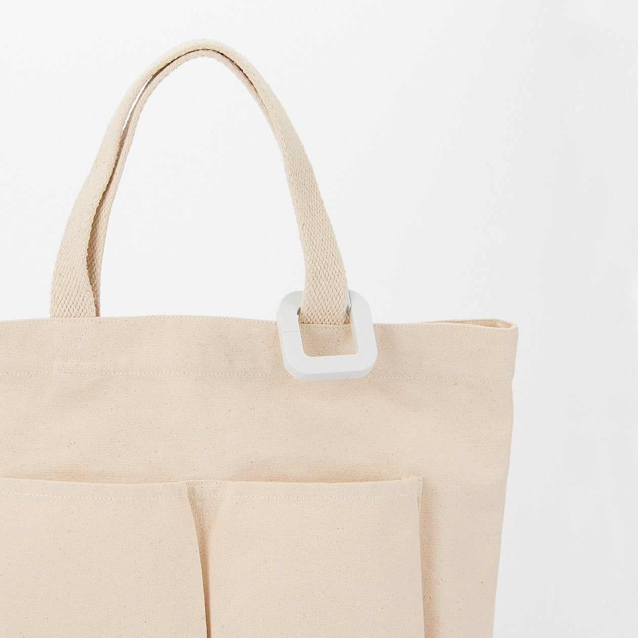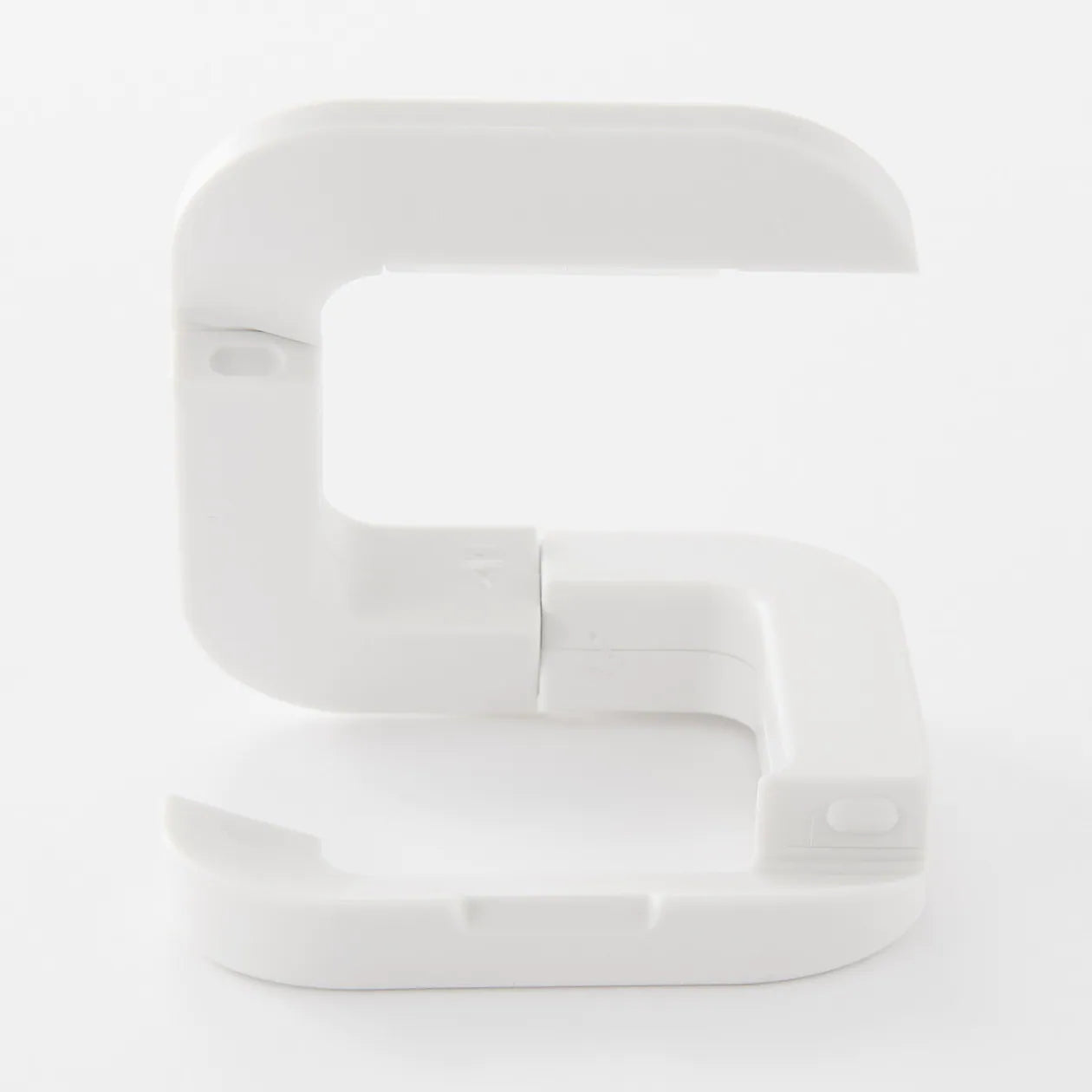 A foldable S-shaped hook. which is convenient for hanging bags on-the-go. and organizing small items such as pouches. The hook has anti-slip patches so you can use it to hang items off a tabletop without them falling.