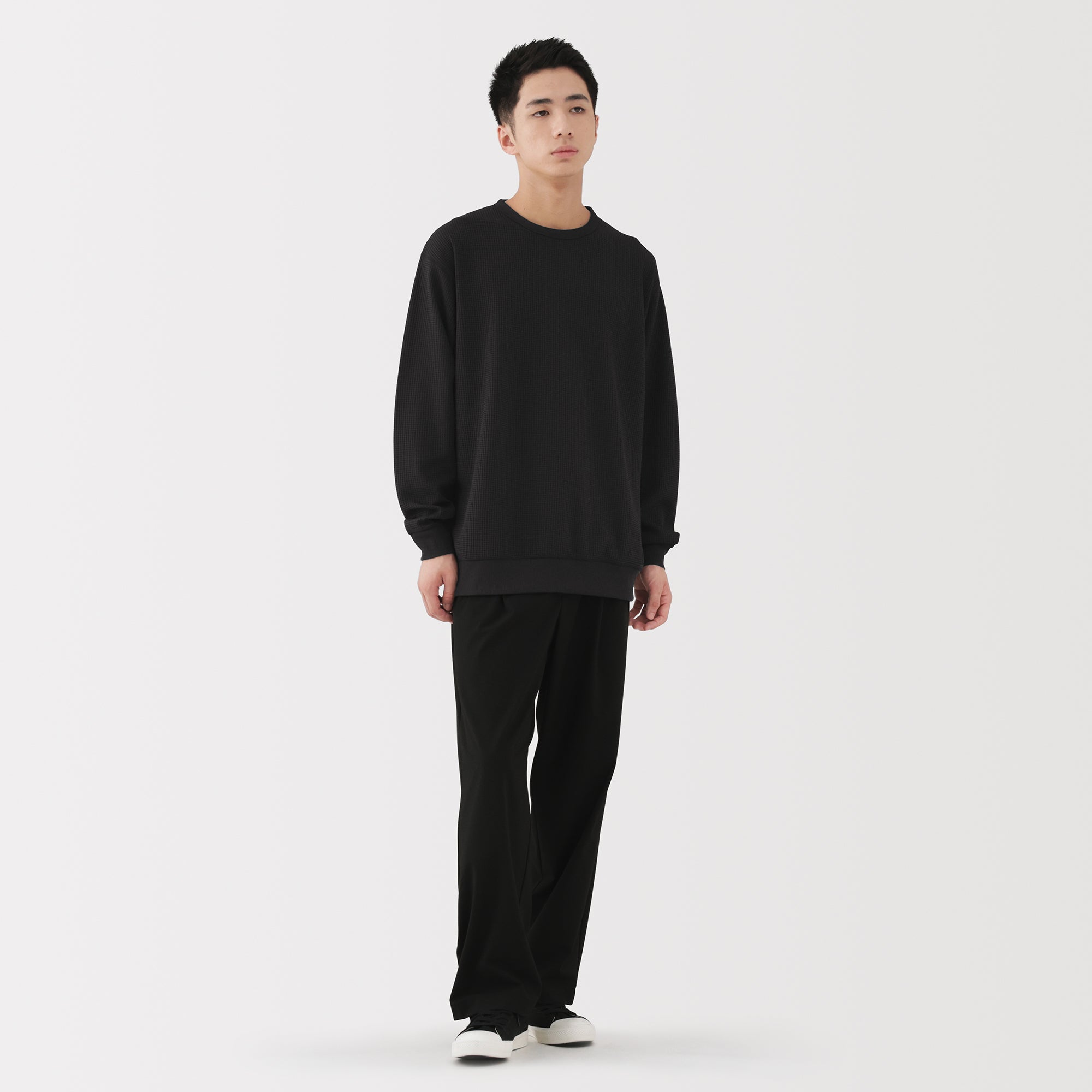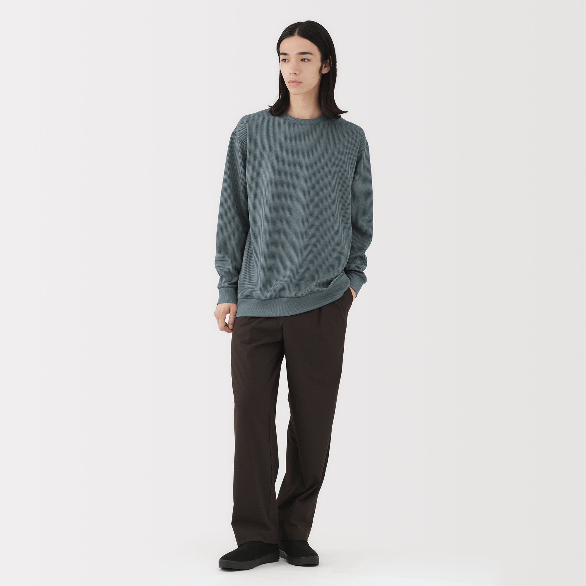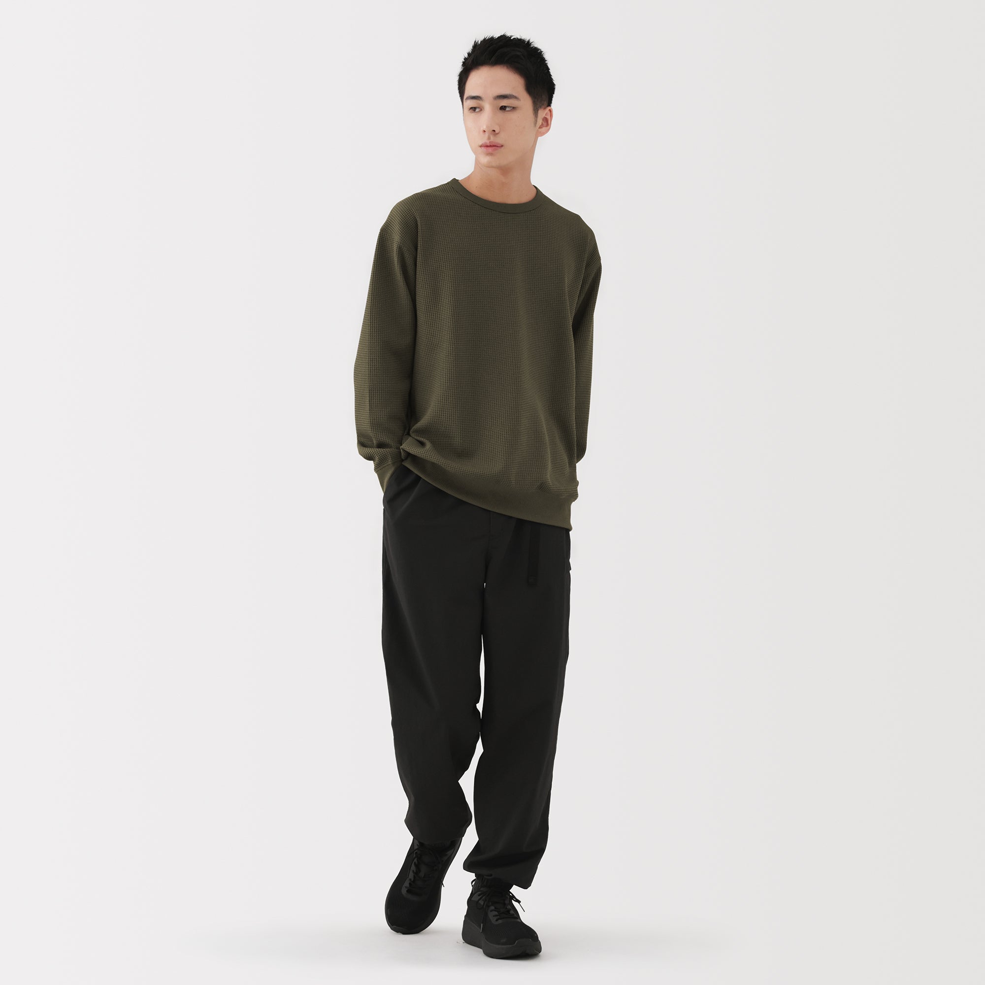 Men’s long sleeve crew neck T shirt crafted from thick waffle fabric. this shirt offers a comfortable and textured finish that’s perfect for both casual wear and active pursuits. The quick-dry feature ensures you stay fresh and dry. while built-in UV protection shields you from harmful sun rays.
