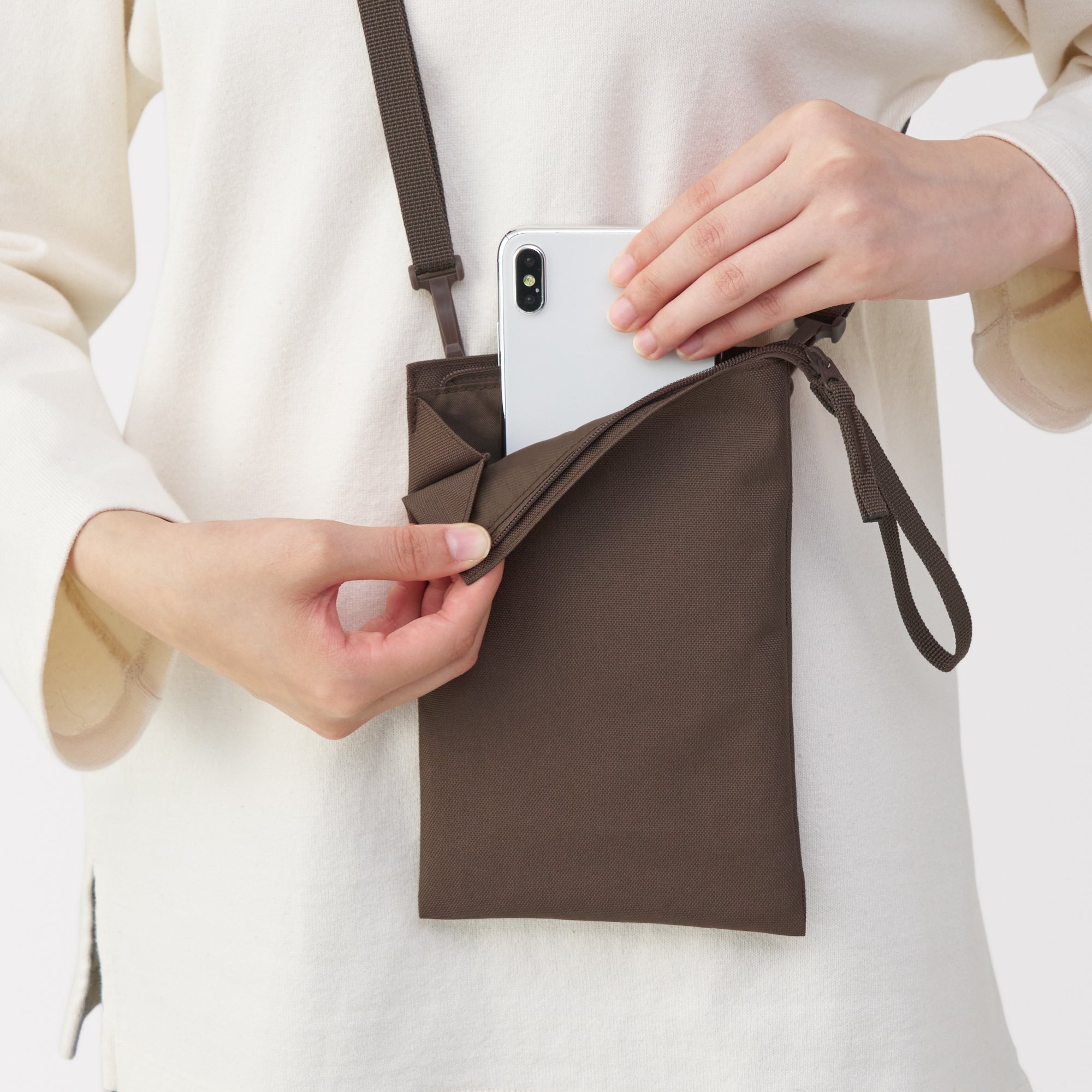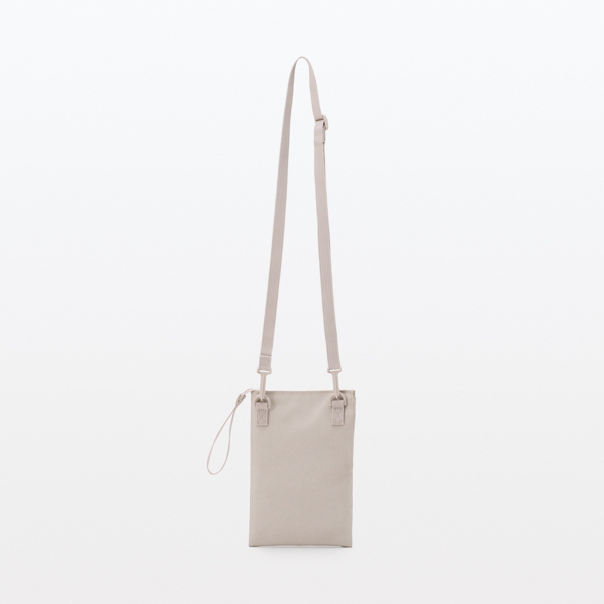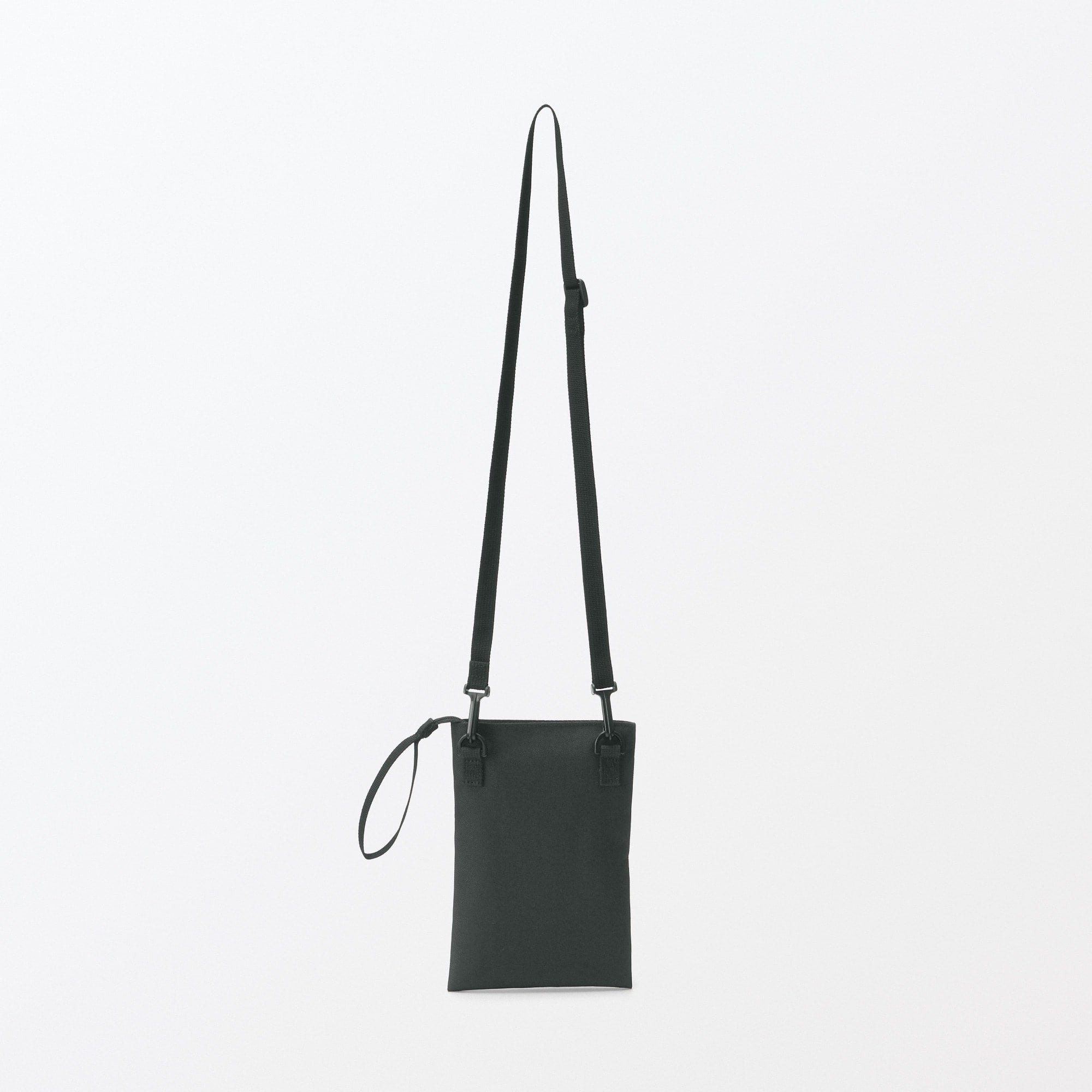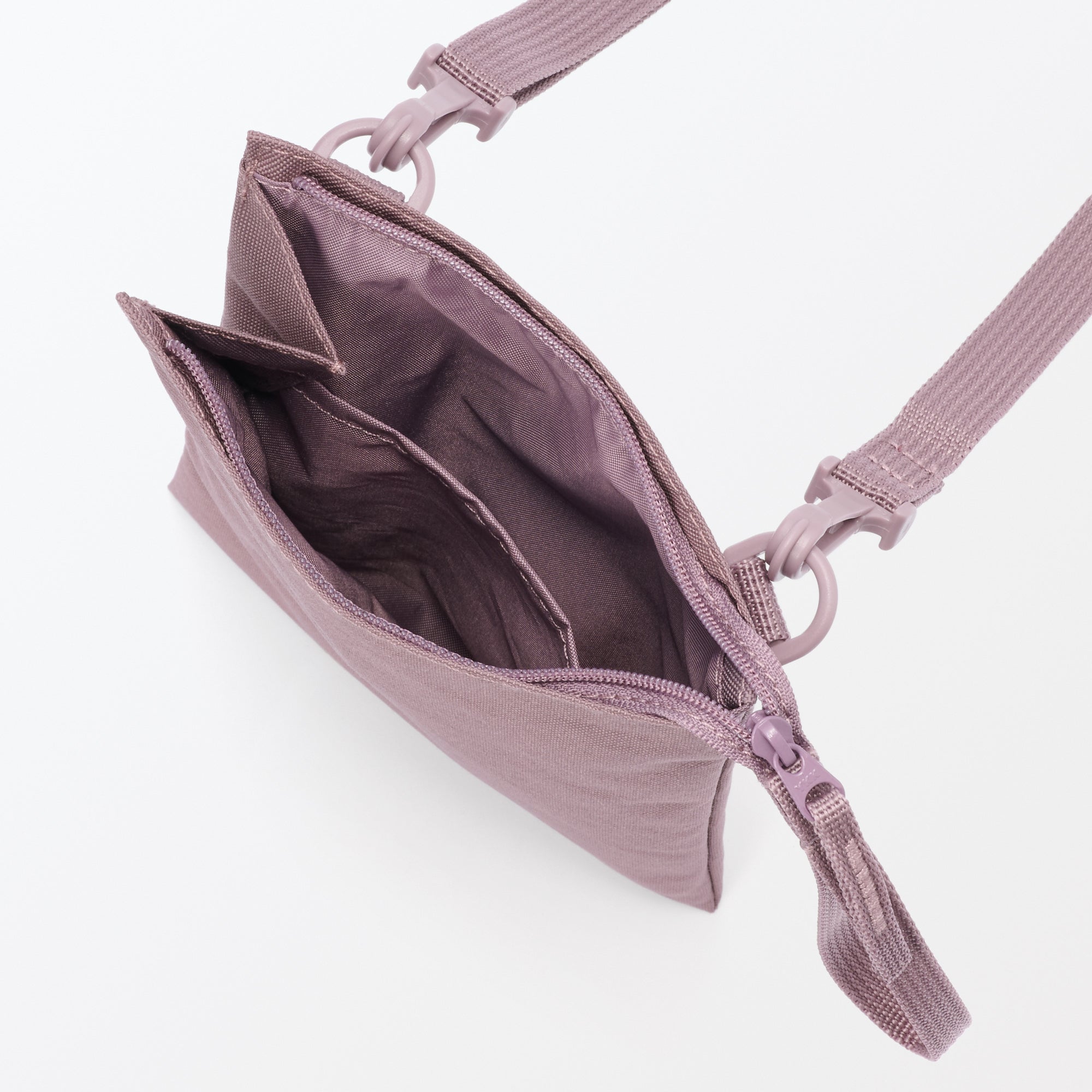 This compact. shoulder-slung pouch is the perfect size to hold all of your daily necessities for quick outings. Made from recycled polyester. it has a water repellent coating to protect your belongings. There is an interior divider to help keep its contents organized and easy to find.