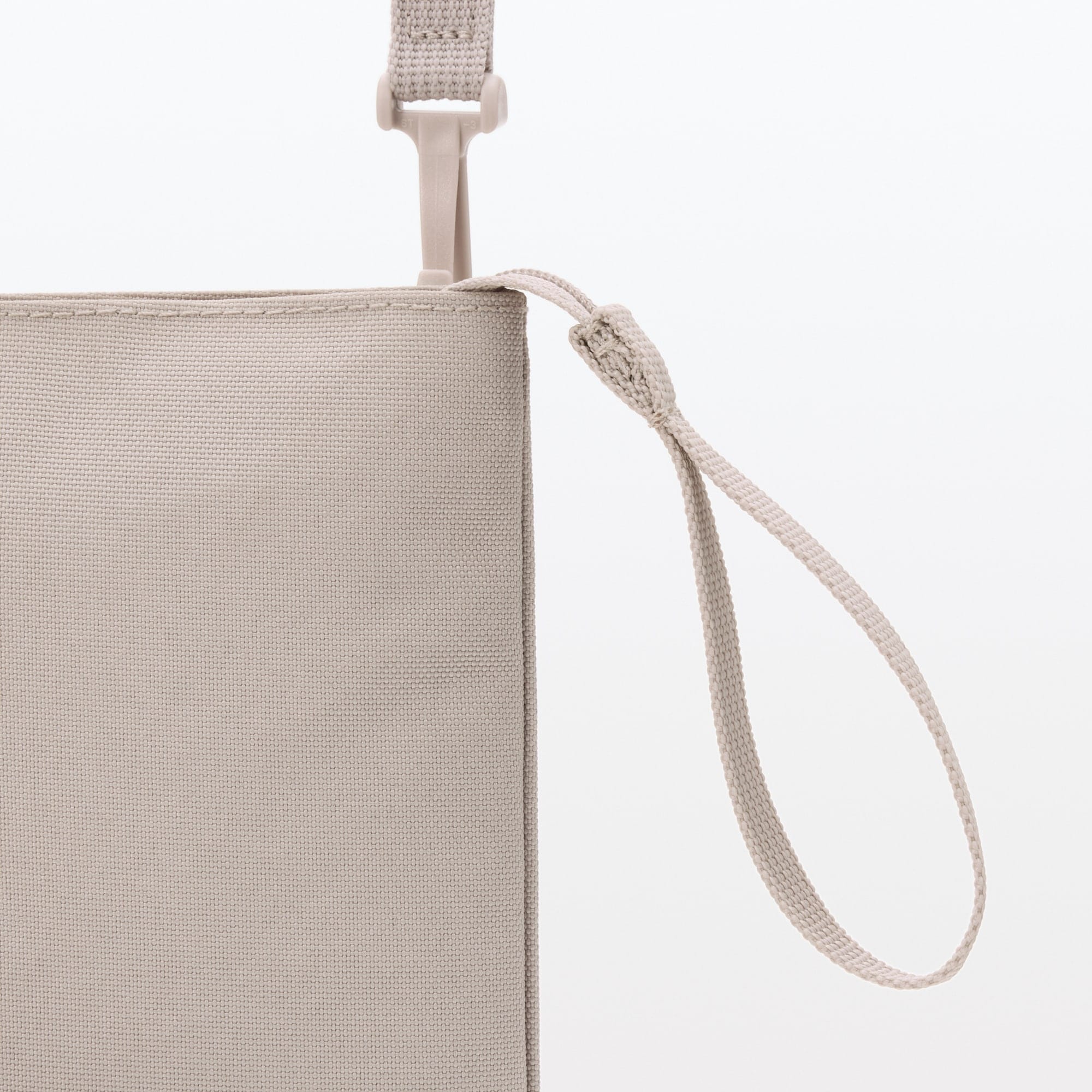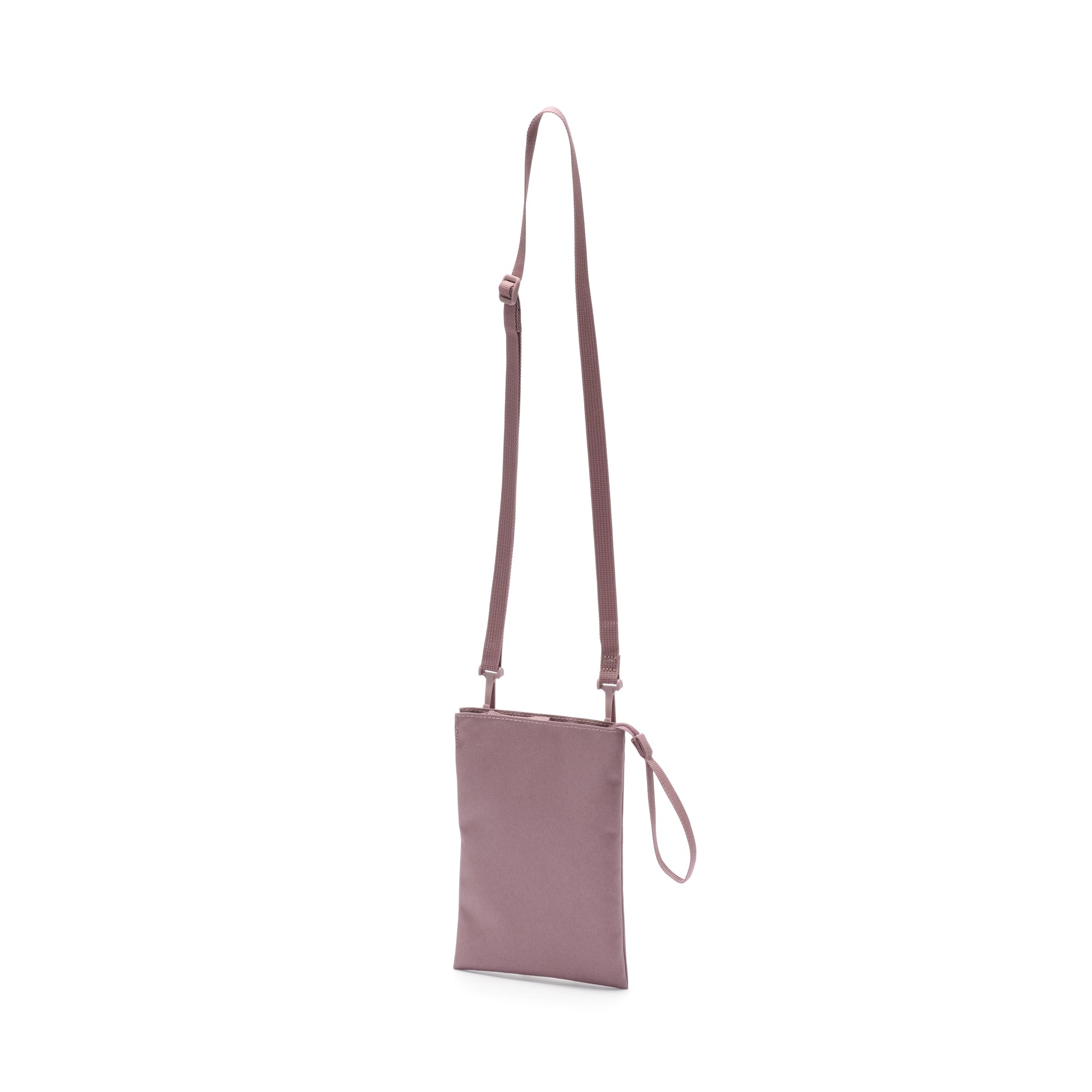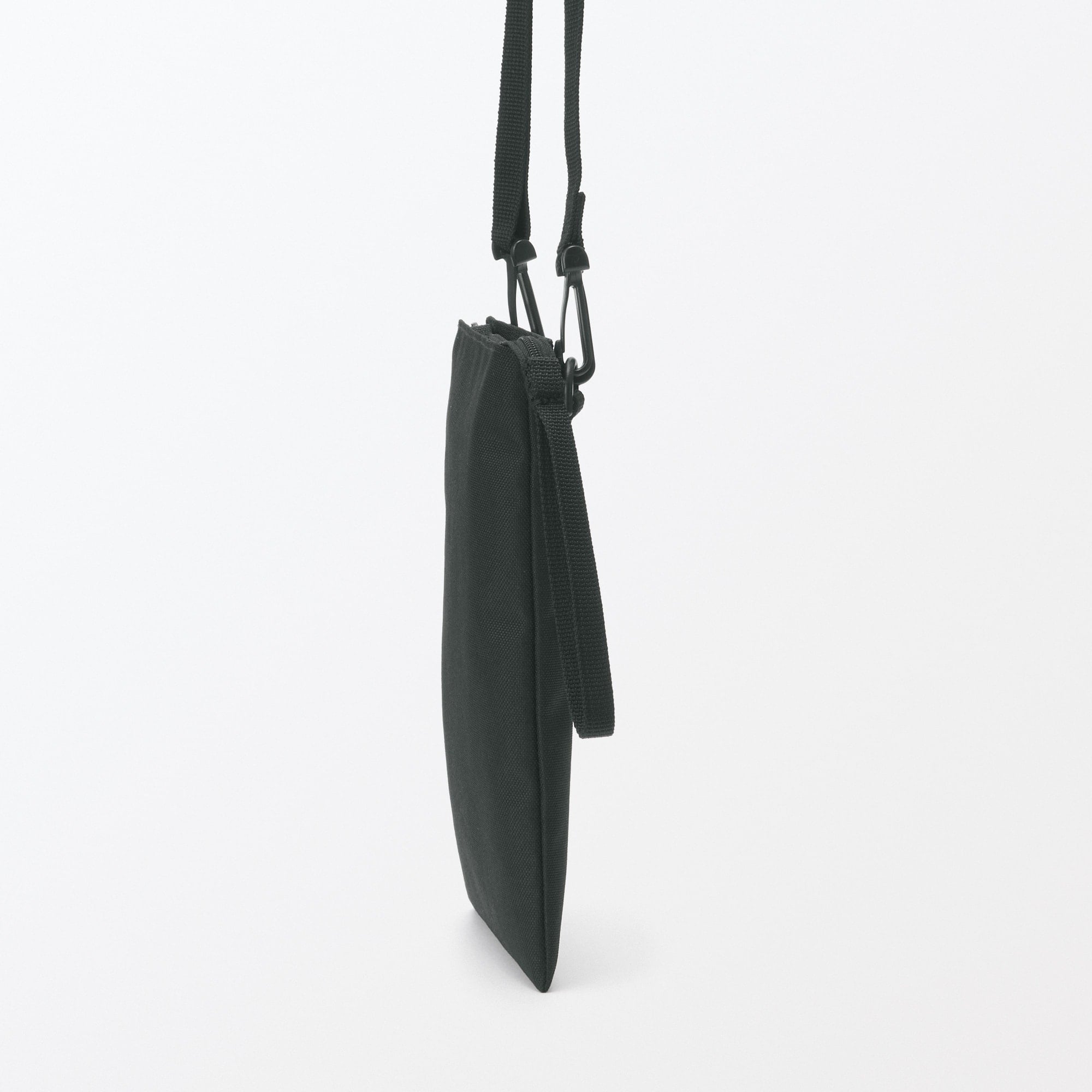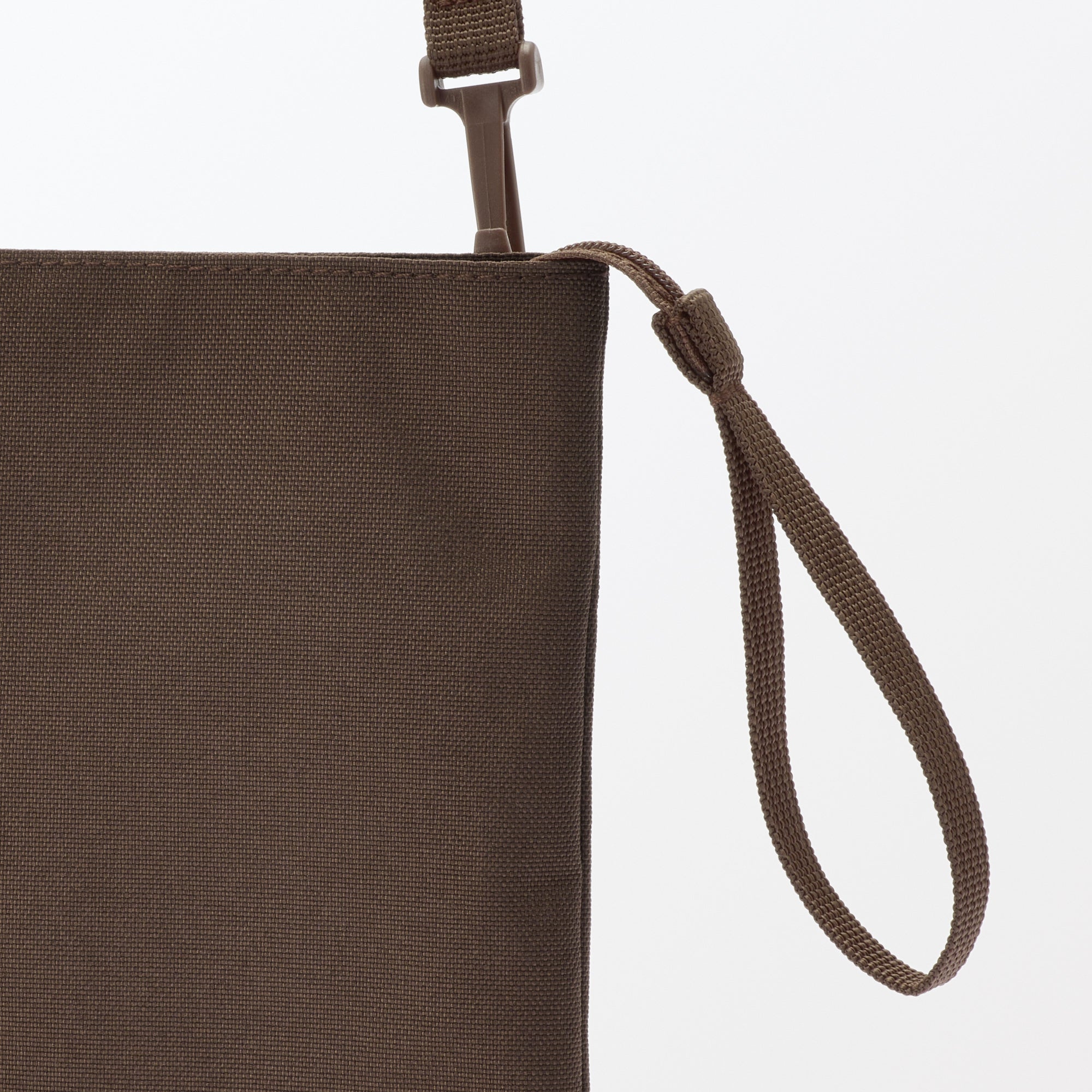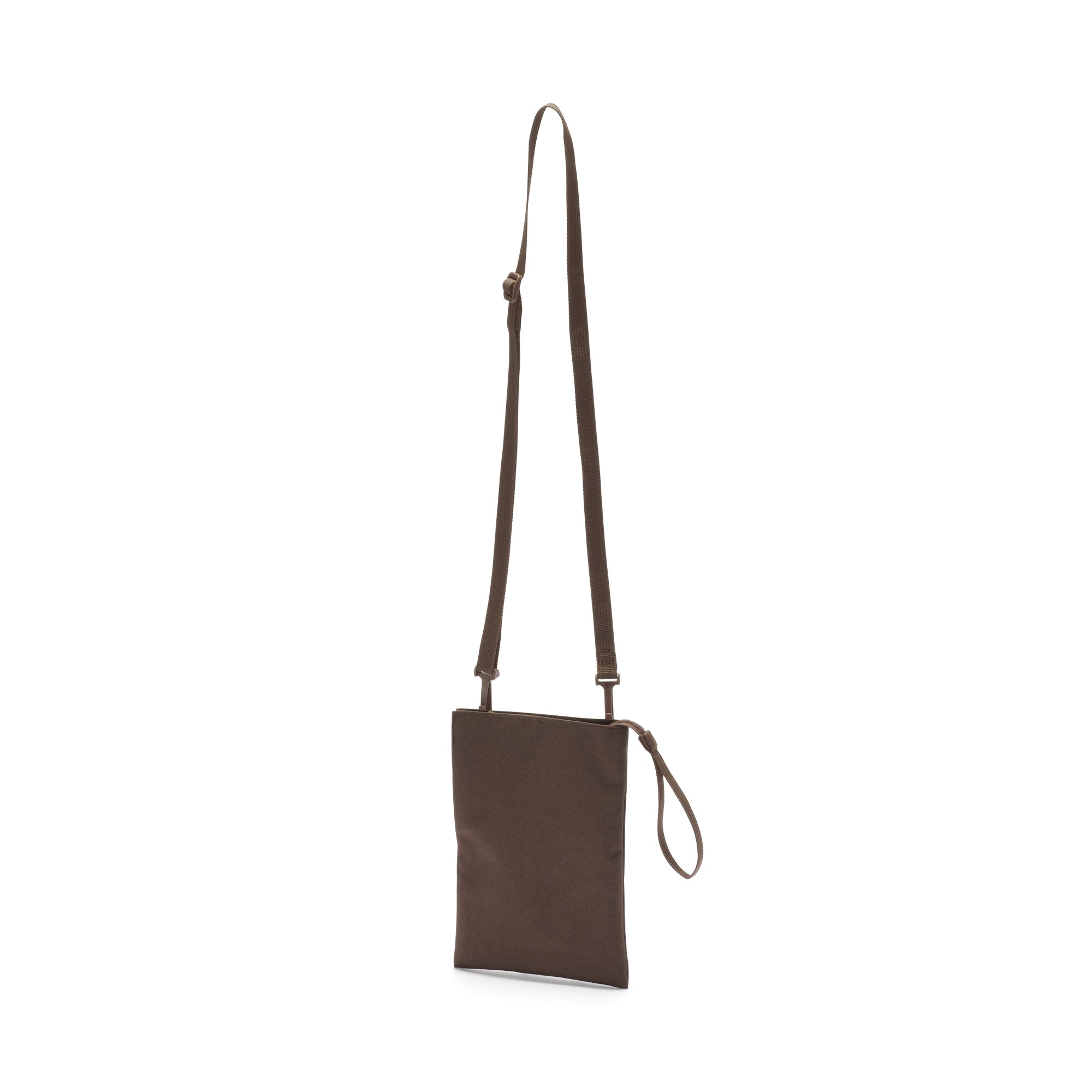 This compact. shoulder-slung pouch is the perfect size to hold all of your daily necessities for quick outings. Made from recycled polyester. it has a water repellent coating to protect your belongings. There is an interior divider to help keep its contents organized and easy to find.