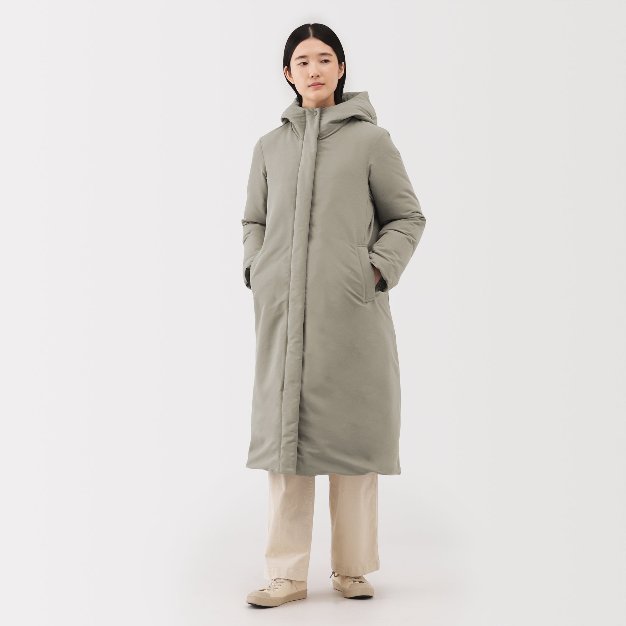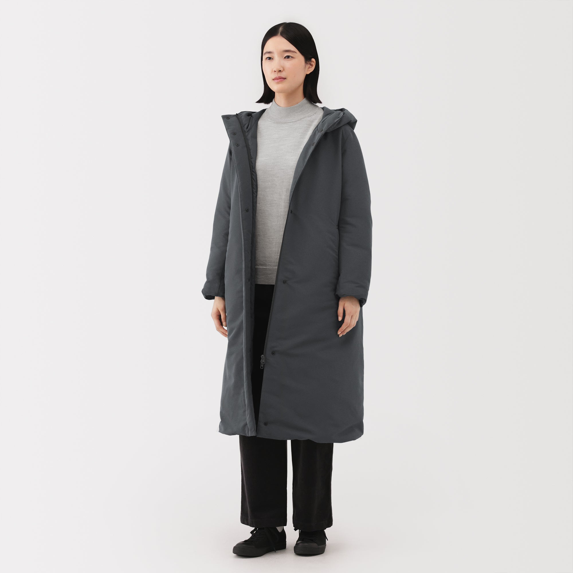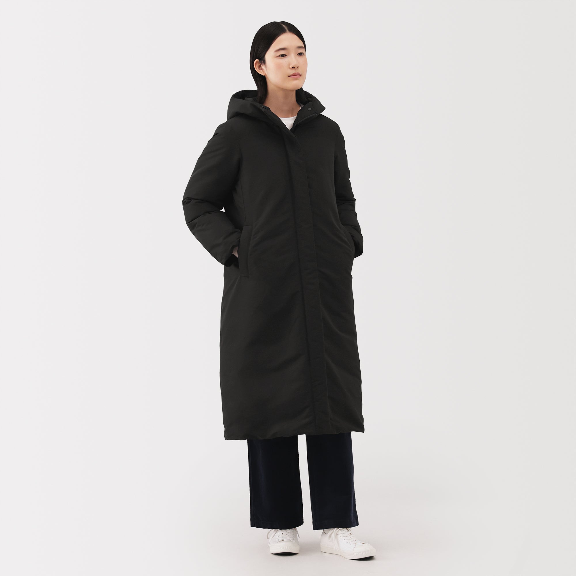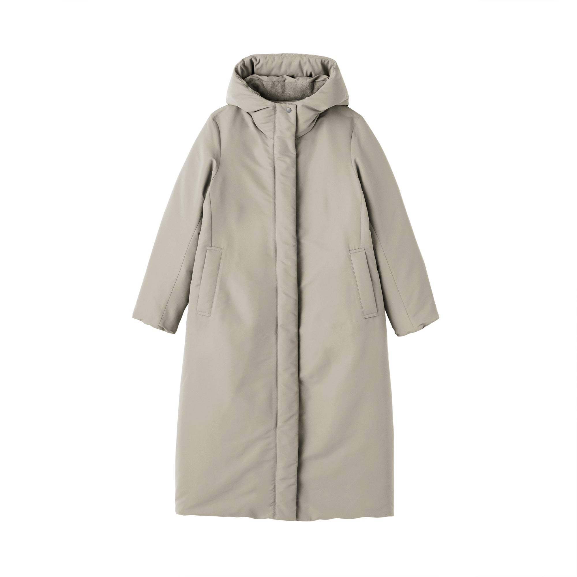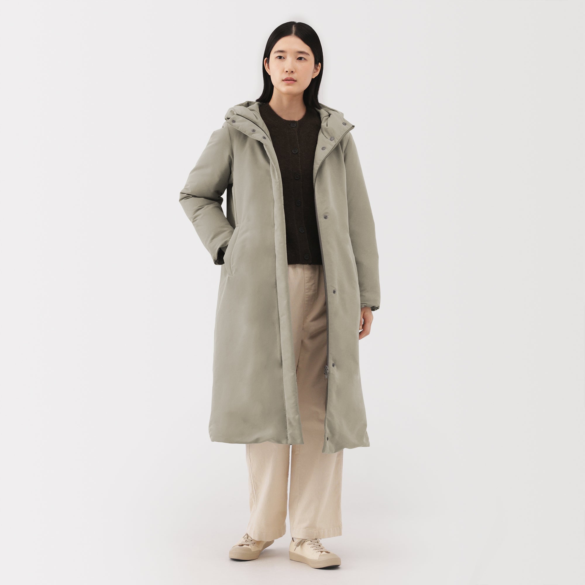 A fluffy women’s water-repellent down coat with fill power 750 down. Its knee-length design provides excellent protection from the cold. keeping you warm and cozy in the winter.